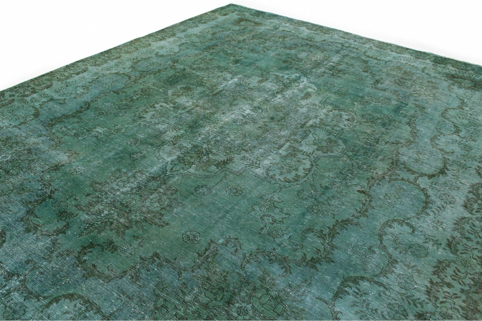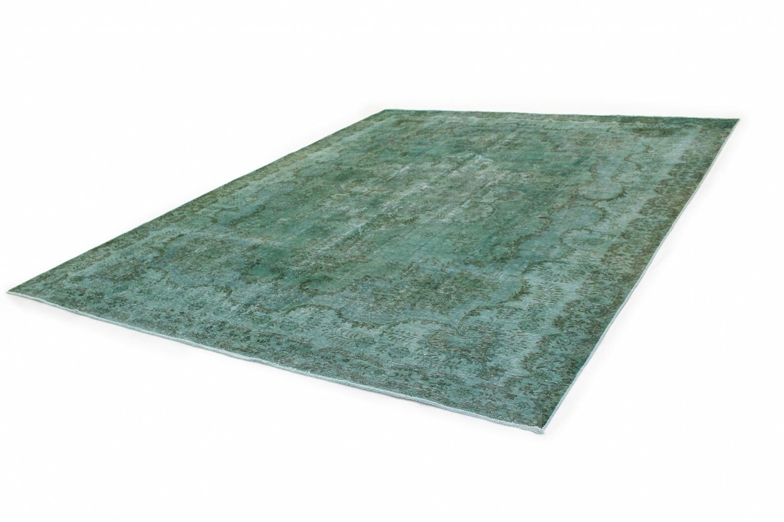Vintage Teppich in Grün Türkis | Knotendichte: Handgeknüpft | Material: Handgesponnene Wolle | Größe: 382×299 cm | Zustand: Neu mit Etikett | Herkunft: Orient | Stil: Modern | Besonderheiten: Für Fußbodenheizung geeignet | Alter: 20 – 50 Jahre