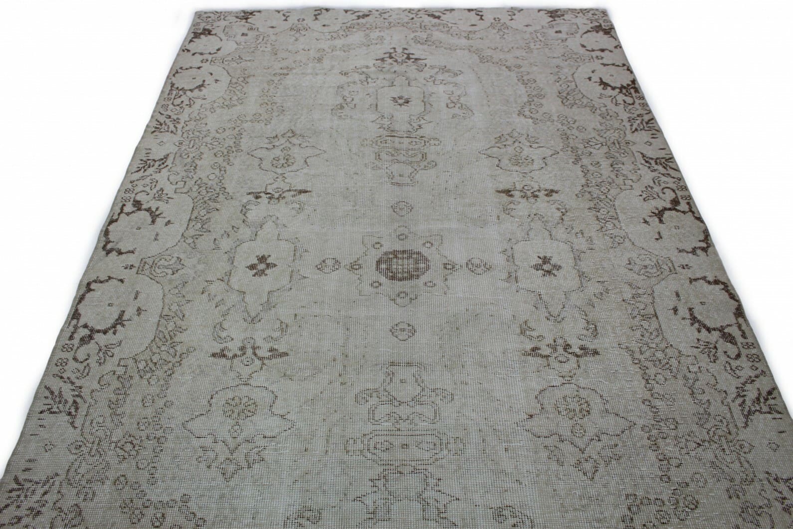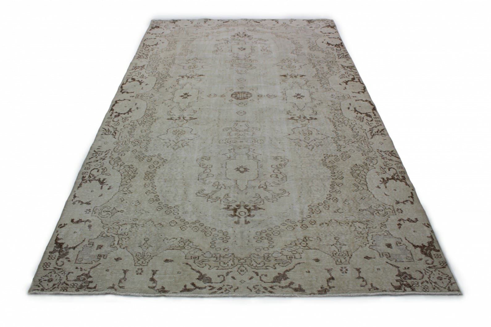 Vintage Teppich Beige | Größe: 306×175 cm | Material: Handgesponnene Wolle | Knotendichte: Handgeknüpft | Stil: Modern | Herkunft: Orient | Zustand: Neu mit Etikett | Besonderheiten: Für Fußbodenheizung geeignet | Einzigartiges überfärbtes Muster mit antikem Charme