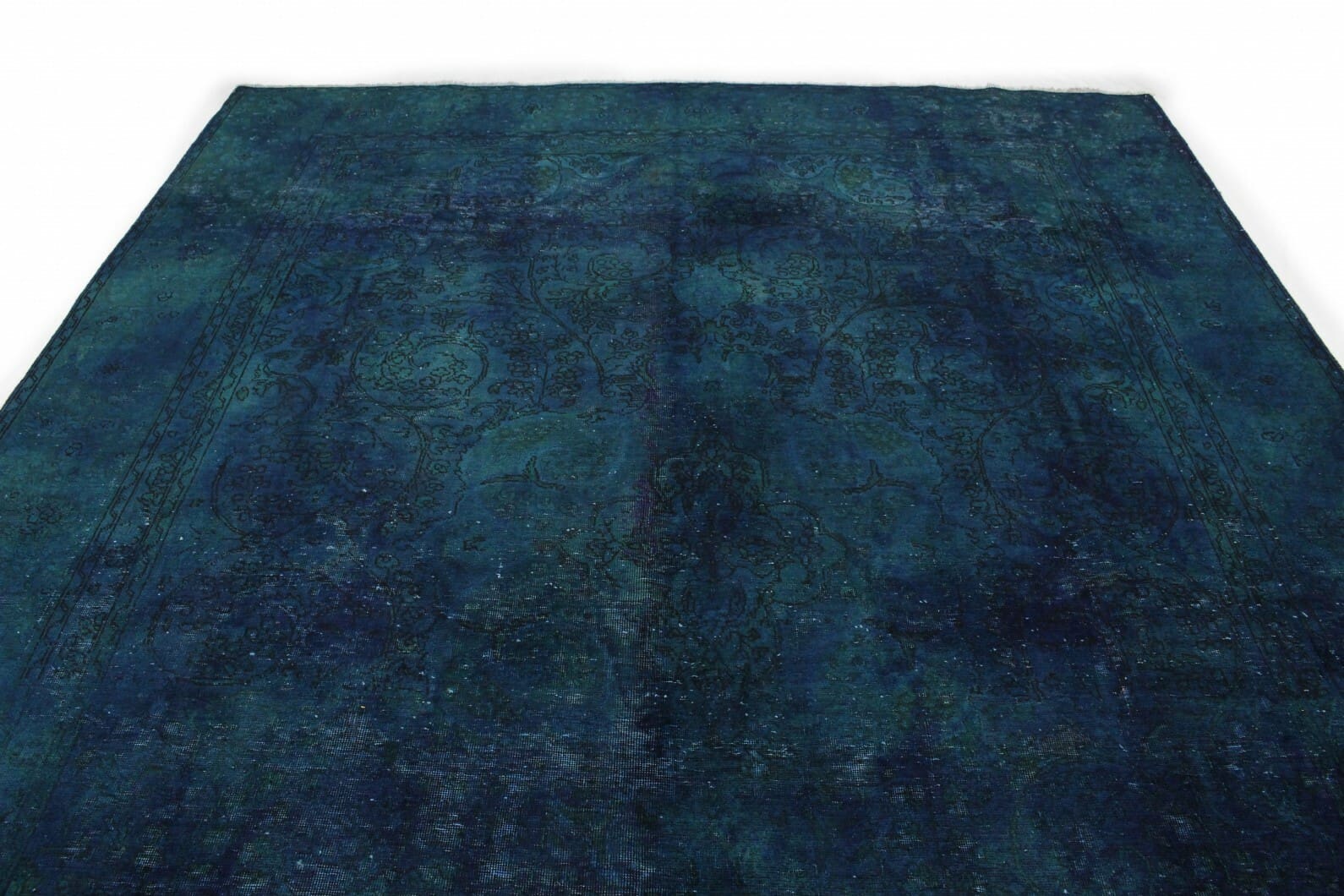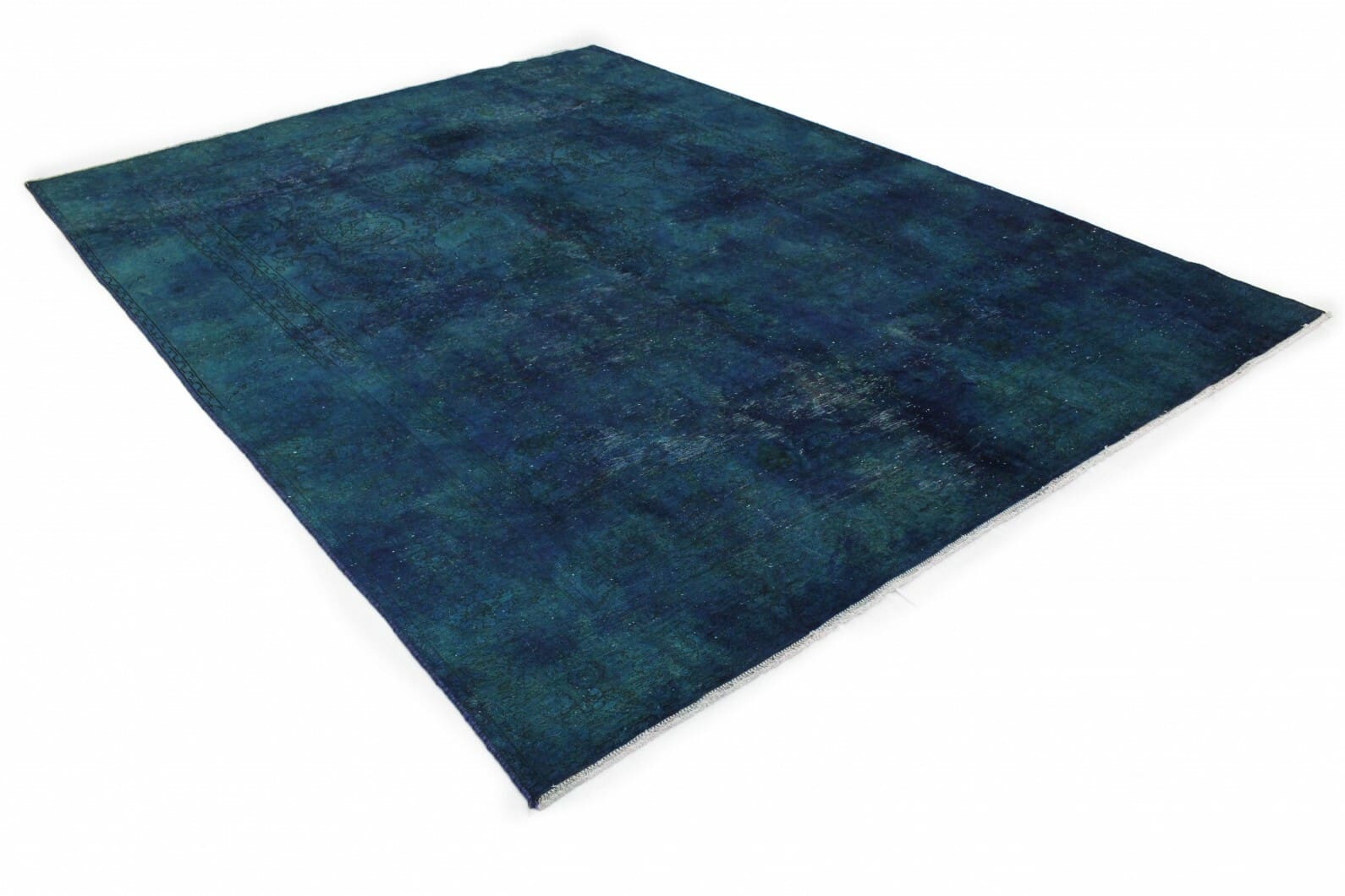 Vintage Teppich Blau Türkis | Größe: 388×279 cm | Material: Handgesponnene Wolle | Knotendichte: Hochwertige Verarbeitung | Zustand: Neu mit Etikett | Herkunft: Orient | Stil: Modern-Vintage | Besonderheiten: Für Fußbodenheizung geeignet | Überfärbte Muster für besondere Optik
