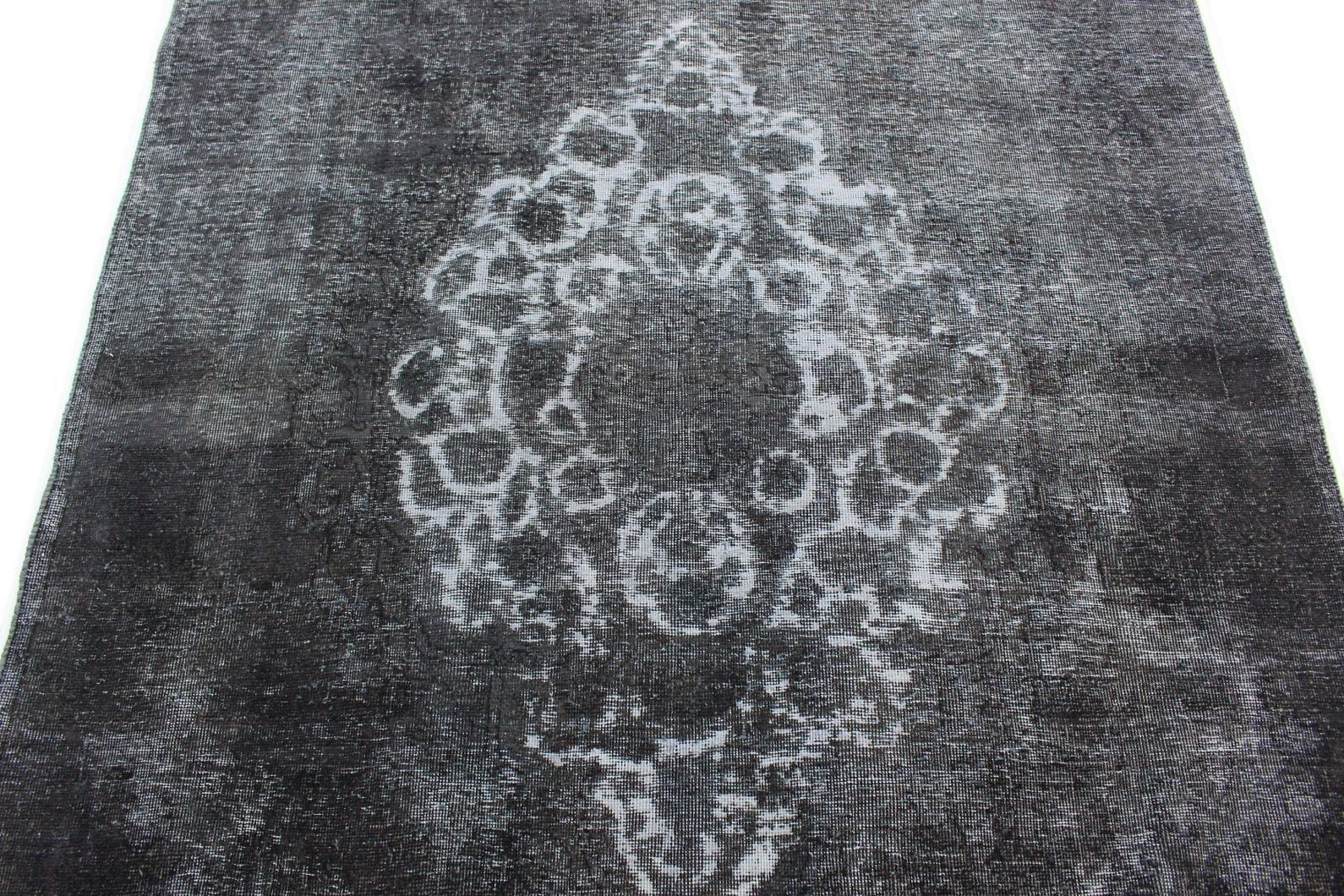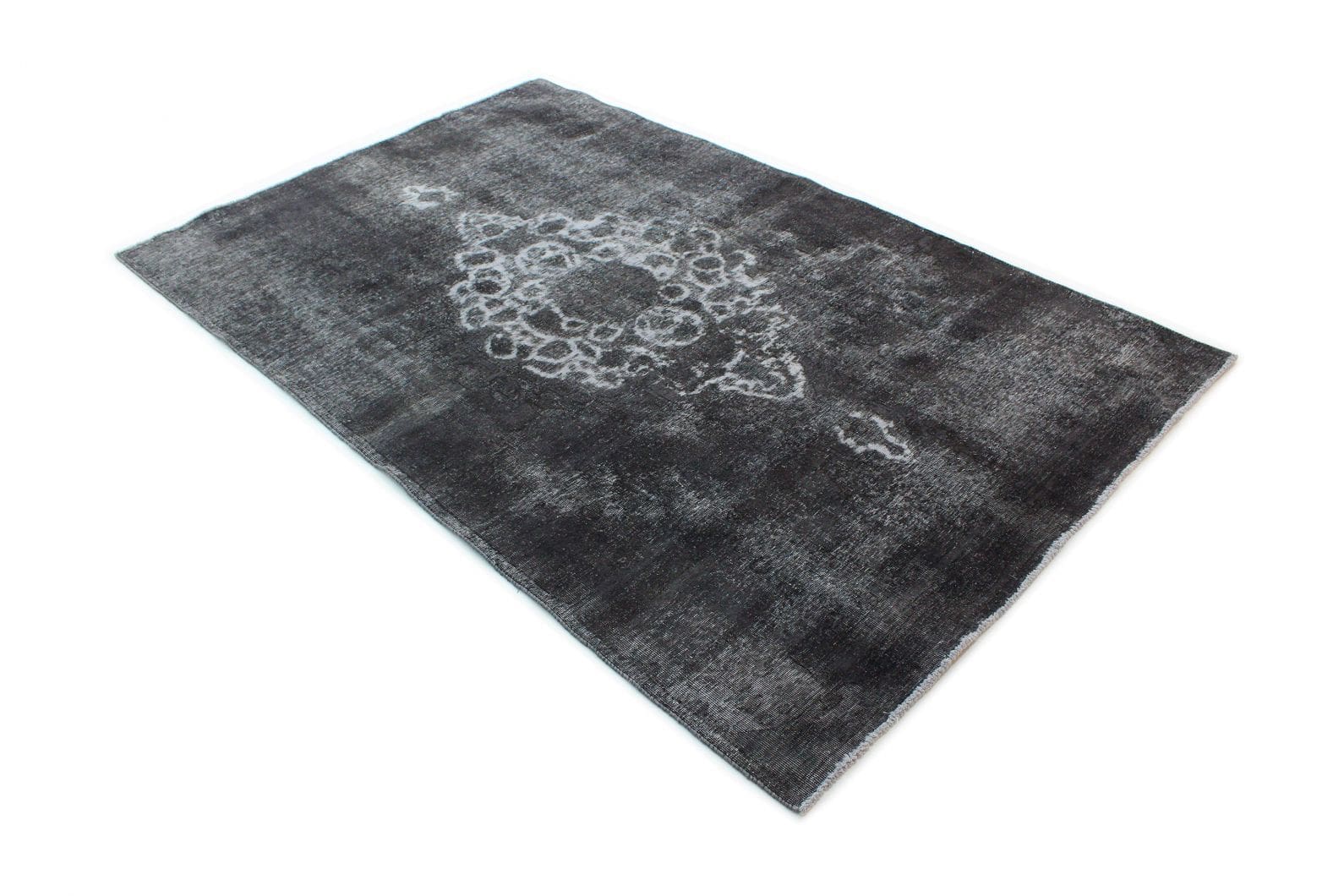 Handgeknüpfter Vintage-Teppich | Größe: 262×164 cm | Material: Wolle und Baumwolle | Knotendichte: Hochwertige Verarbeitung | Farbe: Grau Schwarz | Zustand: Neu mit Etikett | Herkunft: Orient | Stil: Modern | Besonderheiten: Für Fußbodenheizung geeignet | Einzigartige Überfärbung für individuellen Look