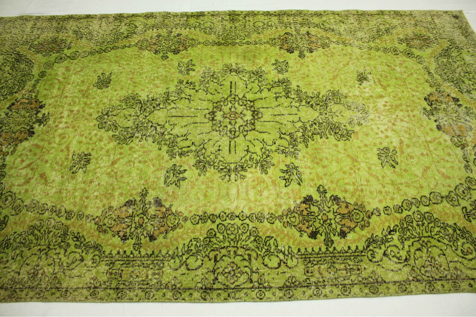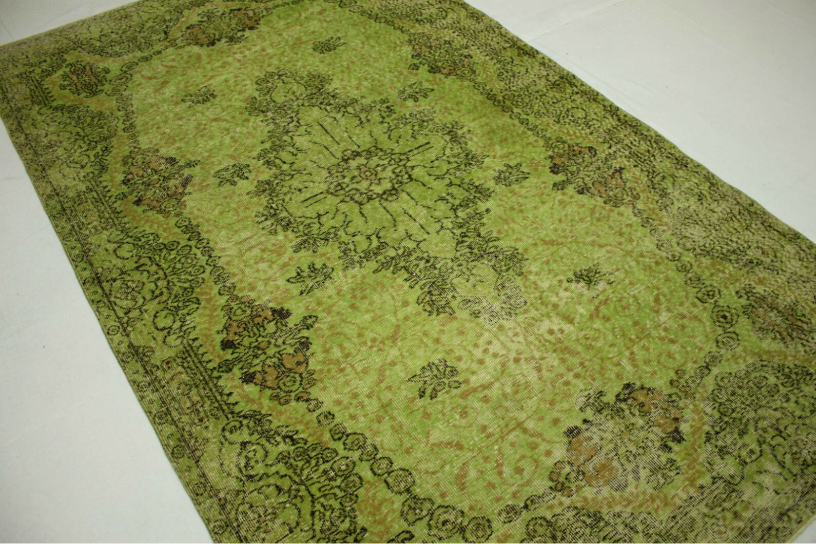 Vintage Orientteppich Grün – Handgeknüpft, Unikat