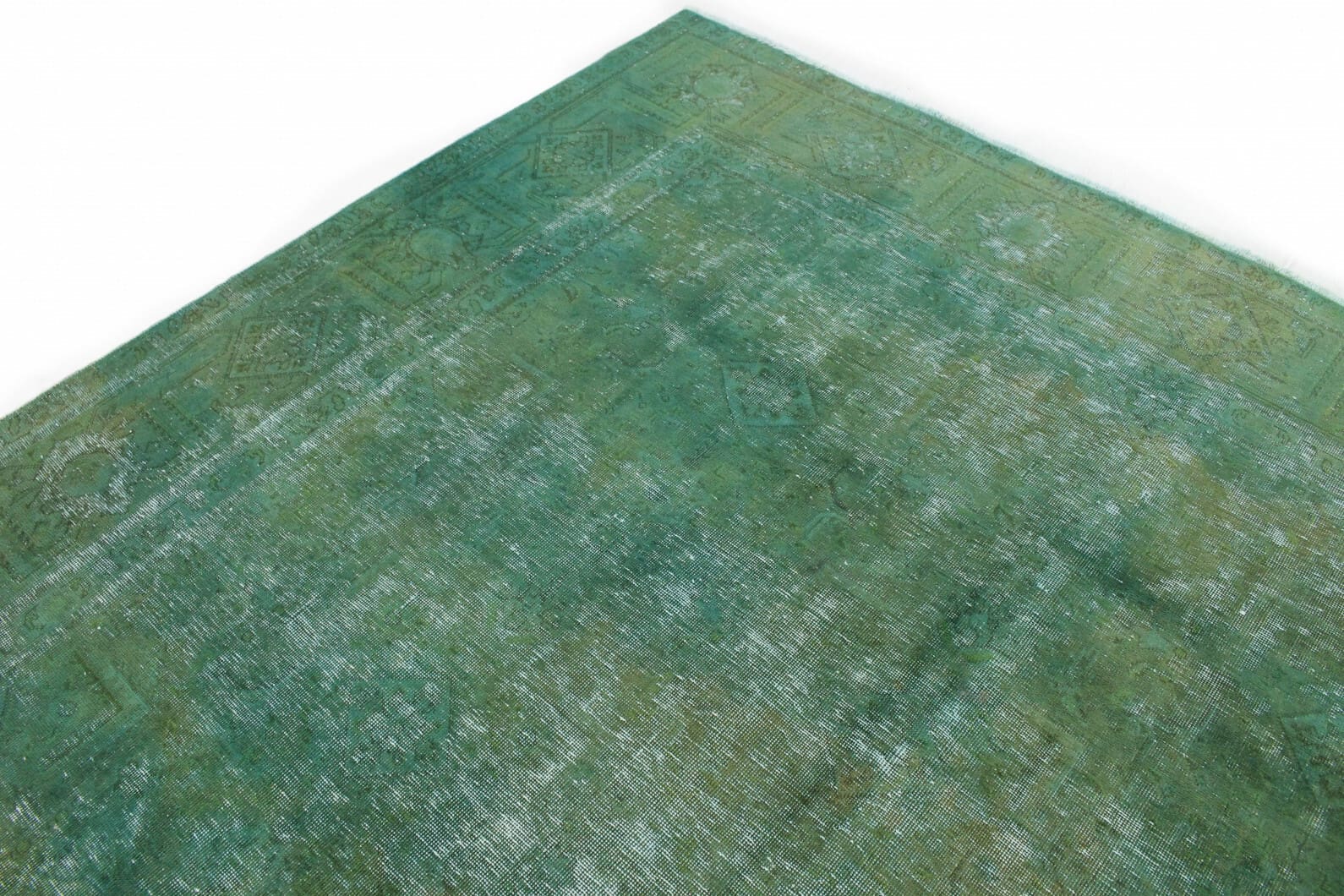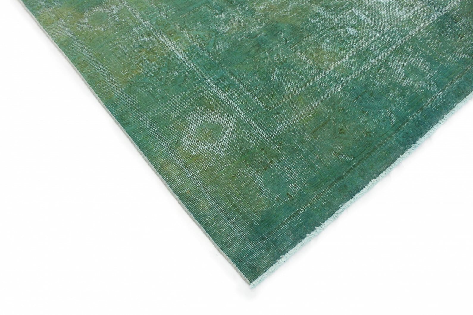 Vintage Teppich Grün | Größe: 383×287 cm | Material: Handgesponnene Wolle | Knotendichte: Handgeknüpft | Zustand: Neu mit Etikett | Stil: Modern und Vintage | Herkunft: Orient | Besonderheiten: Für Fußbodenheizung geeignet | Überfärbte Ornamente für einzigartige Optik | Ideal für Wohnzimmer, Schlafzimmer und Arbeitszimmer