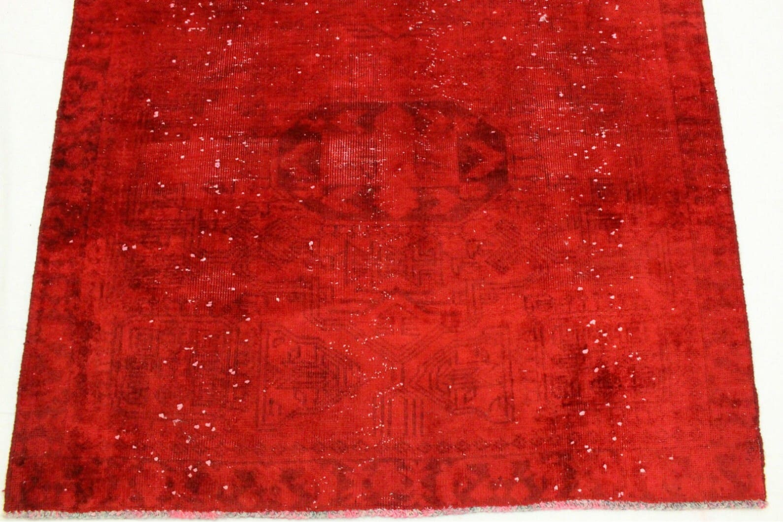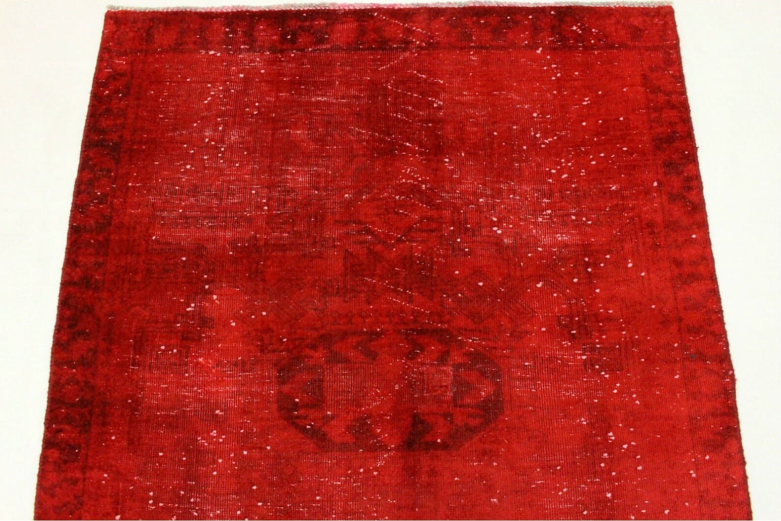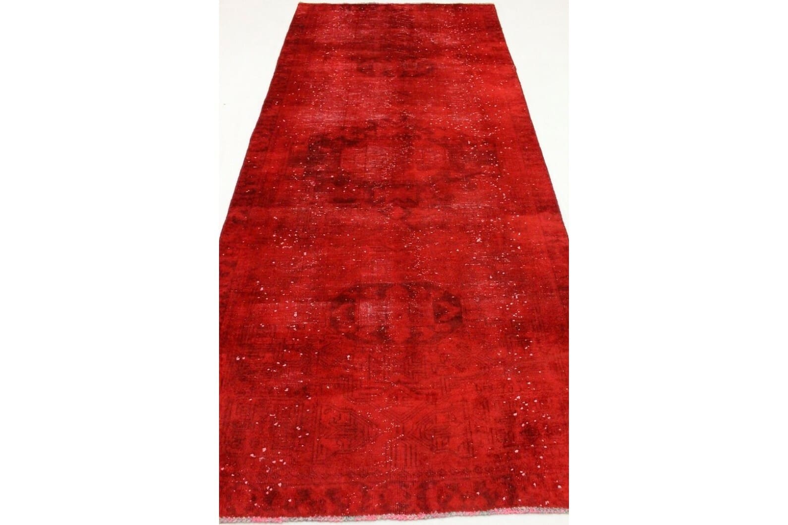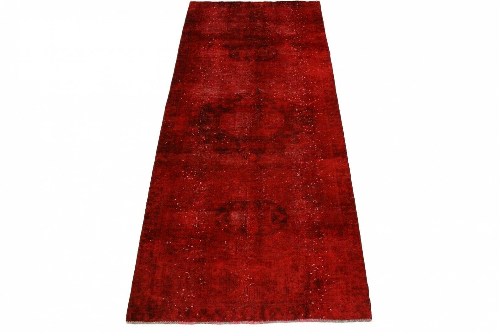 Exklusiver Vintage Teppich Läufer | Größe: 275×112 cm | Knotendichte: Handgeknüpft | Material: Handgesponnene Wolle | Farbe: Rot mit überfärbten Ornamenten | Zustand: Neu mit Etikett | Herkunft: Orient | Stil: Modern mit Vintage-Charakter | Besonderheiten: Für Fußbodenheizung geeignet