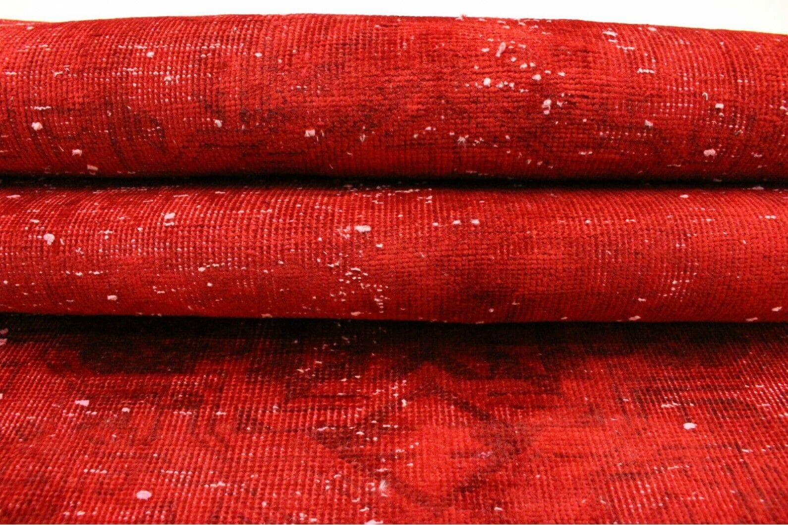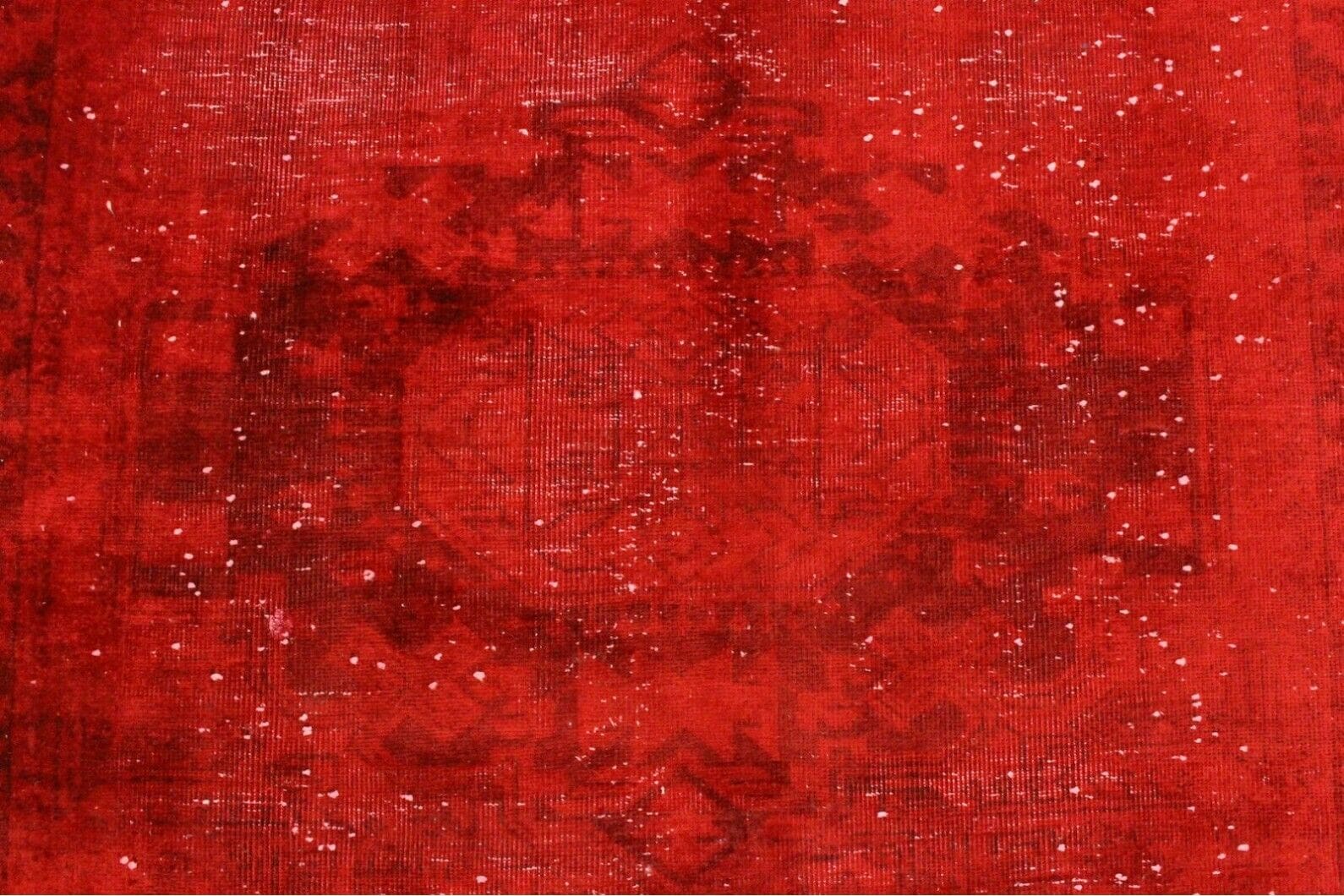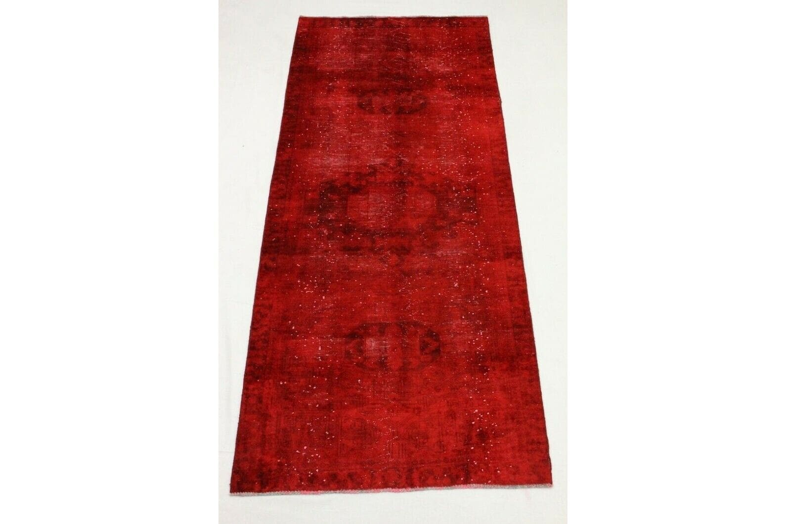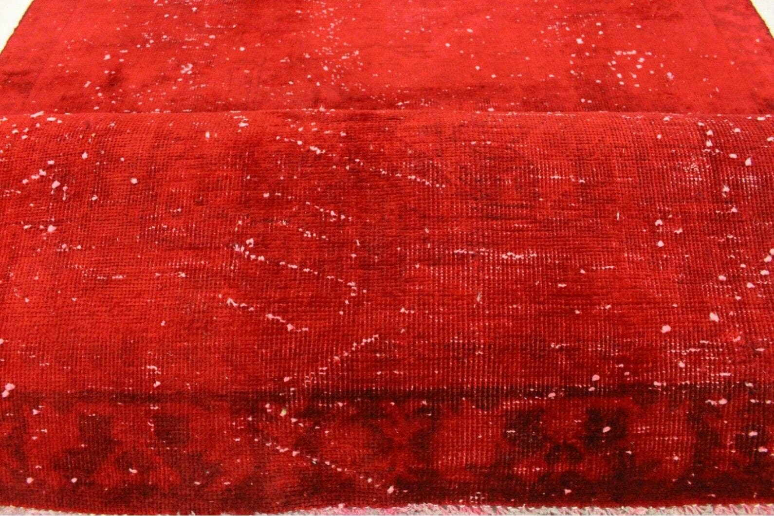 Exklusiver Vintage Teppich Läufer | Größe: 275×112 cm | Knotendichte: Handgeknüpft | Material: Handgesponnene Wolle | Farbe: Rot mit überfärbten Ornamenten | Zustand: Neu mit Etikett | Herkunft: Orient | Stil: Modern mit Vintage-Charakter | Besonderheiten: Für Fußbodenheizung geeignet