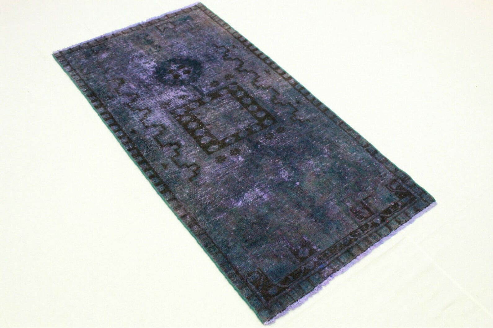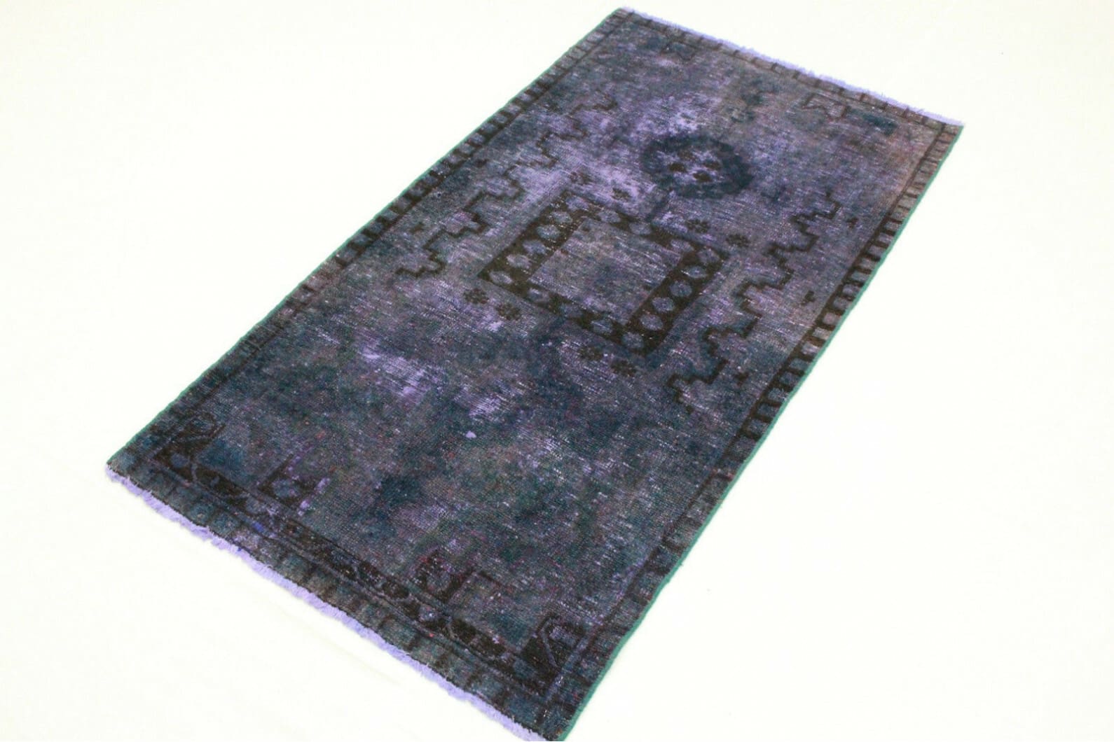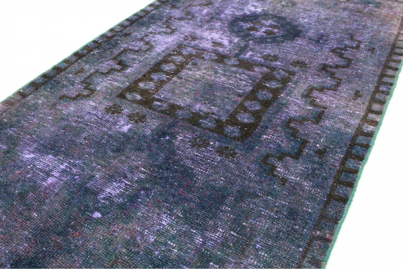Handgeknüpfter Vintage-Teppich | Größe: 197×99 cm | Material: Handgesponnene Wolle | Herkunft: Orient | Zustand: Neu mit Etikett | Stil: Modern | Besonderheiten: Für Fußbodenheizung geeignet | Einzigartige Überfärbung mit schimmernden Ornamenten