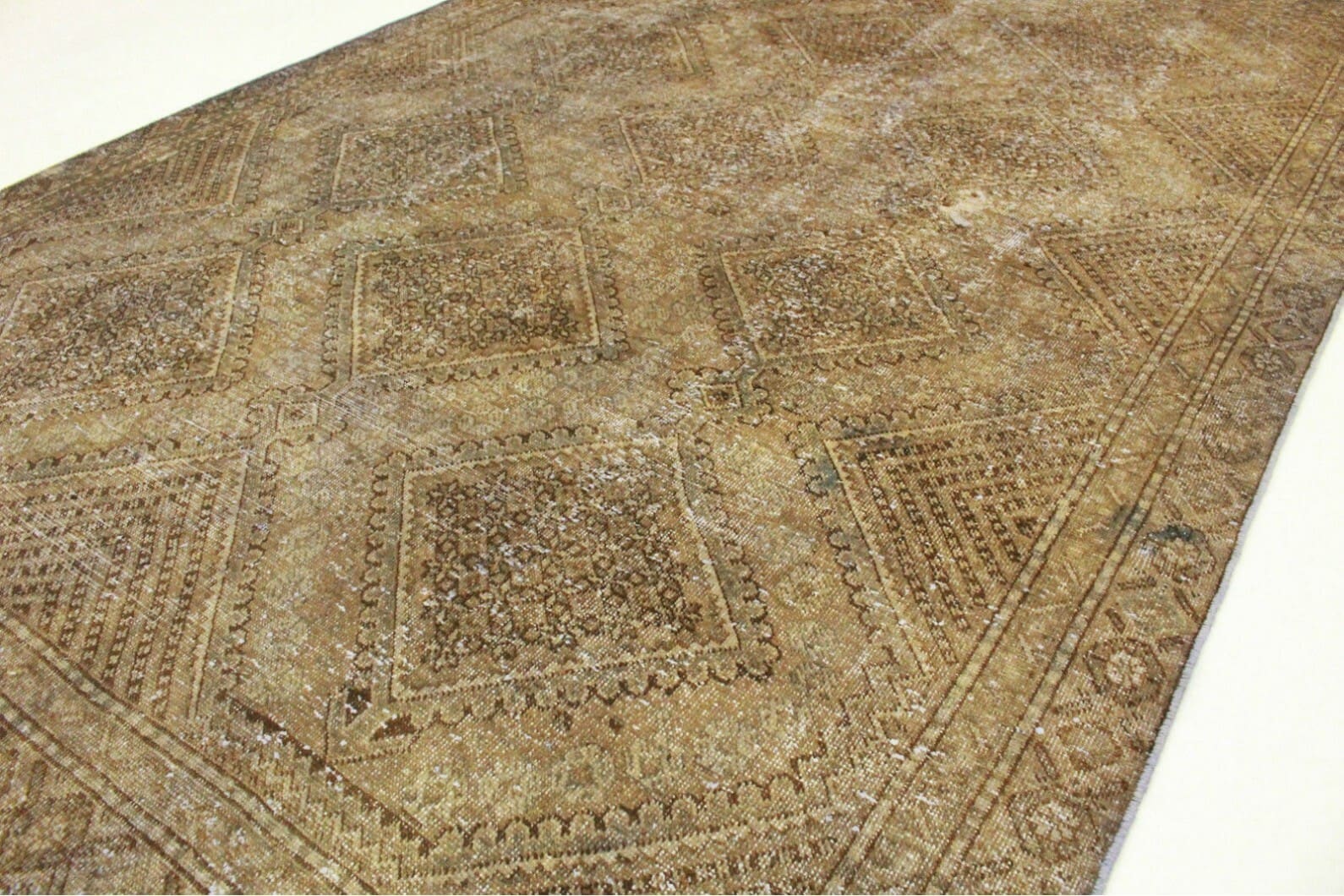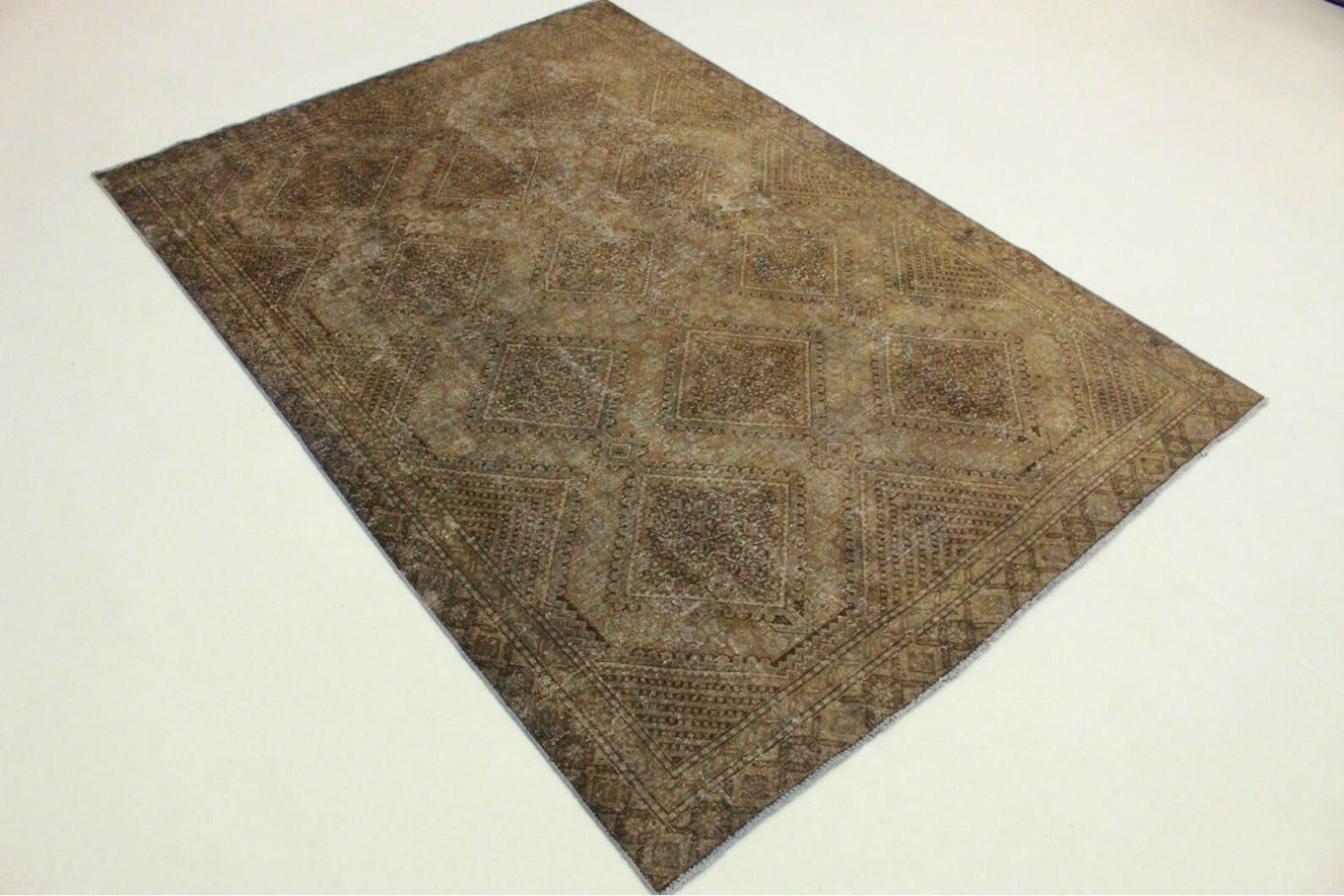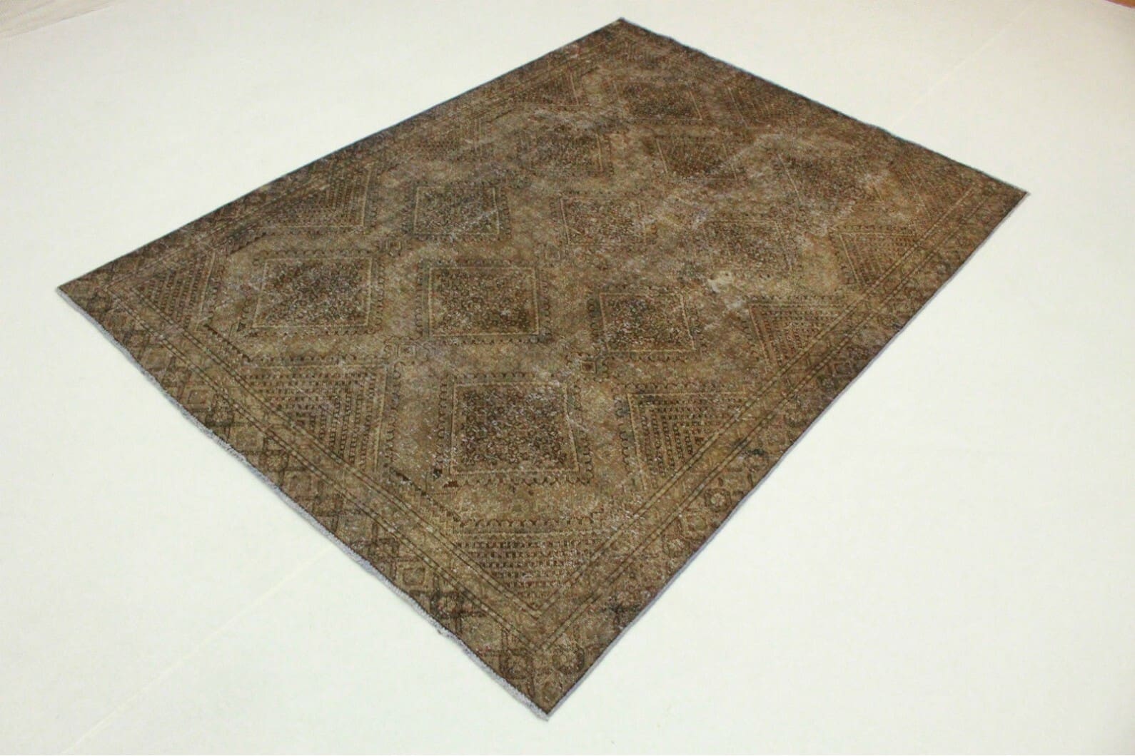 Vintage Teppich Schlamm | Größe: 273×189 cm | Material: Handgesponnene Wolle | Stil: Modern | Herkunft: Orient | Zustand: Neu mit Etikett | Besonderheiten: Für Fußbodenheizung geeignet | Knotendichte: Handgeknüpft | Einzigartige Überfärbung mit antikem Charakter | Ideal für Wohnzimmer, Schlafzimmer, Esszimmer und Arbeitszimmer