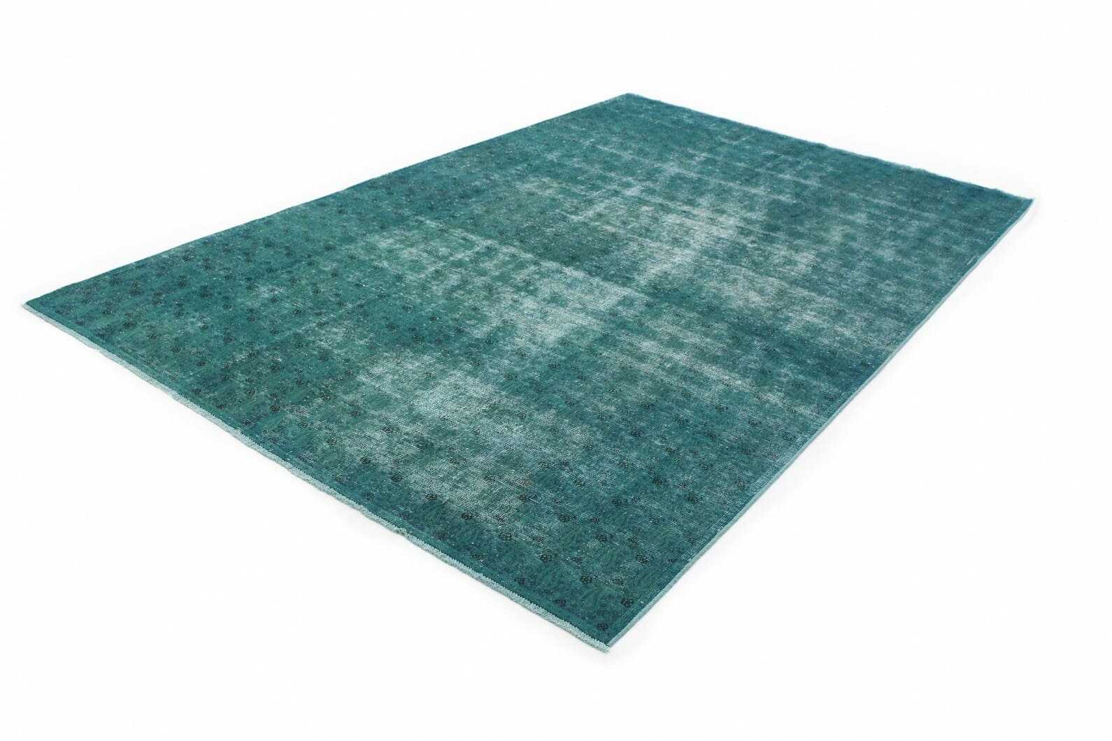 Vintage Teppich Türkis | Größe: 312×199 cm | Material: Handgesponnene Wolle | Zustand: Neu mit Etikett | Herkunft: Orient | Stil: Modern | Knotendichte: Handgeknüpft | Für Fußbodenheizung geeignet | Alter: 20 – 50 Jahre | Besonderheiten: Einzigartiger, moderner Design-Teppich
