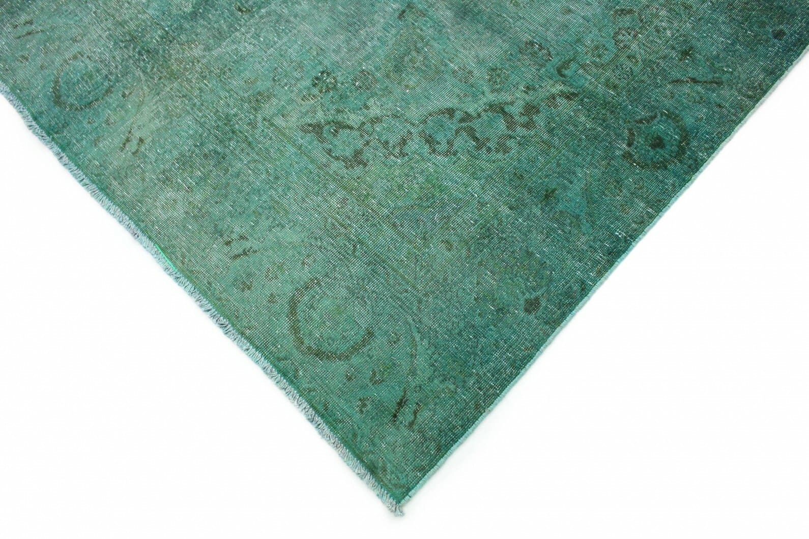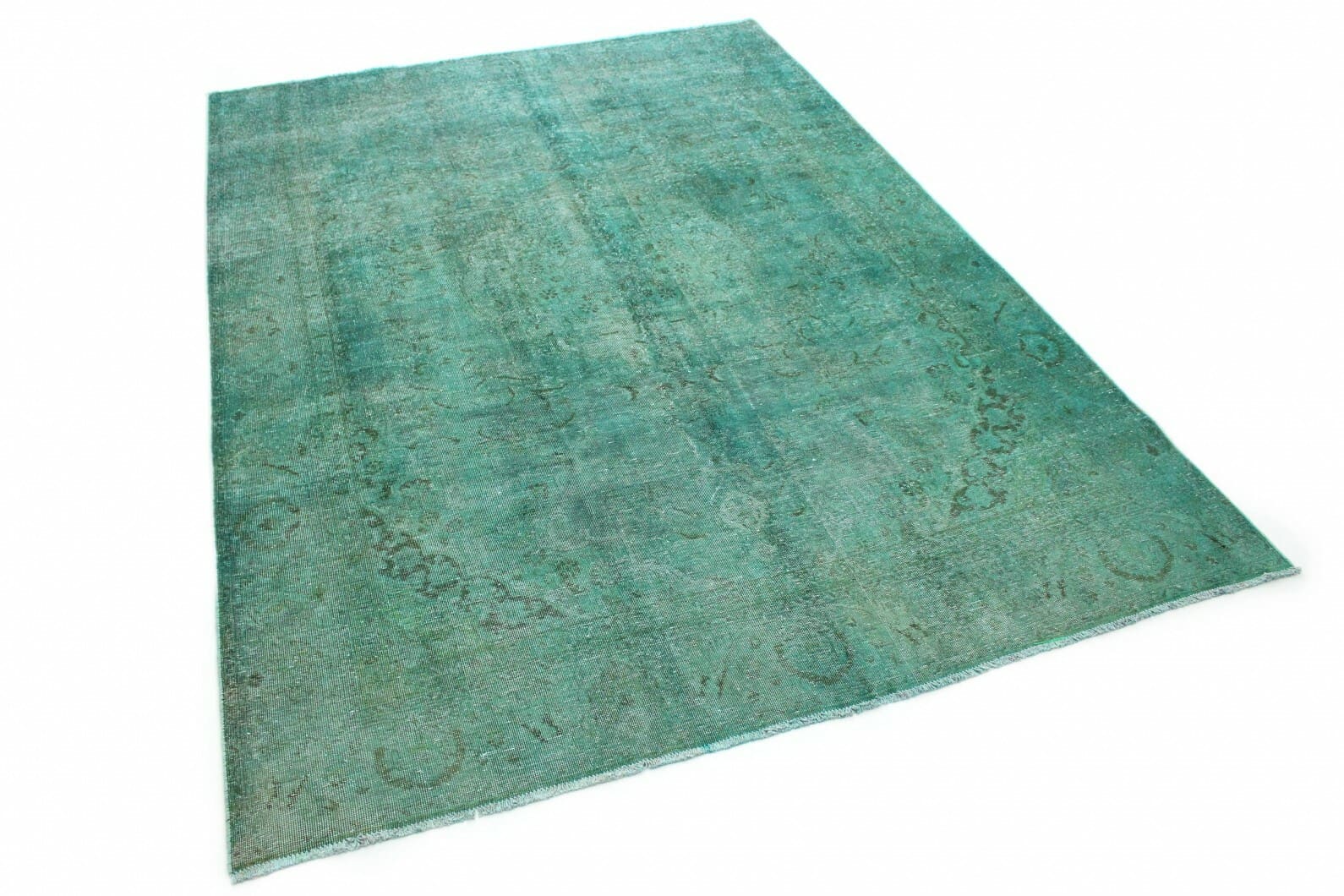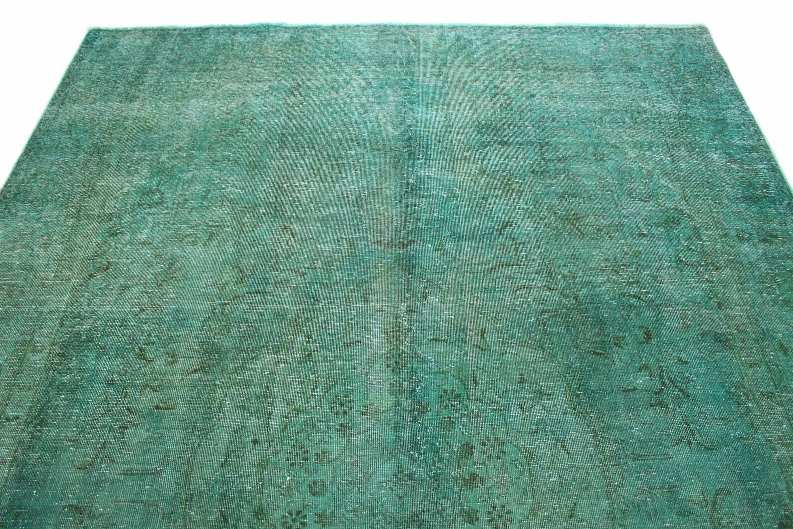 Vintage Teppich in Türkis | Knotendichte: Handgeknüpft | Material: Handgesponnene Wolle und Baumwolle | Größe: 332×234 cm | Zustand: Neu mit Etikett | Herkunft: Orient | Stil: Modern und Vintage | Für Fußbodenheizung geeignet | Überfärbte Ornamente verleihen einzigartige Optik