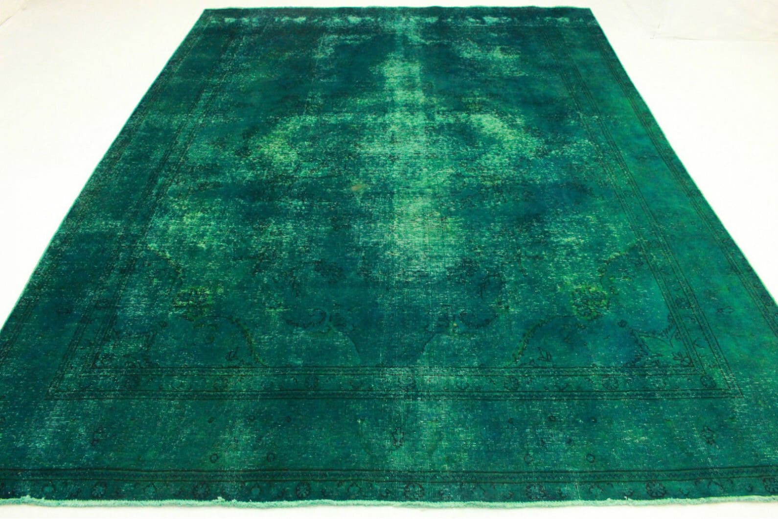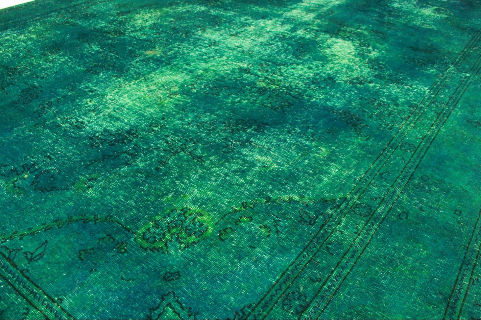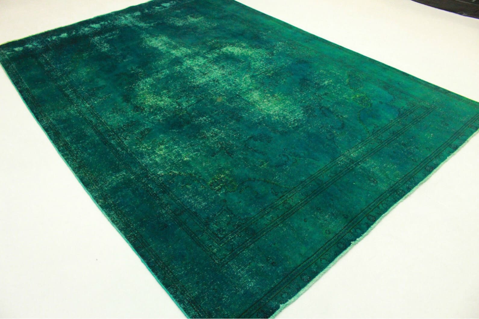 Handgearbeiteter Vintage Teppich | Größe: 402×279 cm | Knotendichte: Handgeknüpft | Material: Handgesponnene Wolle | Farbe: Türkis | Zustand: Neu mit Etikett | Herkunft: Orient | Stil: Modern und Vintage | Besonderheiten: Für Fußbodenheizung geeignet