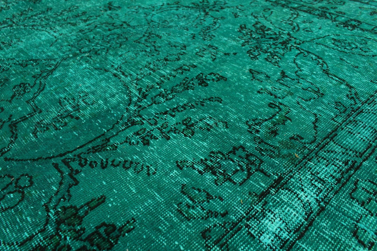 Handgearbeiteter Vintage-Teppich | Größe: 288 x 205 cm | Material: Handgesponnene Wolle und Baumwolle | Muster: Überfärbte Designs mit einzigartiger Optik | Zustand: Neu mit Etikett | Herkunft: Orient | Für Fußbodenheizung geeignet | Alter: 20 – 50 Jahre | Stil: Modern und Vintage