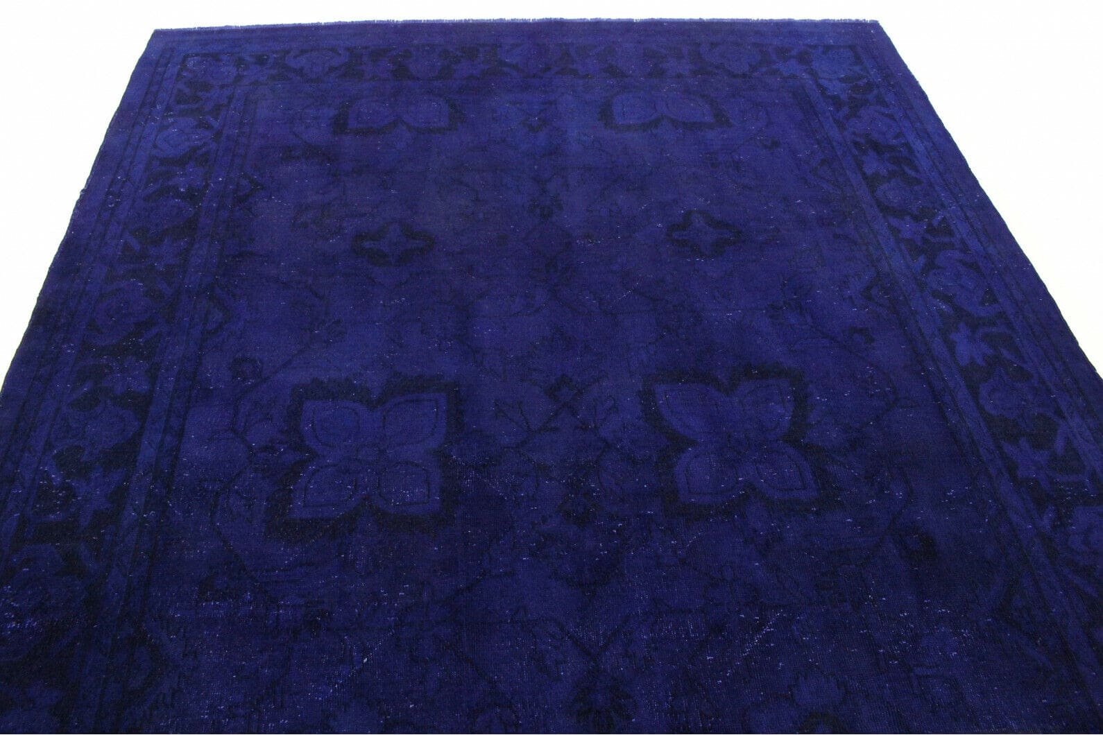 Handgearbeiteter Vintage Teppich | Größe: 210×310 cm (exakt: 308×213 cm) | Knotendichte: Handgeknüpft | Material: Handgesponnene Wolle | Zustand: Neu mit Etikett | Herkunft: Orient | Besonderheiten: Für Fußbodenheizung geeignet | Stil: Modern | Farben: Ultramarinblau, Blau, Lila