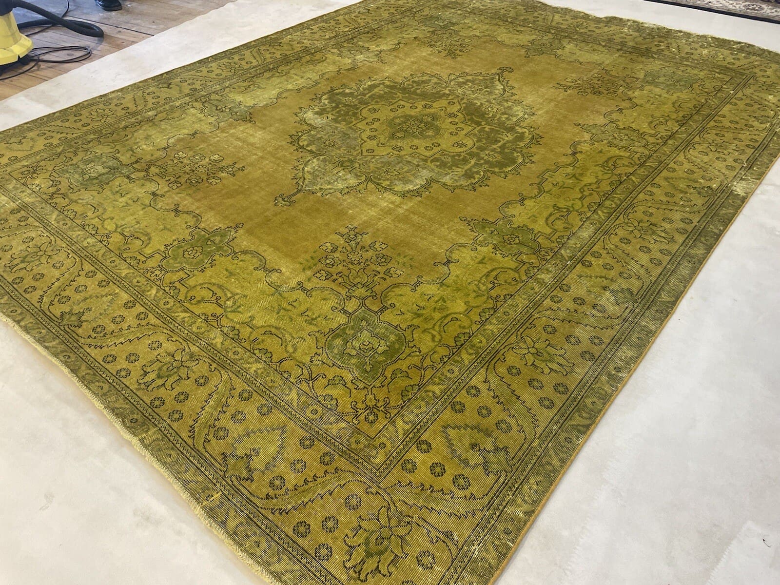 Vintage Perserteppich 389x295cm gelb-gold-senf handgeknüpft
