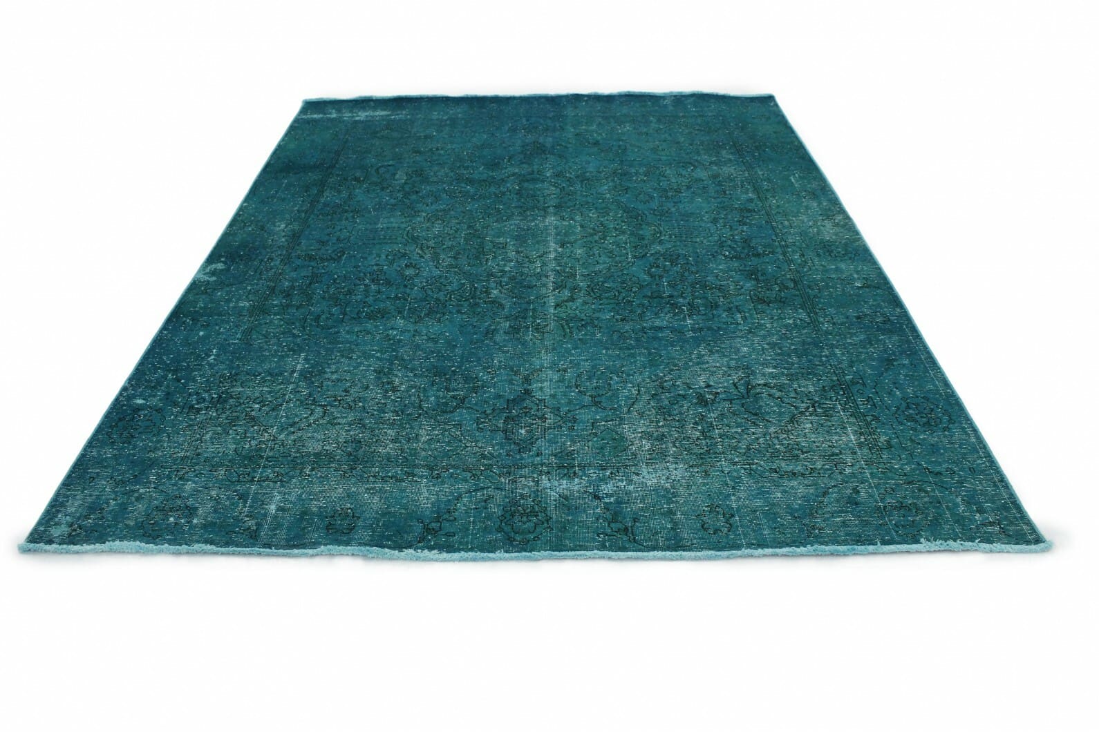 Der Türkisfarbton des Teppichs verleiht jedem Raum eine frische und lebendige Note. Die Farben und Muster sind typischerweise inspiriert von der Natur, Flora und Fauna und spiegeln die Schönheit der orientalischen Ästhetik wider. Diese Designs sind oft mit symbolischen Bedeutungen behaftet, etwa dem Streben nach Harmonie und Frieden. Der Vintage Teppich kombiniert traditionelle Muster mit modernen Farbtönen, was ihn zu einem vielseitigen und anpassungsfähigen Accessoire für moderne sowie klassische Innenräume macht.