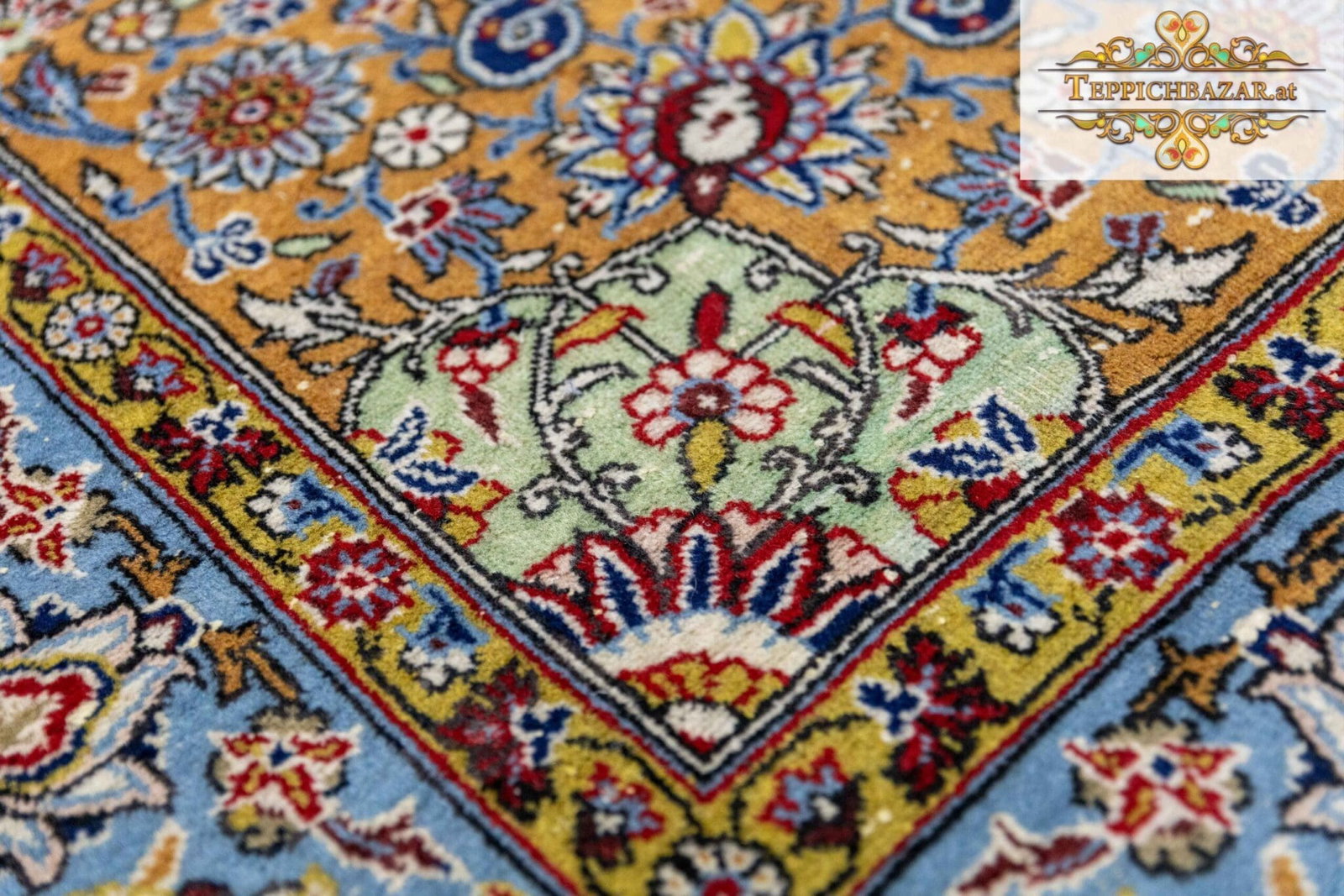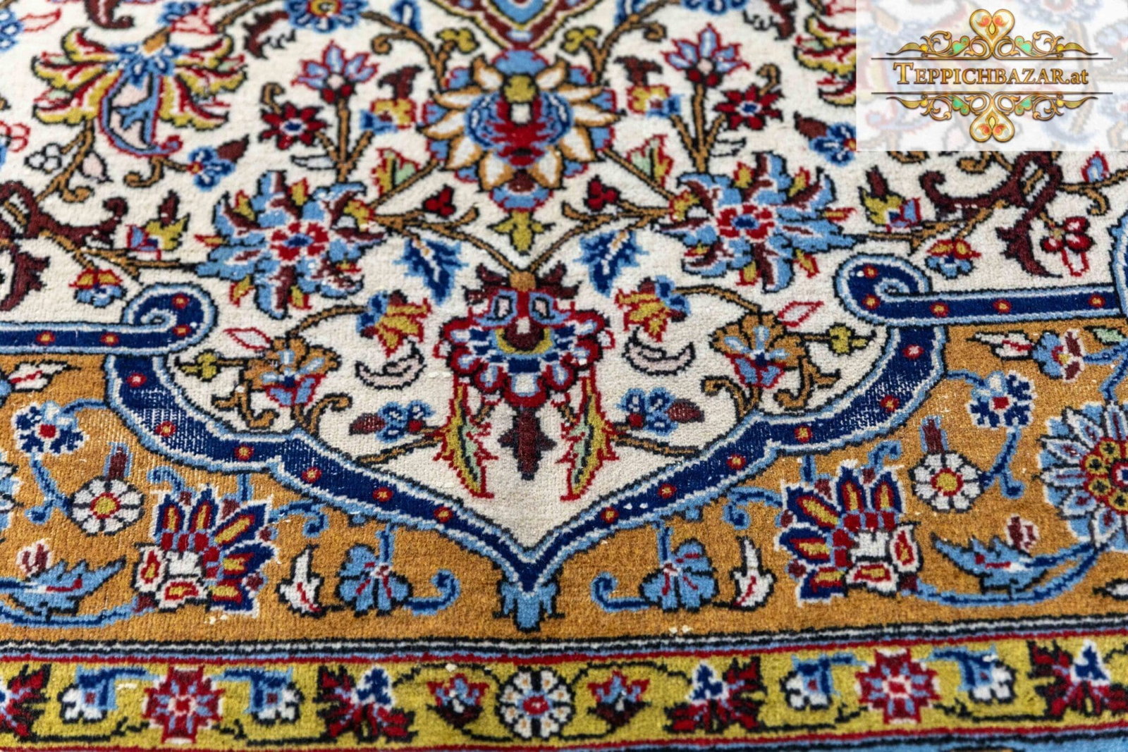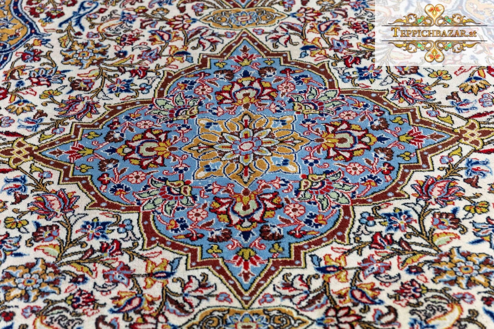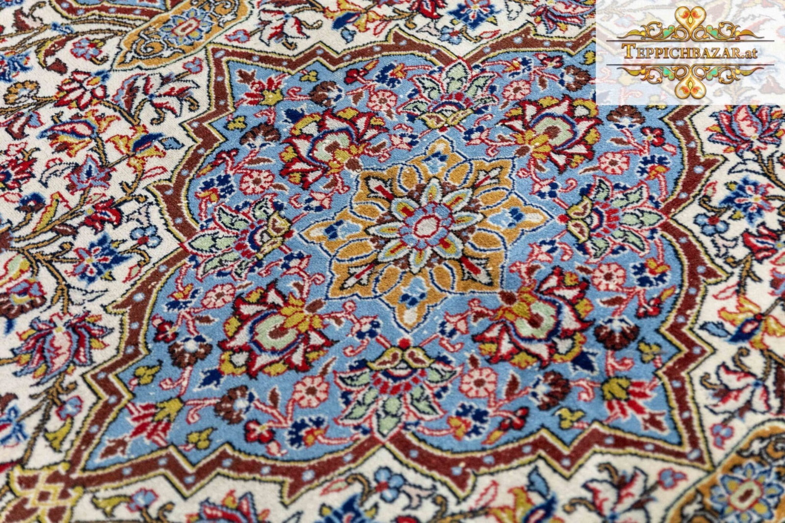 Kashan ist nicht nur eine Stadt, sondern auch ein kulturelles Zentrum der persischen Teppichknüpfkunst. Die Tradition des Teppichknüpfens in Kashan geht bis ins 16. Jahrhundert zurück. Das Besondere an Kashan Teppichen ist die Vielfalt an Mustern und Farben, die von floralen bis zu geometrischen Designs reichen. Die Region ist bekannt für die Verwendung leuchtender Farben, die aus natürlichen Farbstoffen gewonnen werden. Dieses Erbe fließt in die Gestaltung jedes Teppichs ein, was sie zu einem repräsentativen Beispiel für die hohe Kunstfertigkeit persischer Teppichknüpfer macht.