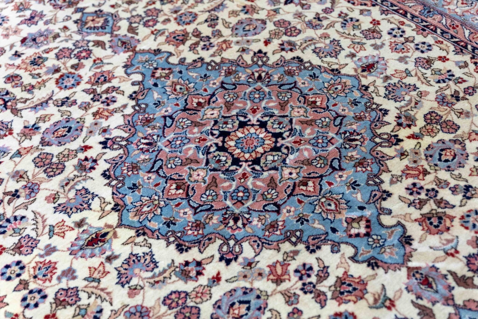 Ein handgeknüpfter Teppich hat nicht nur einen hohen ästhetischen Wert, sondern auch einen kulturellen. Mit jedem Schritt auf diesem Teppich spüren Sie die Geschichte und die Tradition, die in jedem Knoten steckt. Darüber hinaus eignet sich der Sarough Farahan aufgrund seiner Materialwahl und der sorgfältigen Handarbeit ideal für den Einsatz in stark frequentierten Bereichen, wo Qualität und Widerstandsfähigkeit gefragt sind.