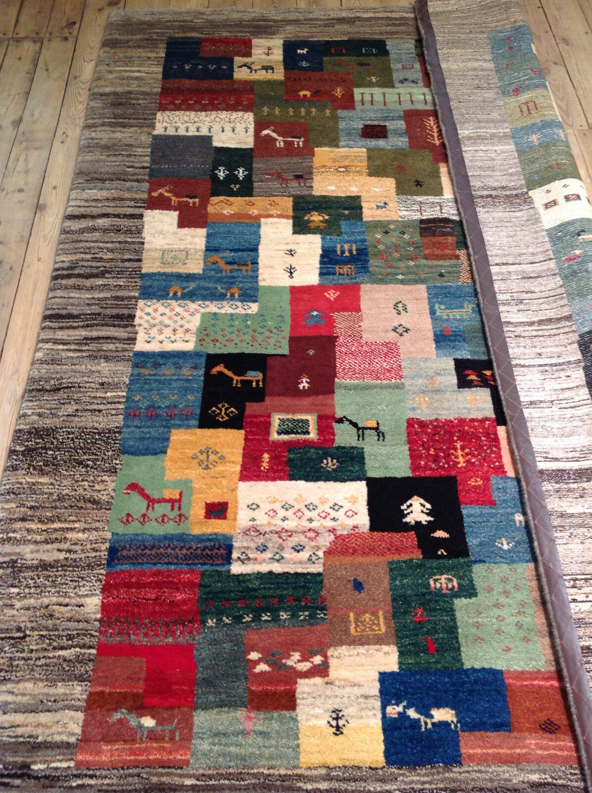 Gabbeh-Teppiche stammen ursprünglich aus dem Iran, genauer gesagt aus der Region Fars. Diese Region, die bekannt ist für ihre reiche Geschichte und kulturelle Vielfalt, hat eine Vielzahl von Gruppen hervorgebracht, die Teppiche herstellen. Gabbeh-Teppiche sind oft weniger formal und werden von nomadischen Stämmen geknüpft, die ihre Designs und Muster aus den Geschichten und der Symbolik ihres Lebens schöpfen. Die Tradition des Teppichknüpfens in dieser Region spiegelt die Lebensweise der Menschen wider und ist tief in ihrer Kultur verwurzelt.