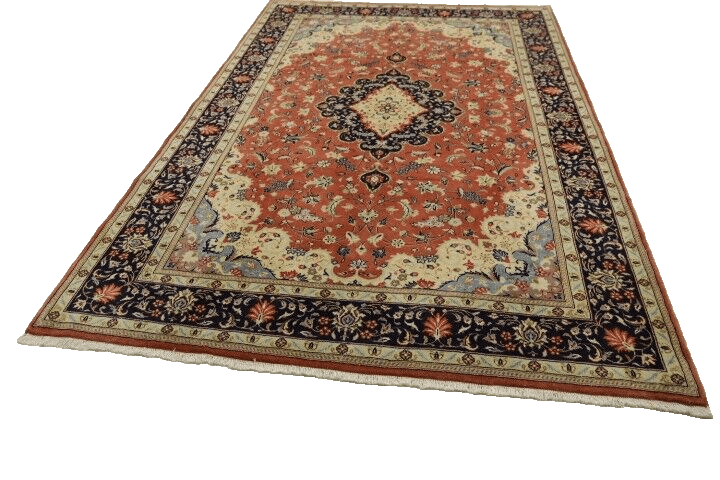Handgeknüpfter Orientteppich | Herkunft: Persien, Provinz Täbriz | Knotendichte: ca. 300.000 Knoten/m² | Material: 100% Schurwolle, 100% Baumwolle | Zustand: Neu, perfekt | Größe: 312 x 208 cm | Muster: Orientalisch | Verarbeitung: Unikat, handgeknüpft | Besonderheiten: Für Fußbodenheizung geeignet, haustier- und kinderfreundlich | Stil: Persisch, Designklassiker | Florhöhe: Normal