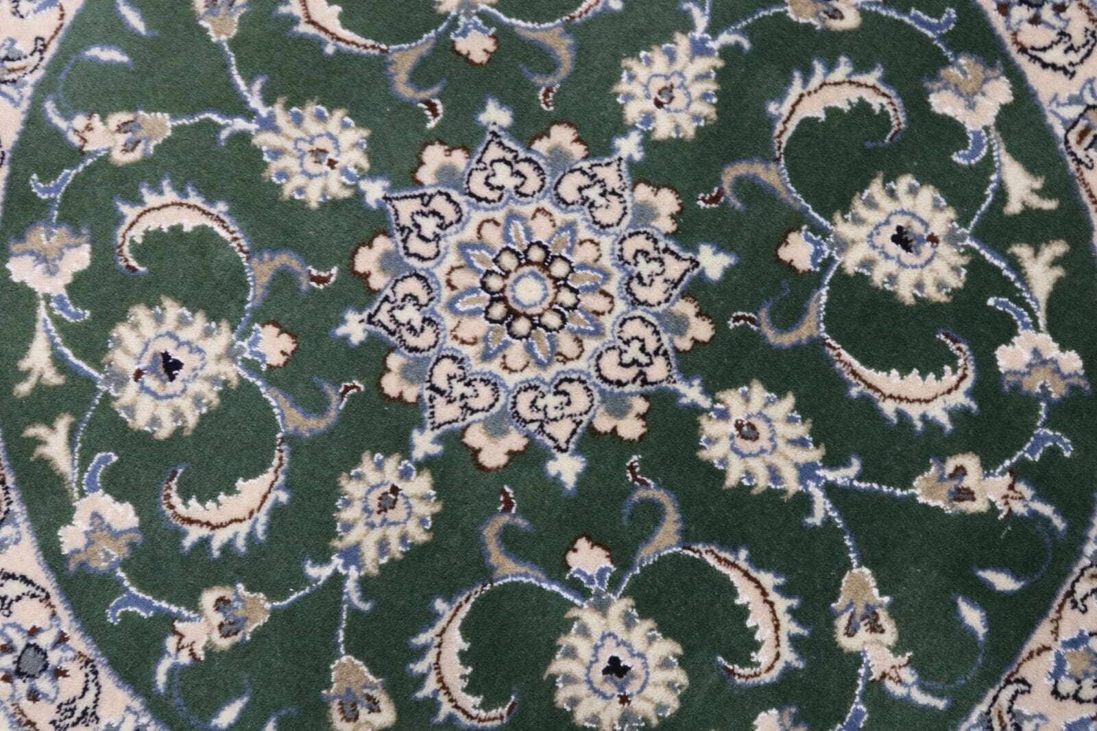 Handgeknüpfter Orientteppich | Größe: 100 x 100 cm | Knotendichte: ca. 300.000 Knoten/m² | Material: 90 % Schurwolle, 10 % Seide, Kette: 100 % Baumwolle | Zustand: Neu, sehr gut | Herkunft: Persien | Muster: Orientalisch | Dicke: ca. 8 mm | Für Fußbodenheizung geeignet | Kinder- und haustierfreundlich