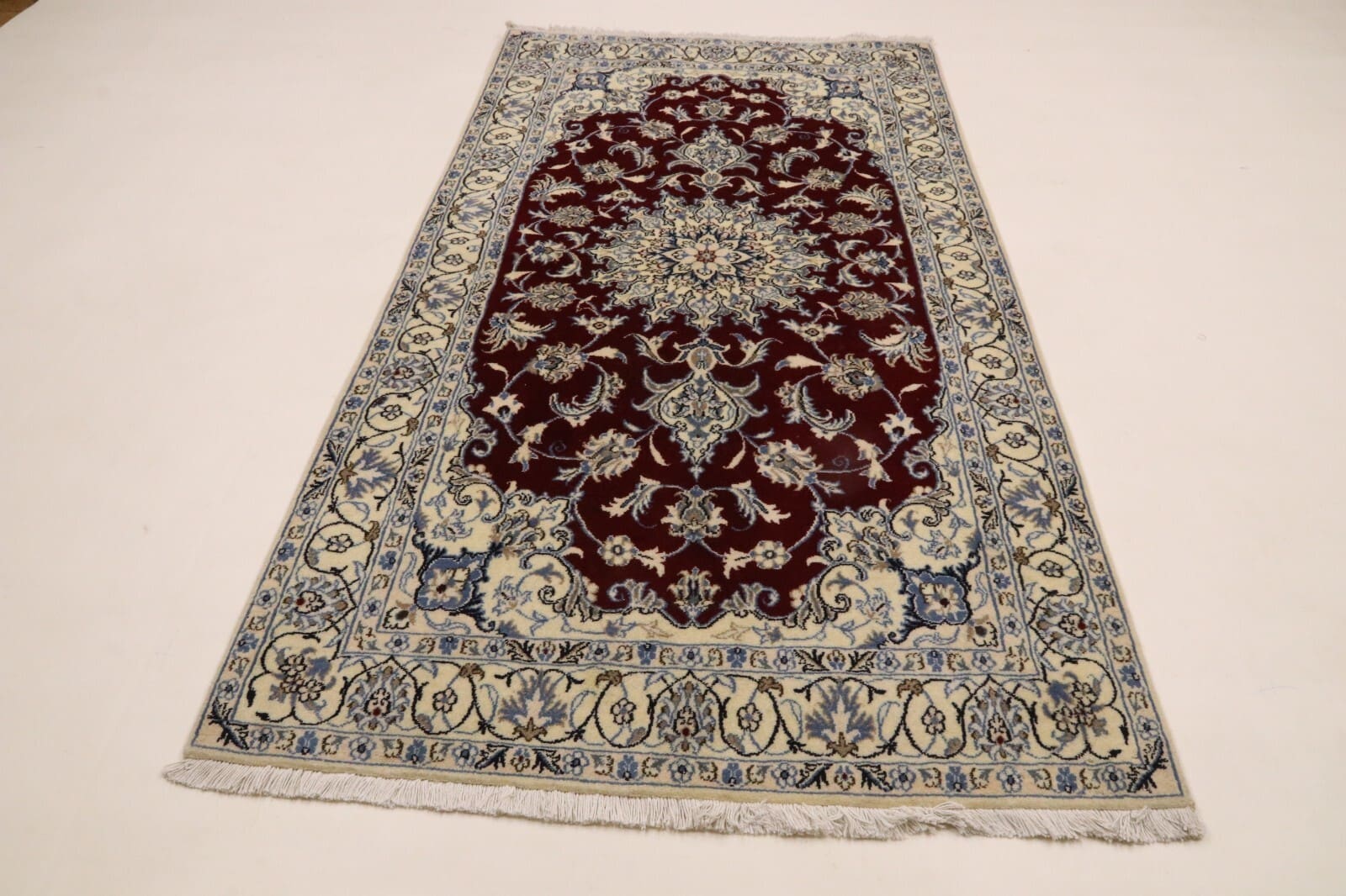 Handgeknüpfter Orientteppich super Nain | Knotendichte: ca. 300.000 Knoten/m² | Material: 100% Schurwolle und 100% Baumwolle | Größe: 215 x 121 cm | Zustand: Neu, unbenutzt | Herkunft: Persien | Florhöhe: ca. 8 mm | Geeignet für Fußbodenheizung | Stil: Traditionell Orientalisch/Persisch