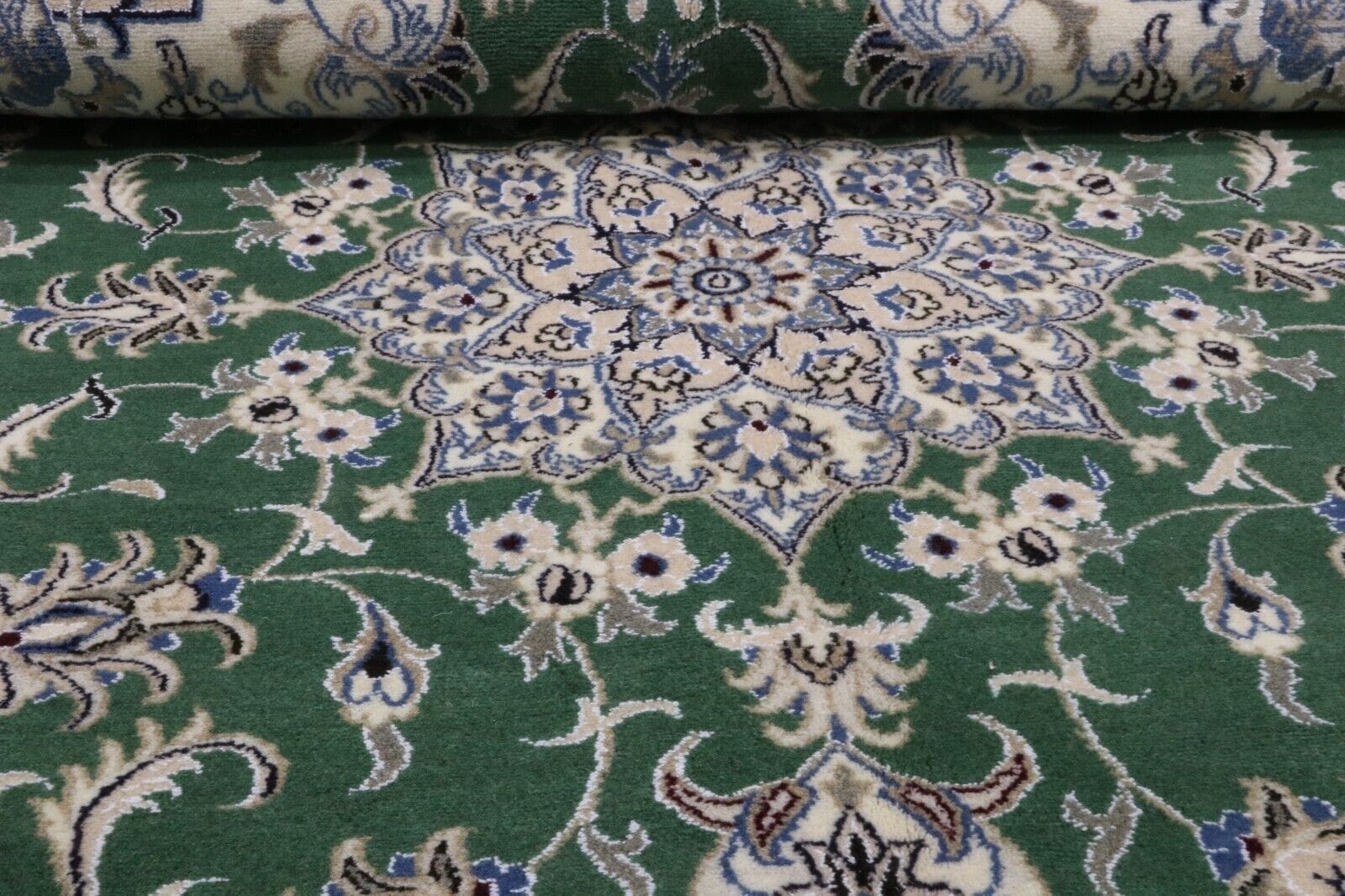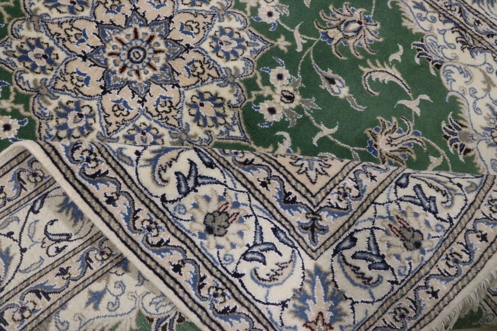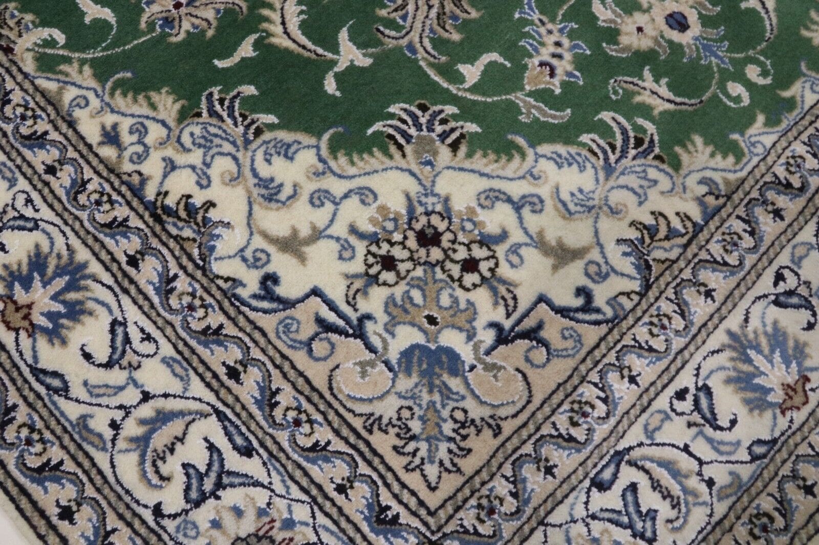Orientteppich super Nain | Größe: 234 x 165 cm | Material: 90 % Schurwolle, 10 % Seide | Knotendichte: ca. 300.000 Knoten/m² | Zustand: Neu, sehr gut | Herkunft: Persien | Dicke: ca. 8 mm | Handgeknüpft, einzigartig | Für Fußbodenheizung geeignet, haustierfreundlich | Stil: Traditionell Orientalisch/Persisch