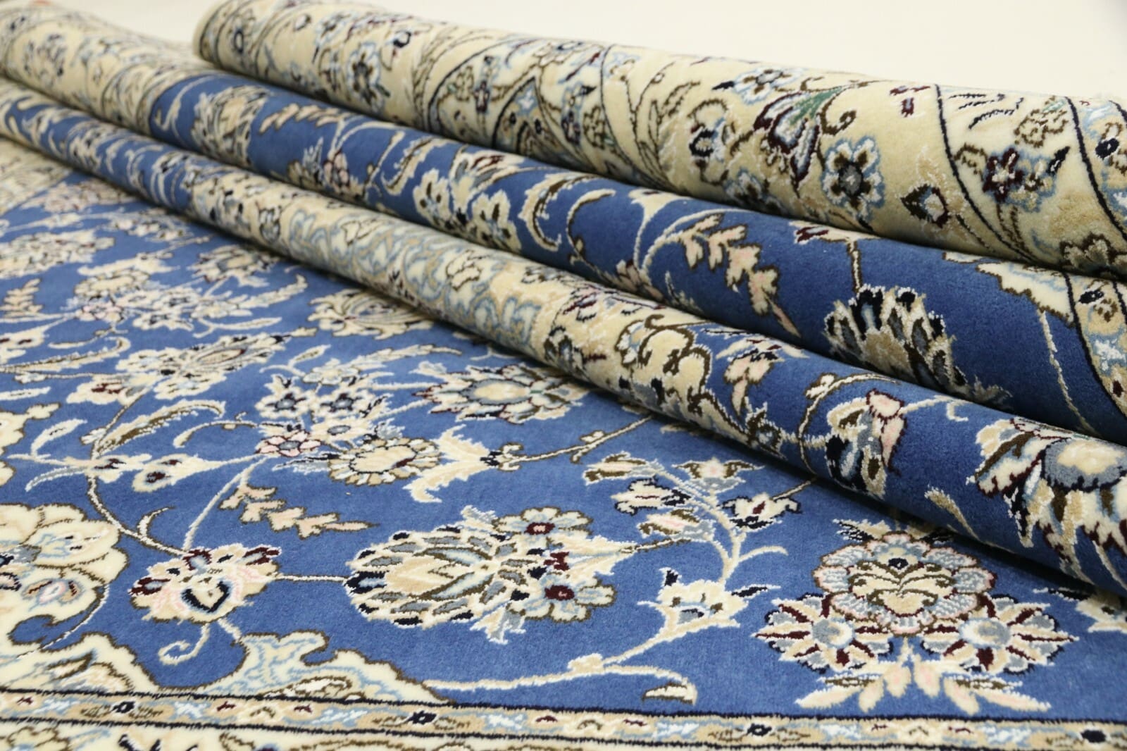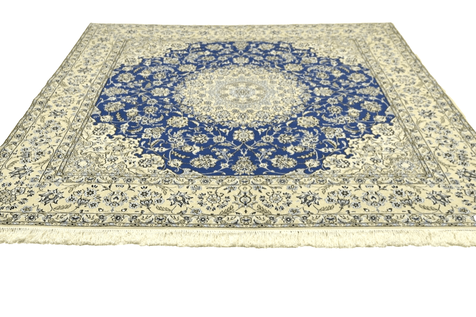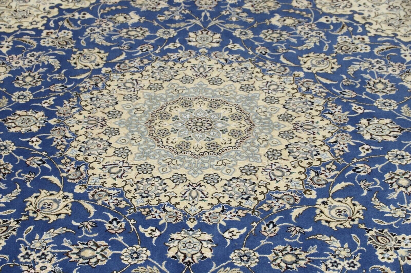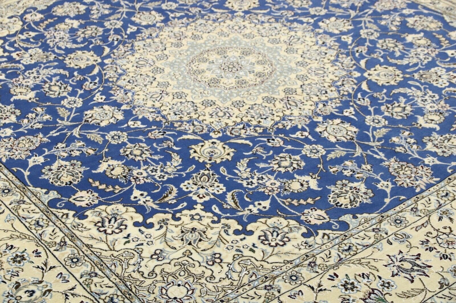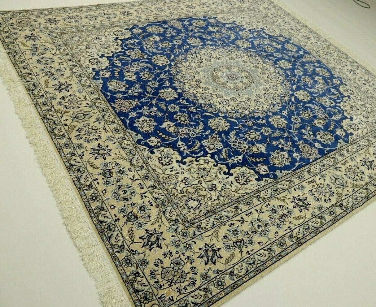 Wunderschöner Orientteppich Super Nain 6 La | Knotendichte: 850.000 – 1.000.000 Knoten/m² | Material: 80 % Korkwolle, 20 % Naturseide | Größe: 245 x 201 cm | Zustand: Neu und unbenutzt | Herkunft: Persien | Verarbeitung: Handgeknüpft | Stil: Traditionell Orientalisch/Persisch | Besonderheiten: Für Fußbodenheizung geeignet, haustierfreundlich | Dicke: ca. 5 mm