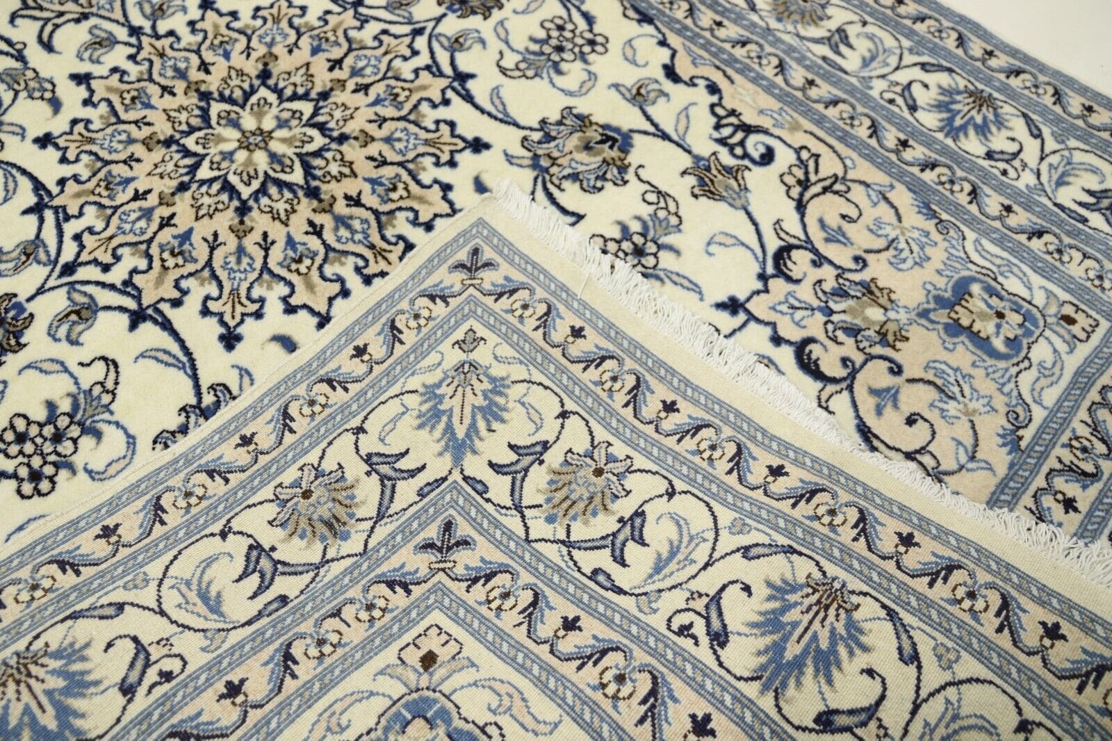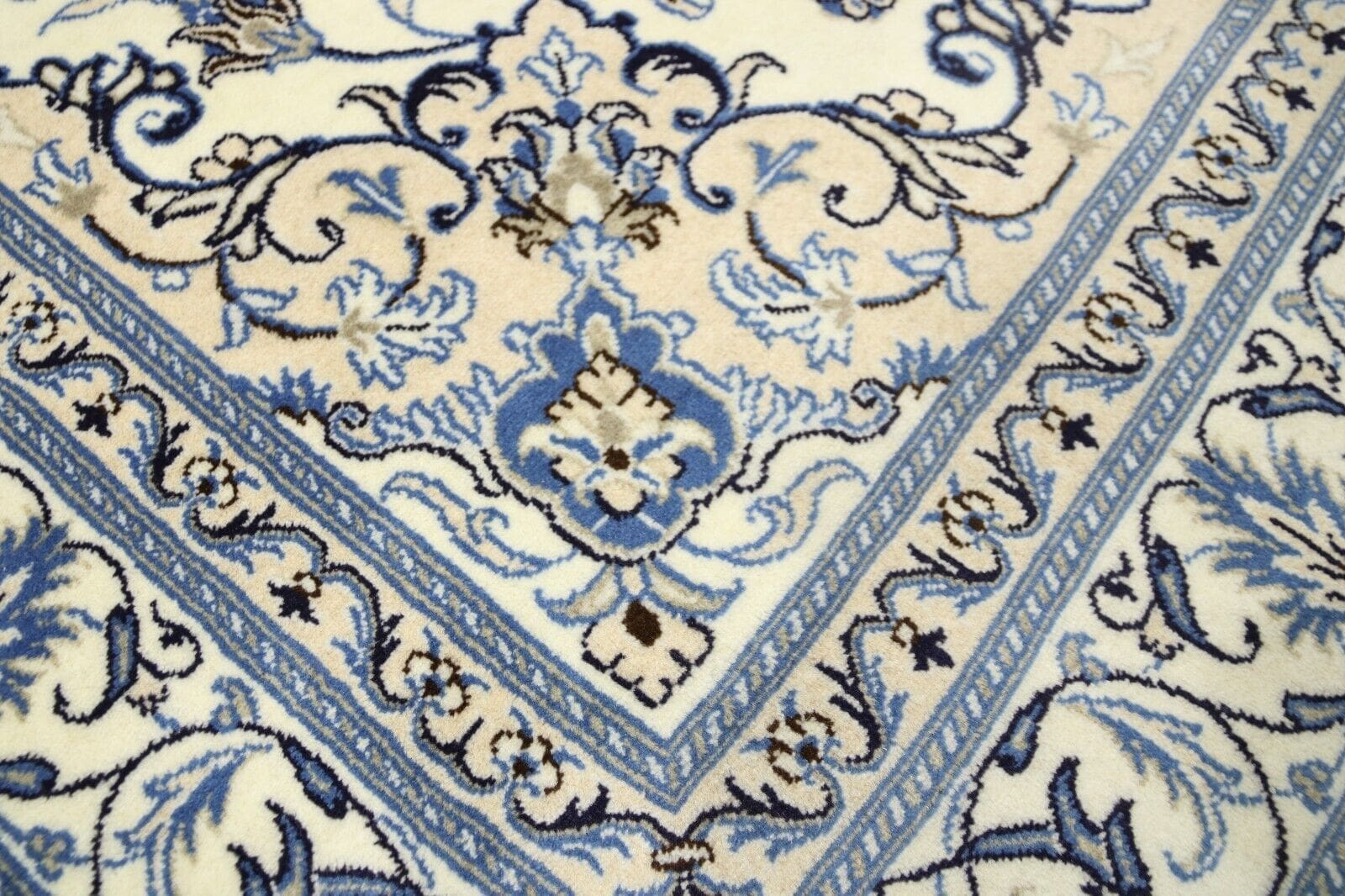 Orientteppich super Nain | Größe: 245 x 165 cm | Knotendichte: ca. 300.000 Knoten/m² | Material: 90% Schurwolle, 10% Seide | Zustand: Neu | Herkunft: Persien | Dicke: ca. 8 mm | Handgeknüpft | Für Fußbodenheizung geeignet | Haustierfreundlich | Traditionelles orientalisches Muster