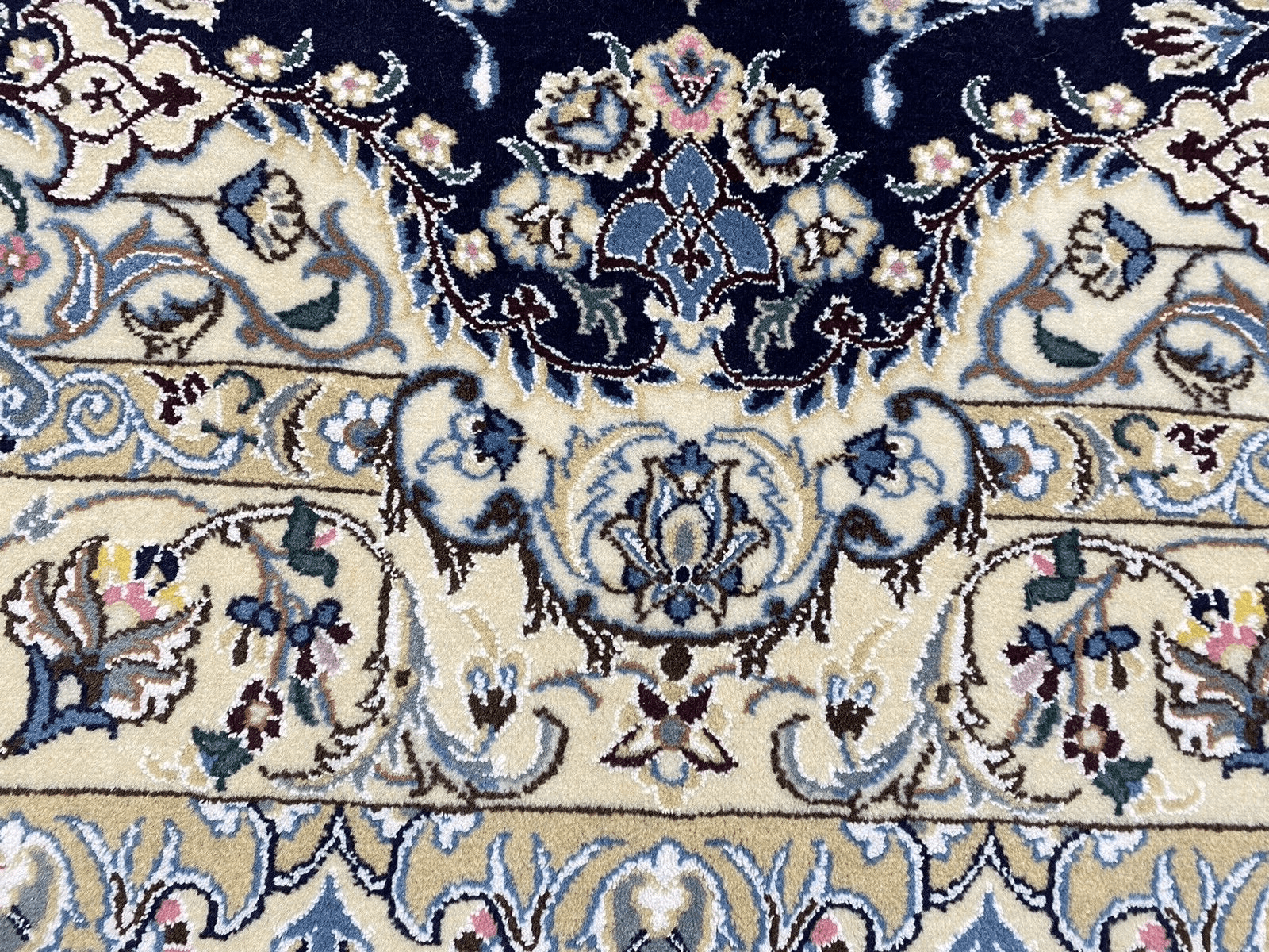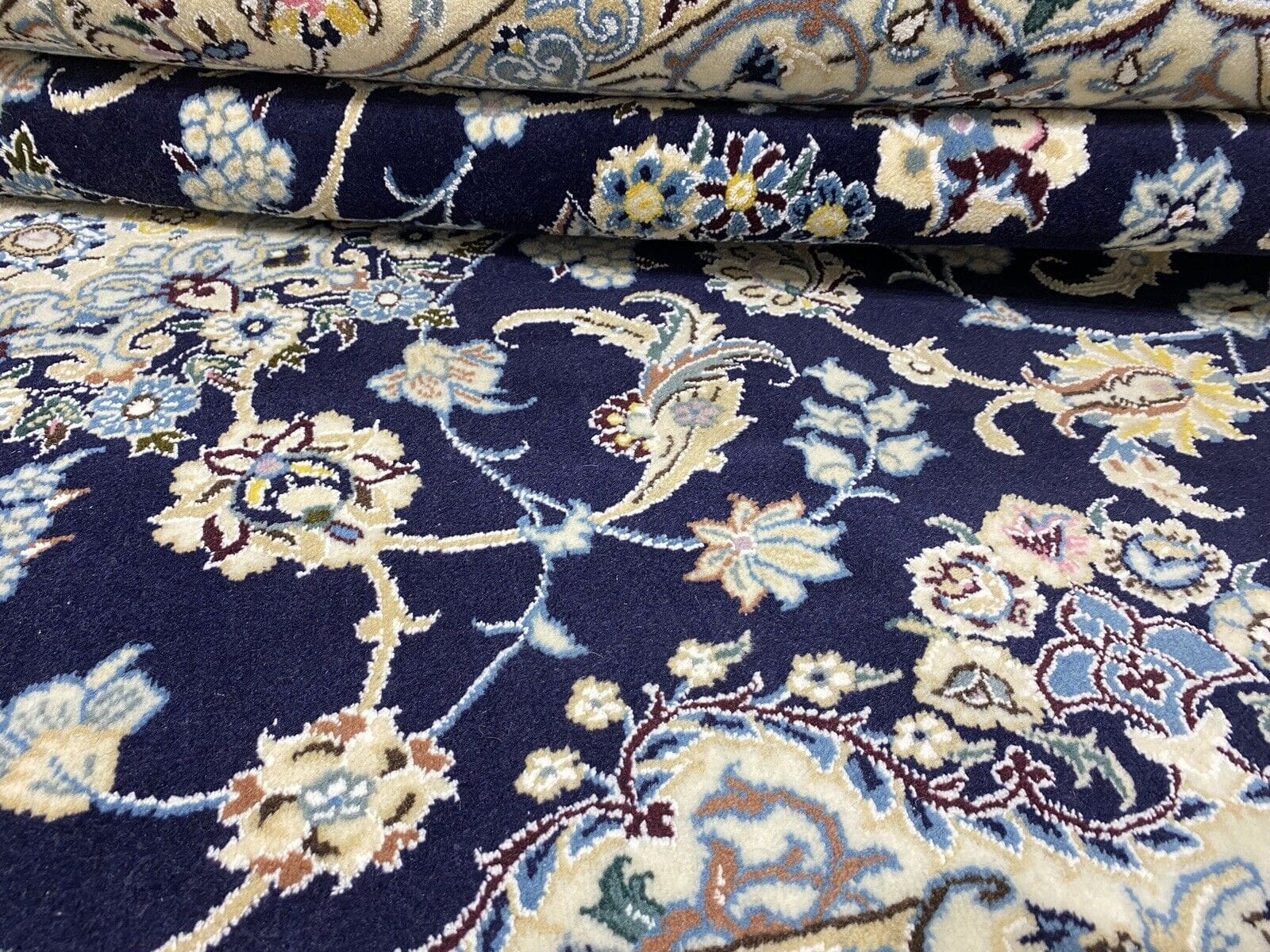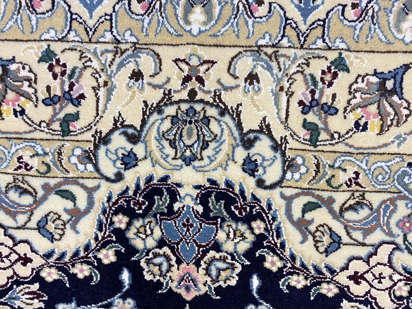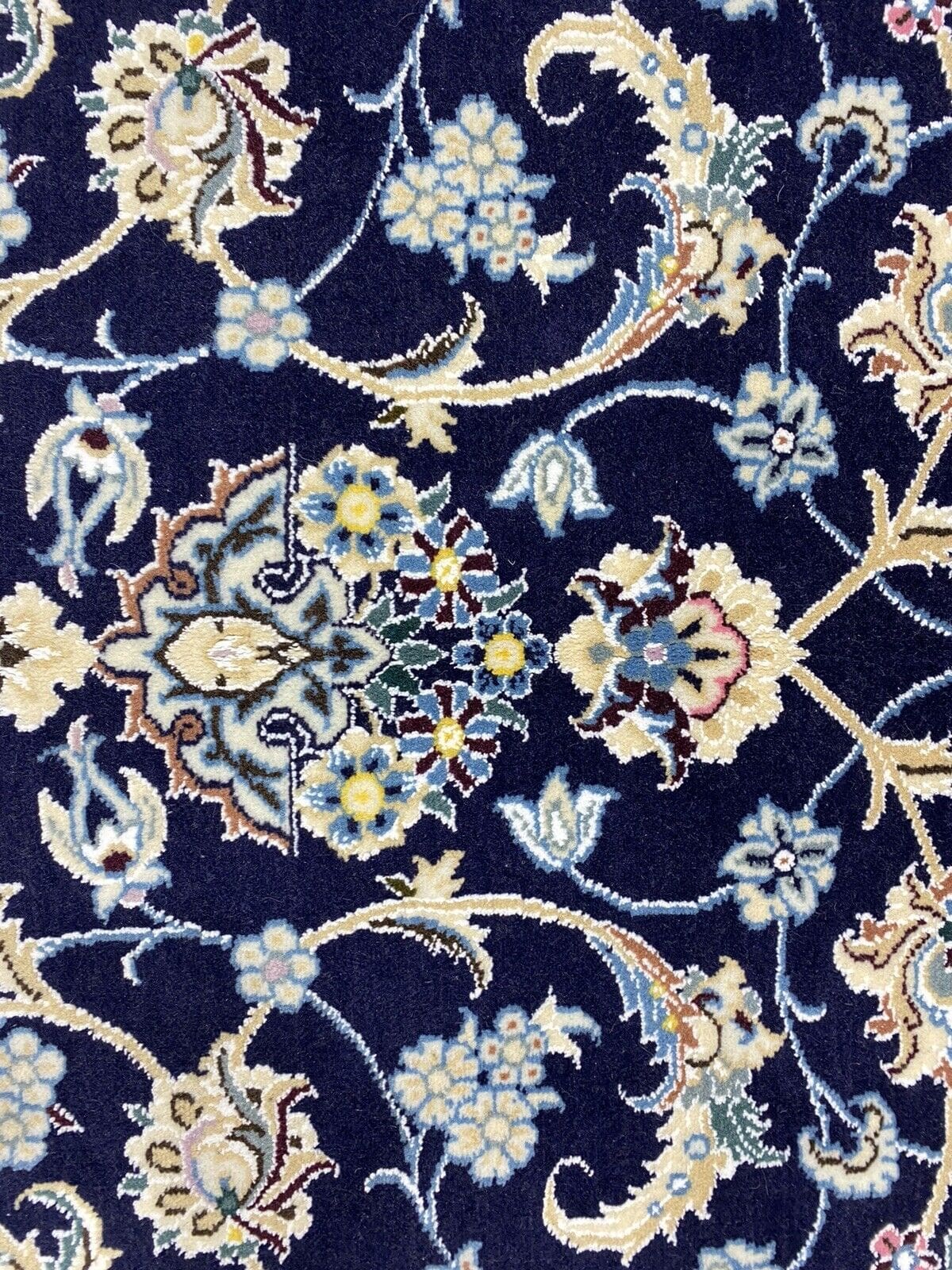 Orientteppich super Nain 9 La | Handgeknüpft | Knotendichte: ca. 500.000 Knoten/m² | Material: 90% Schurwolle, 10% Seide, 100% Baumwolle | Größe: 255 x 158 cm | Zustand: Neu, perfekt | Herkunft: Persien | Stil: Traditionell Orientalisch/Persisch | Florhöhe: ca. 8 mm | Für Fußbodenheizung geeignet, haustierfreundlich | Farbe: Blau