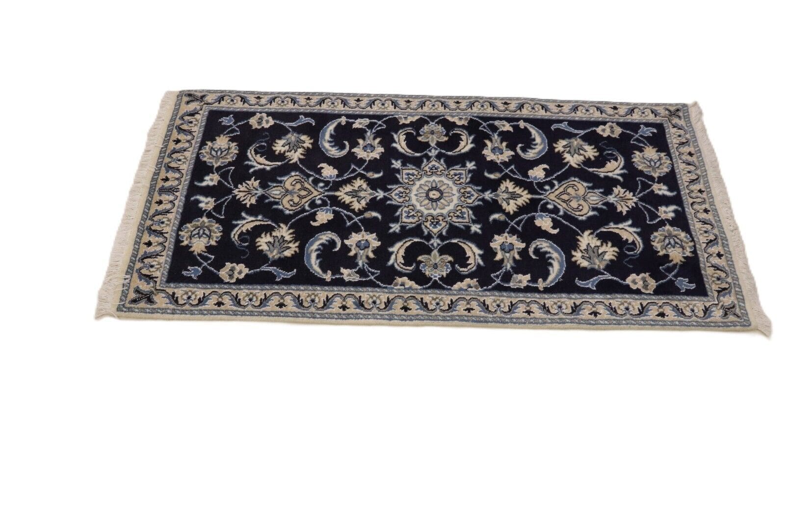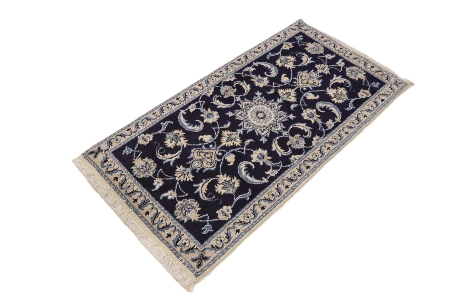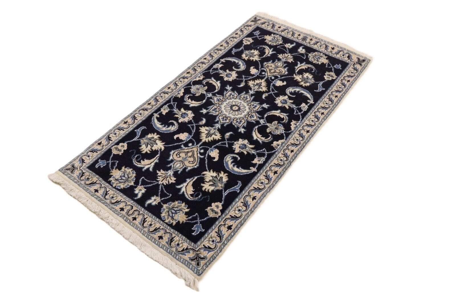 Orientteppich Nain | Größe: 140 x 70 cm | Knotendichte: ca. 300.000 Knoten/m² | Material: 90% Schurwolle, 10% Seide | Kette: 100% Baumwolle | Zustand: Neu und unbenutzt | Herkunft: Persien | Dicke: ca. 8 mm | Stil: Traditionell Orientalisch/Persisch | Für Fußbodenheizung geeignet | Haustierfreundlich | Muster: Orientalisch