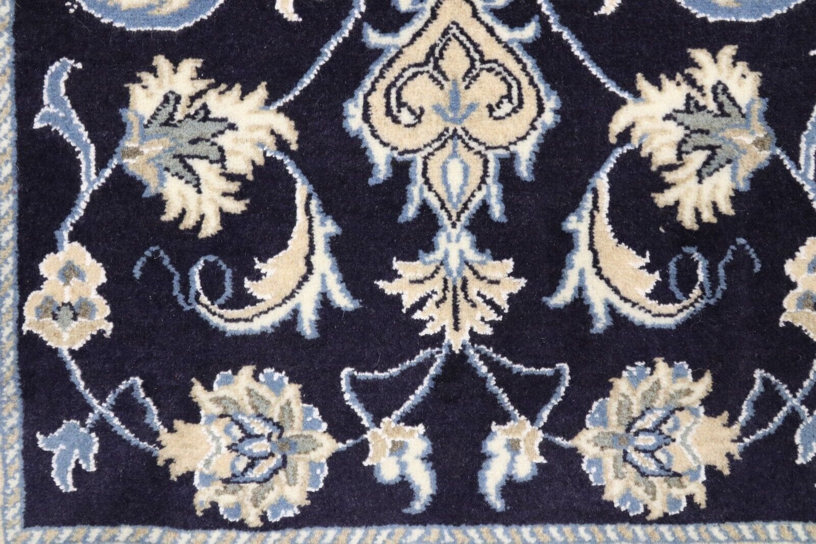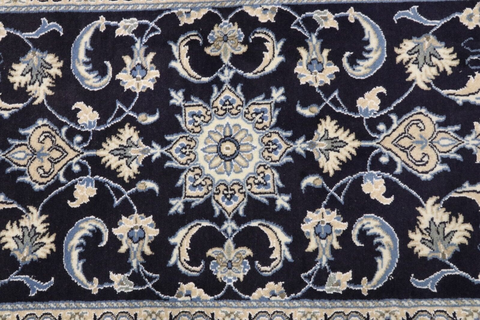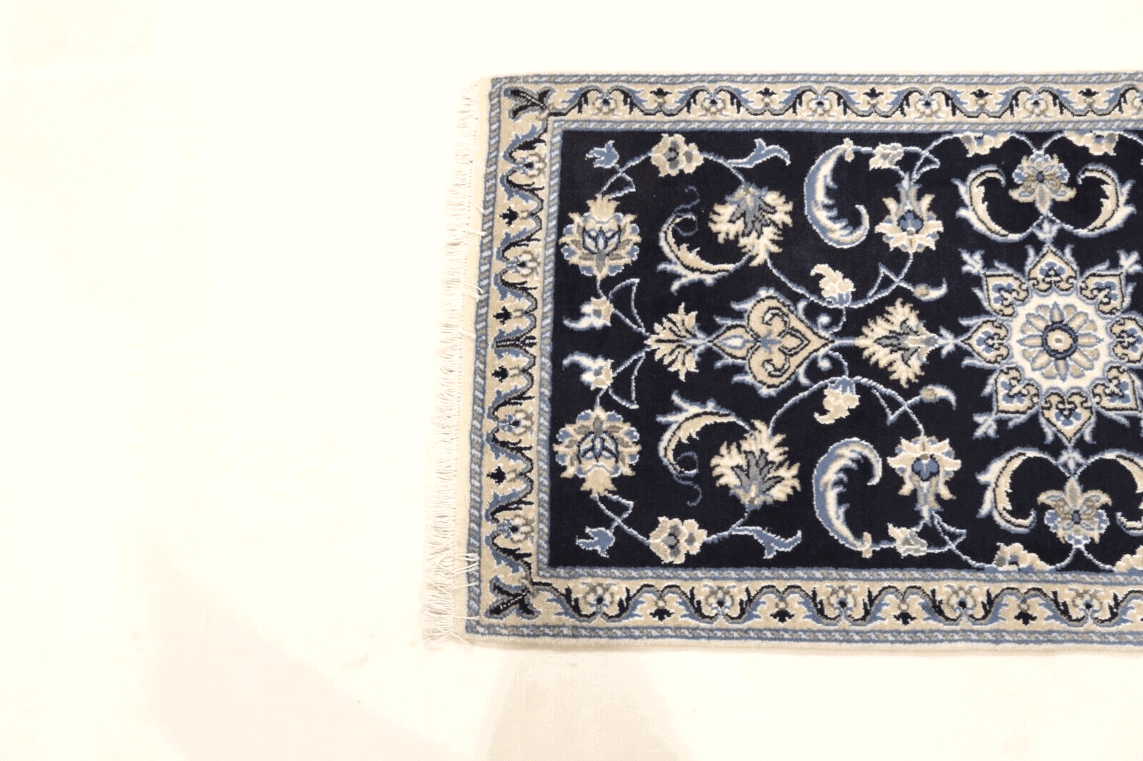 Orientteppich Nain | Größe: 140 x 70 cm | Knotendichte: ca. 300.000 Knoten/m² | Material: 90% Schurwolle, 10% Seide | Kette: 100% Baumwolle | Zustand: Neu und unbenutzt | Herkunft: Persien | Dicke: ca. 8 mm | Stil: Traditionell Orientalisch/Persisch | Für Fußbodenheizung geeignet | Haustierfreundlich | Muster: Orientalisch
