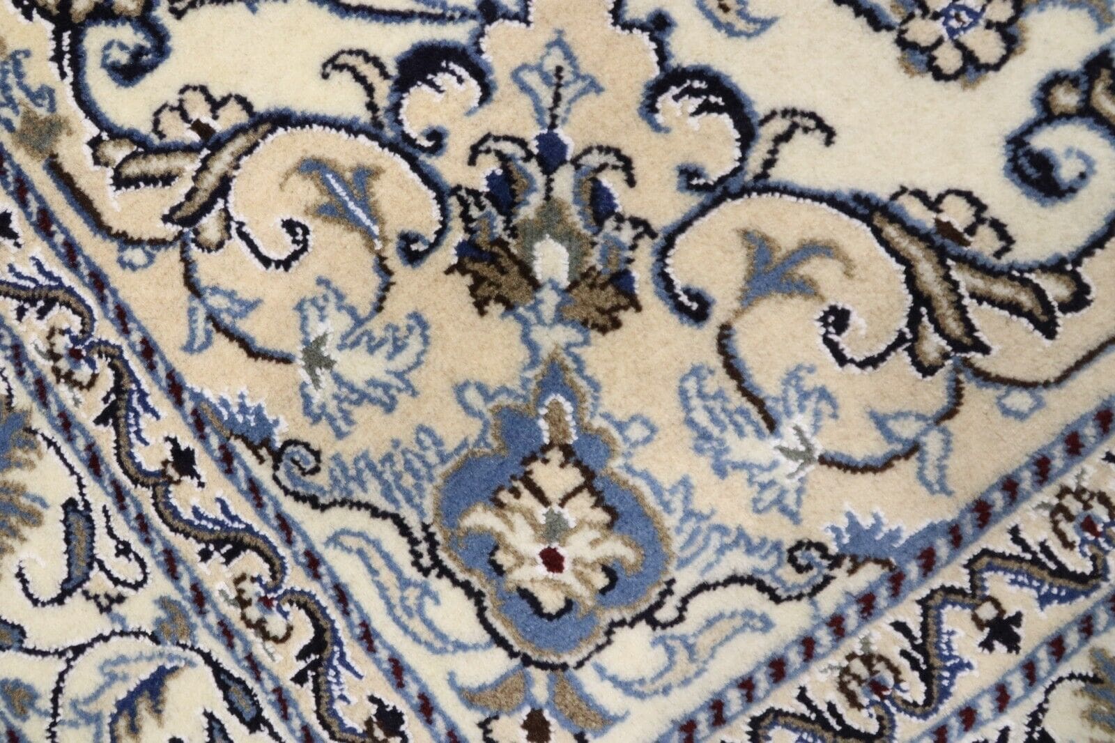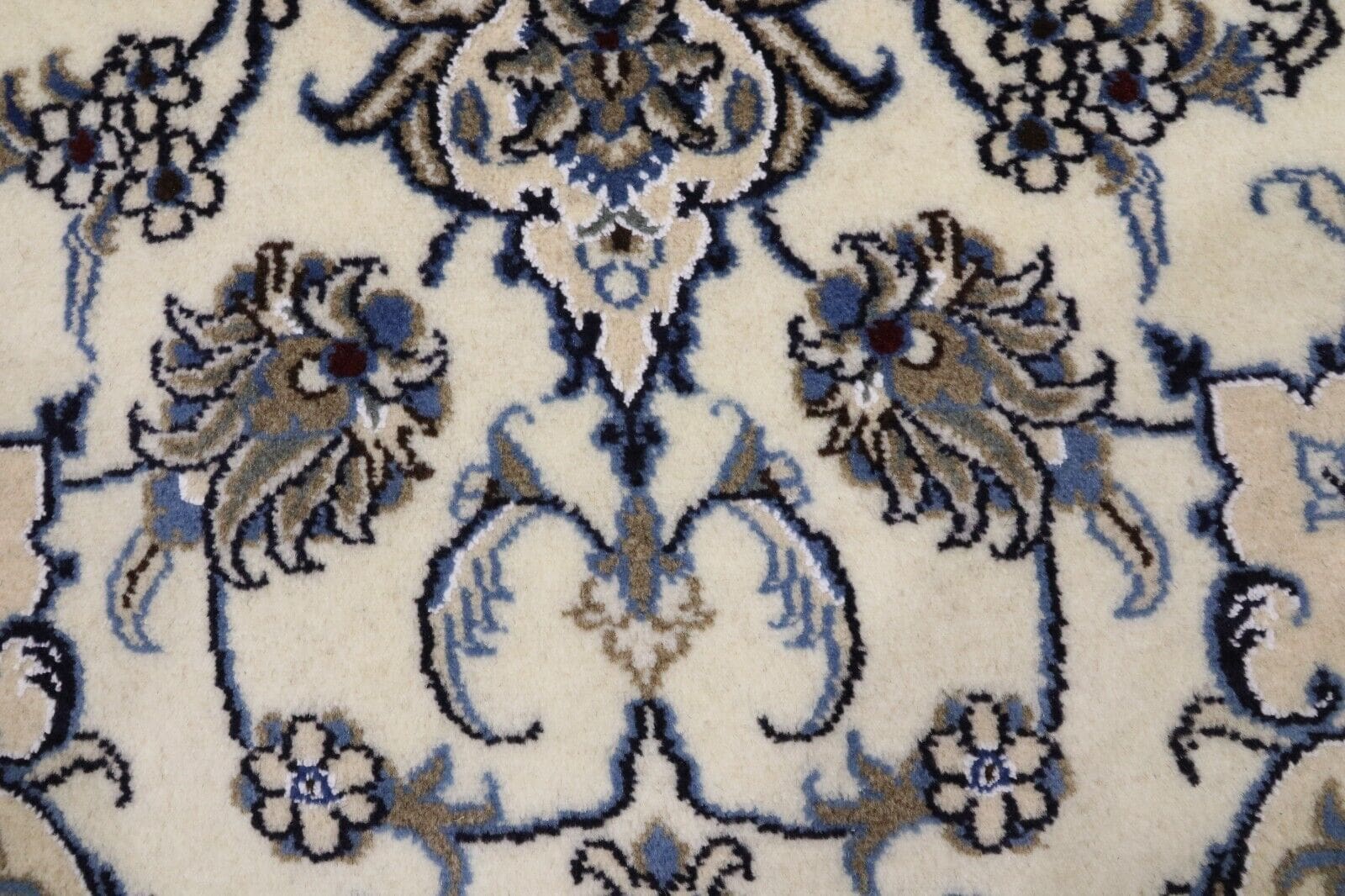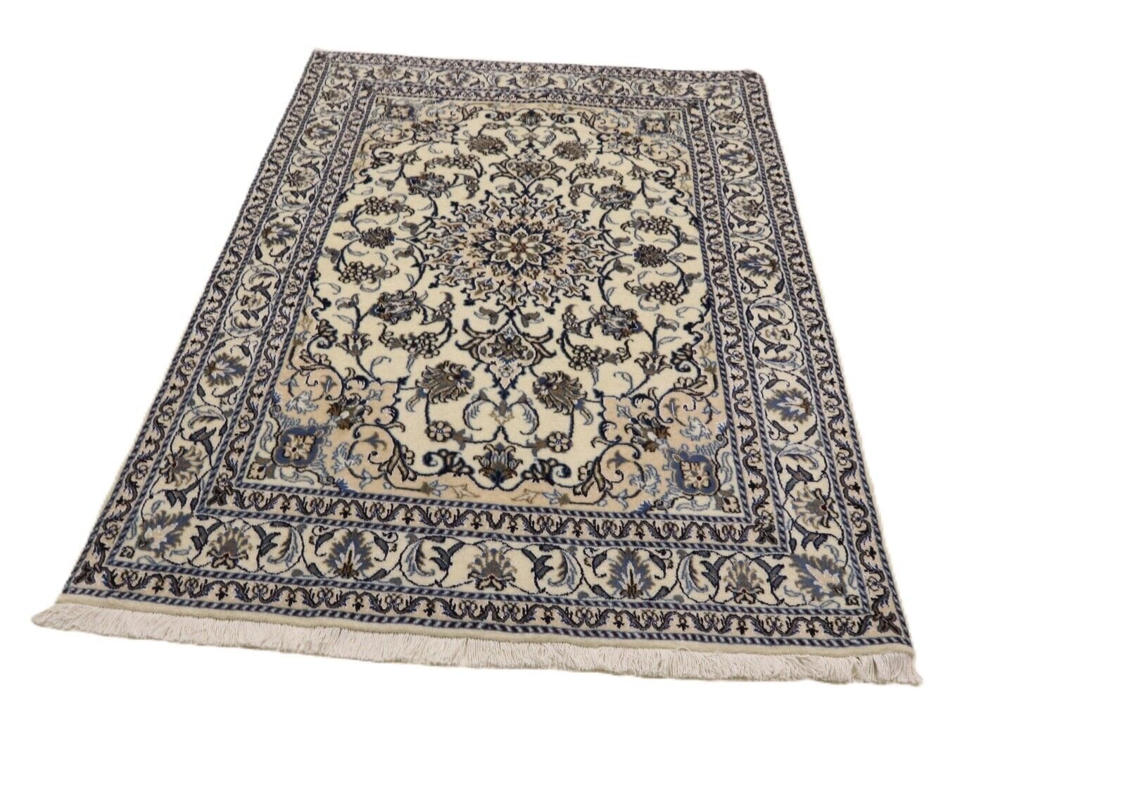 Orientteppich Nain | Größe: 198 x 143 cm | Material: 90% Schurwolle, 10% Seide | Knotendichte: ca. 300.000 Knoten/m² | Zustand: Neu, sehr gut | Herkunft: Persien | Dicke: ca. 8 mm | Stil: Traditionell Orientalisch/Persisch | Für Fußbodenheizung geeignet | Handgeknüpft, Unikat | Farbe: Weiß