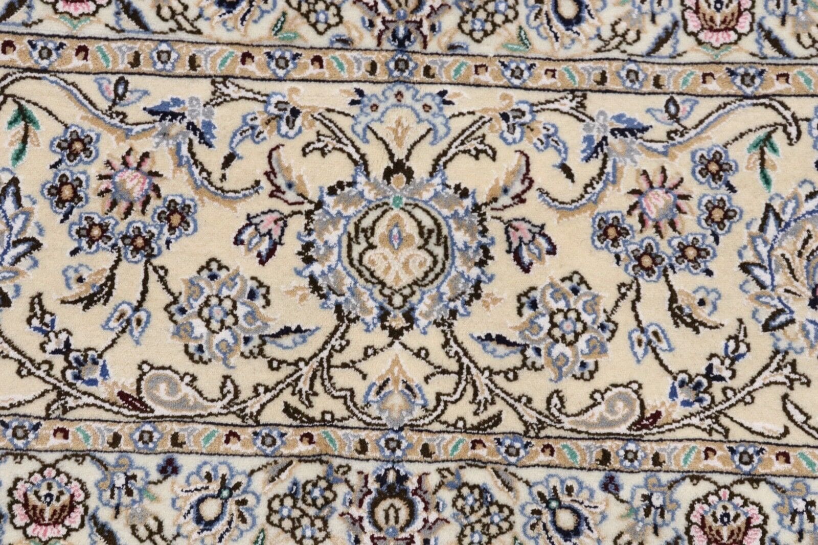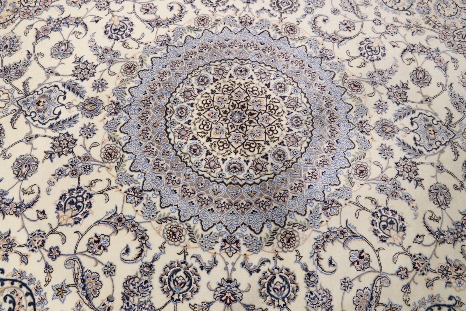 Wunderschöner Orientteppich Nain 9 La | Knotendichte: ca. 500.000 Knoten/m² | Material: 80% Korkwolle, 20% Seide | Größe: 417 x 301 cm | Zustand: Neu | Herkunft: Persien/Iran | Verarbeitung: Handgeknüpft | Besonderheiten: Für Fußbodenheizung geeignet | Stil: Traditionell Orientalisch/Persisch | Florhöhe: Normal