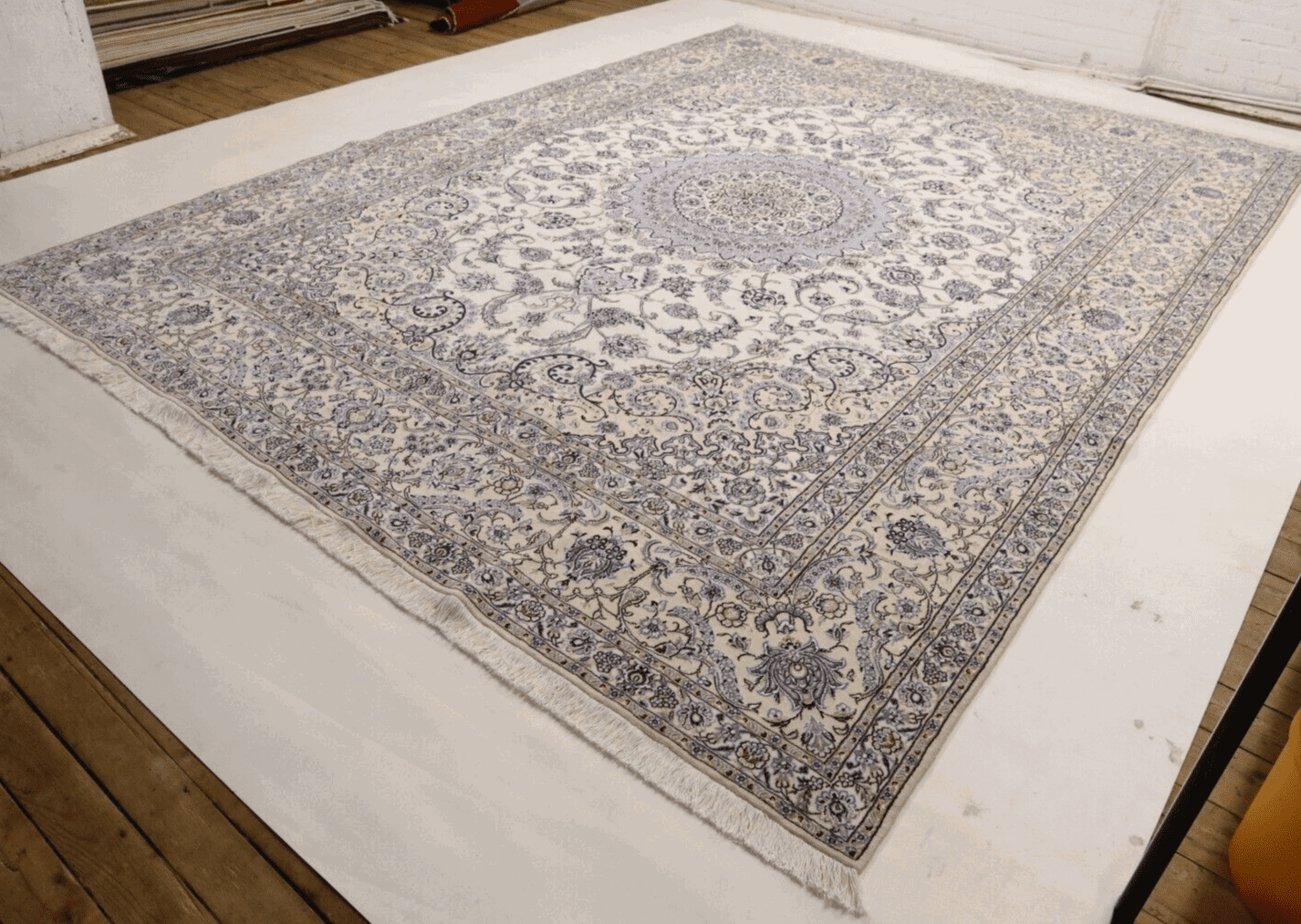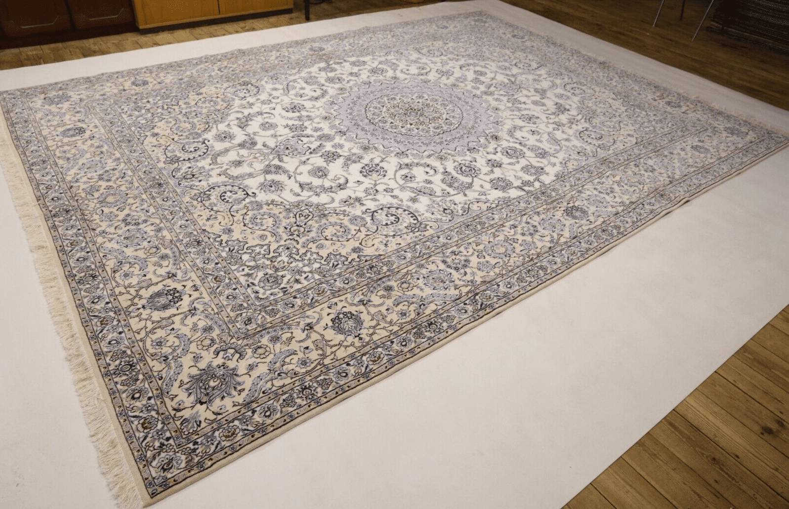2658$Ursprünglicher Preis war: 2658$767$Aktueller Preis ist: 767$ Weiterlesen(Verkauft) W1 (#227) ca. 350x235cm Handgeknüpfter Nain Perserteppich mit Seide 12la