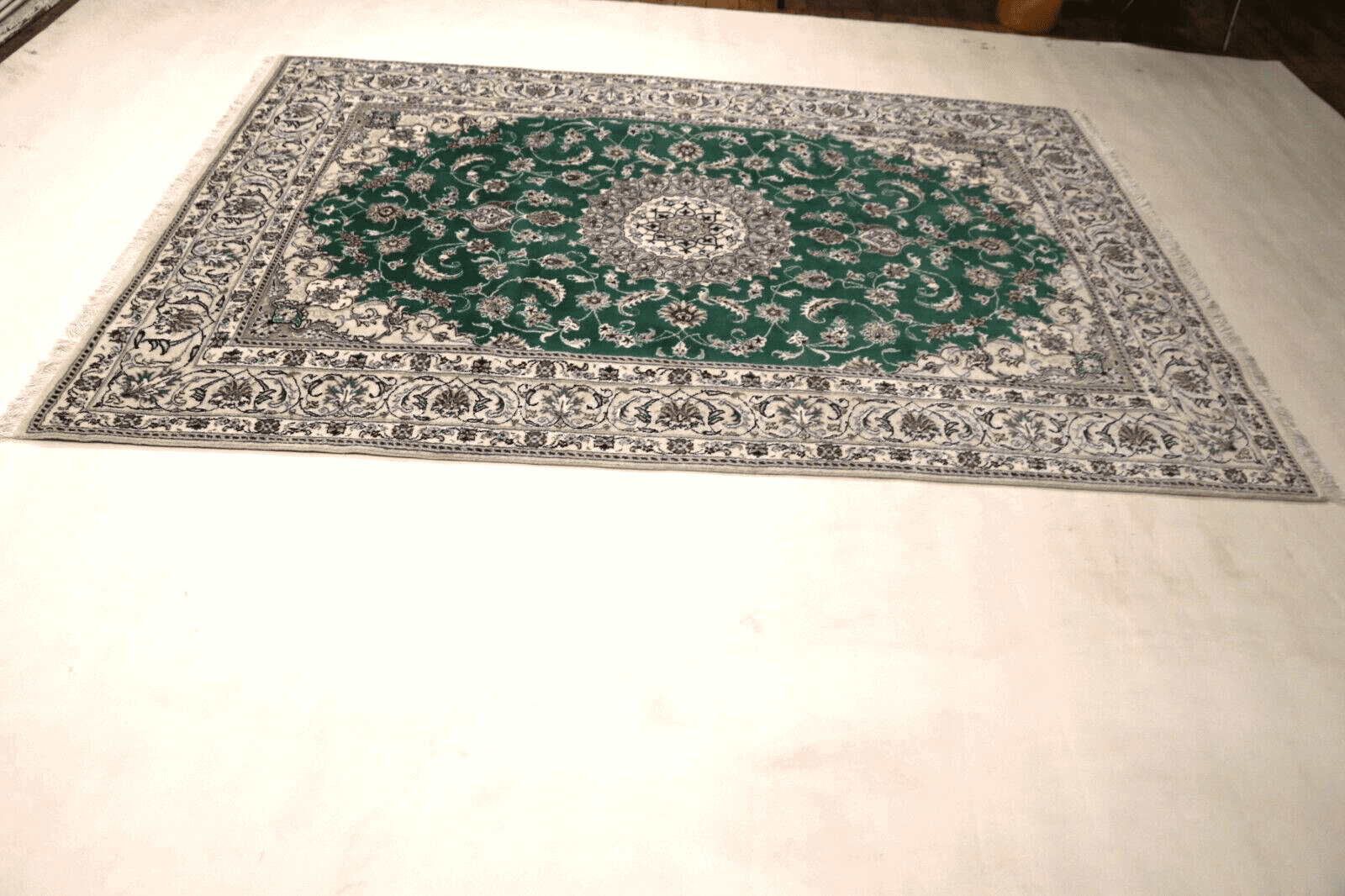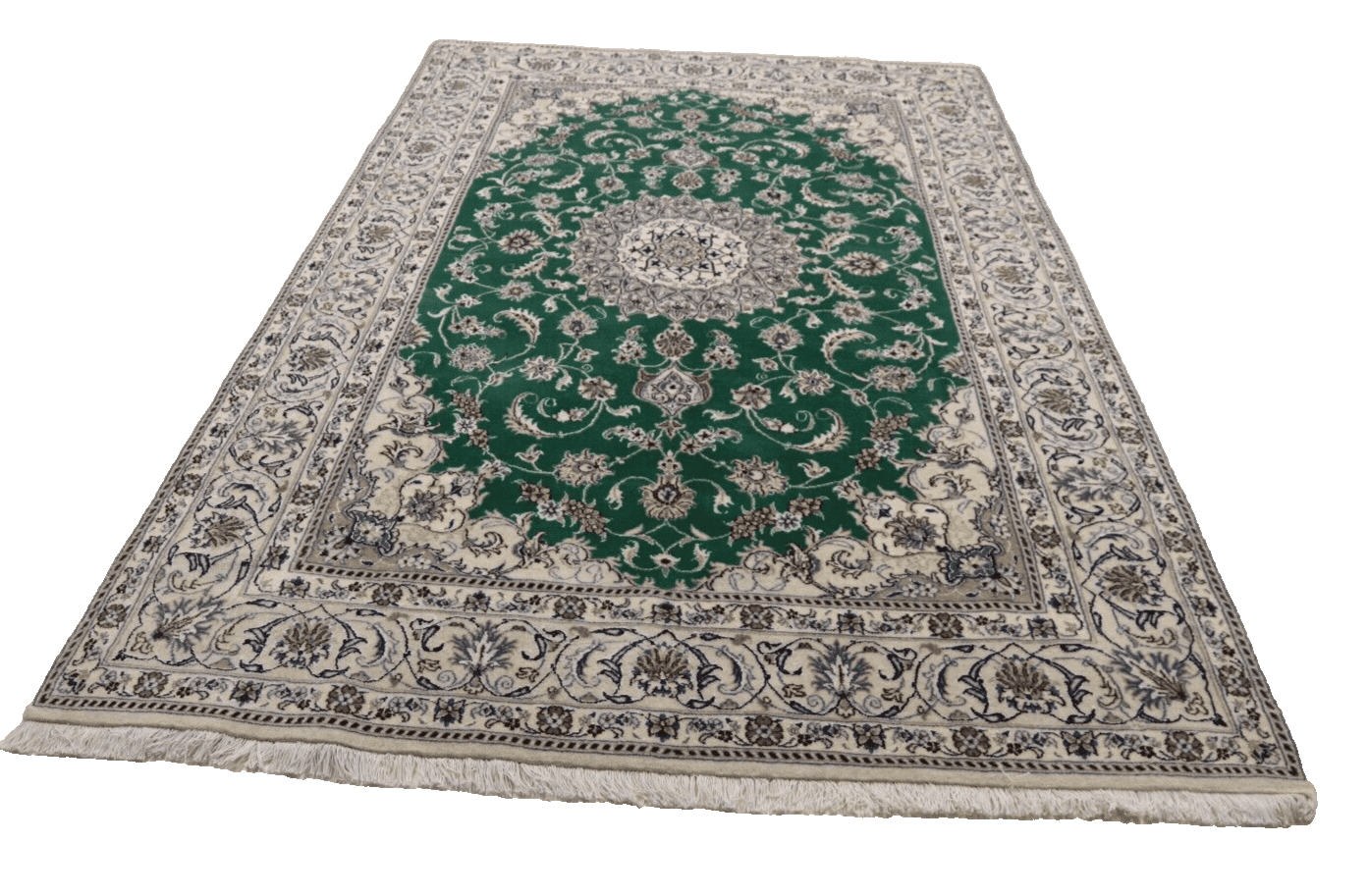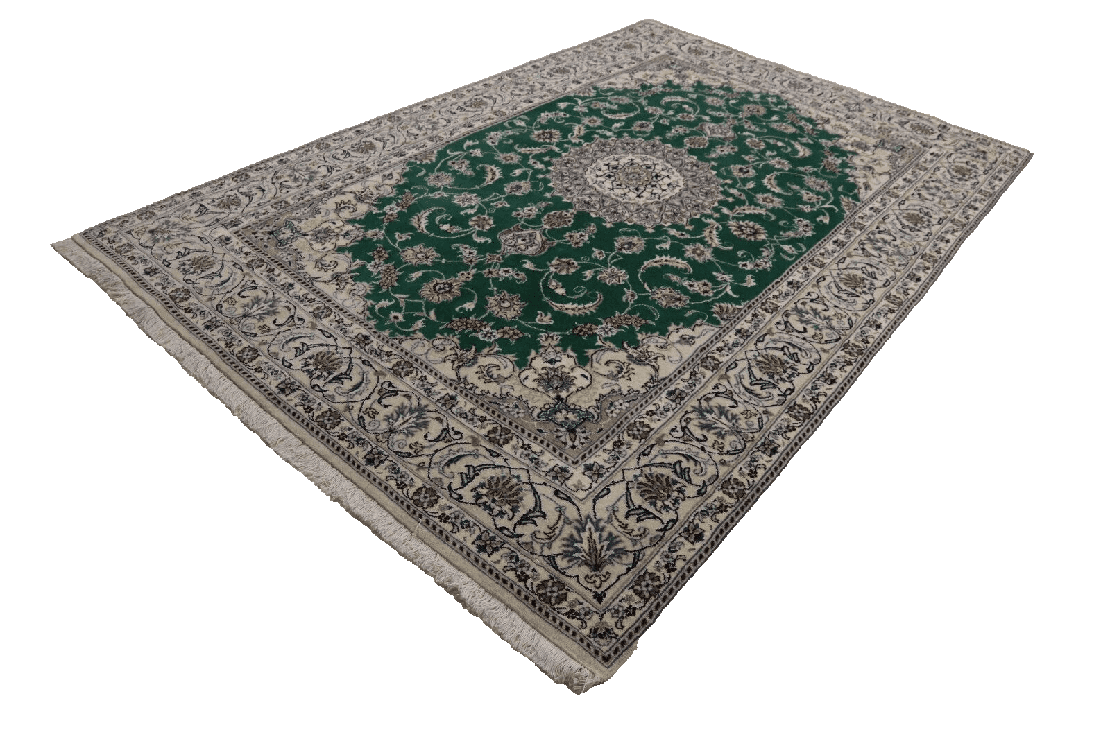 Wunderschöner Orientteppich Nain mit Seide | Größe: 292 x 192 cm | Knotendichte: ca. 300.000 Knoten/m² | Material: 100% Schurwolle (10% Seide), Kette: 100% Baumwolle | Zustand: Neu, sehr gut | Herkunft: Persien | Stil: Traditionell Orientalisch/Persisch | Unikat/Einzelstück | Echtheitszertifikat vorhanden