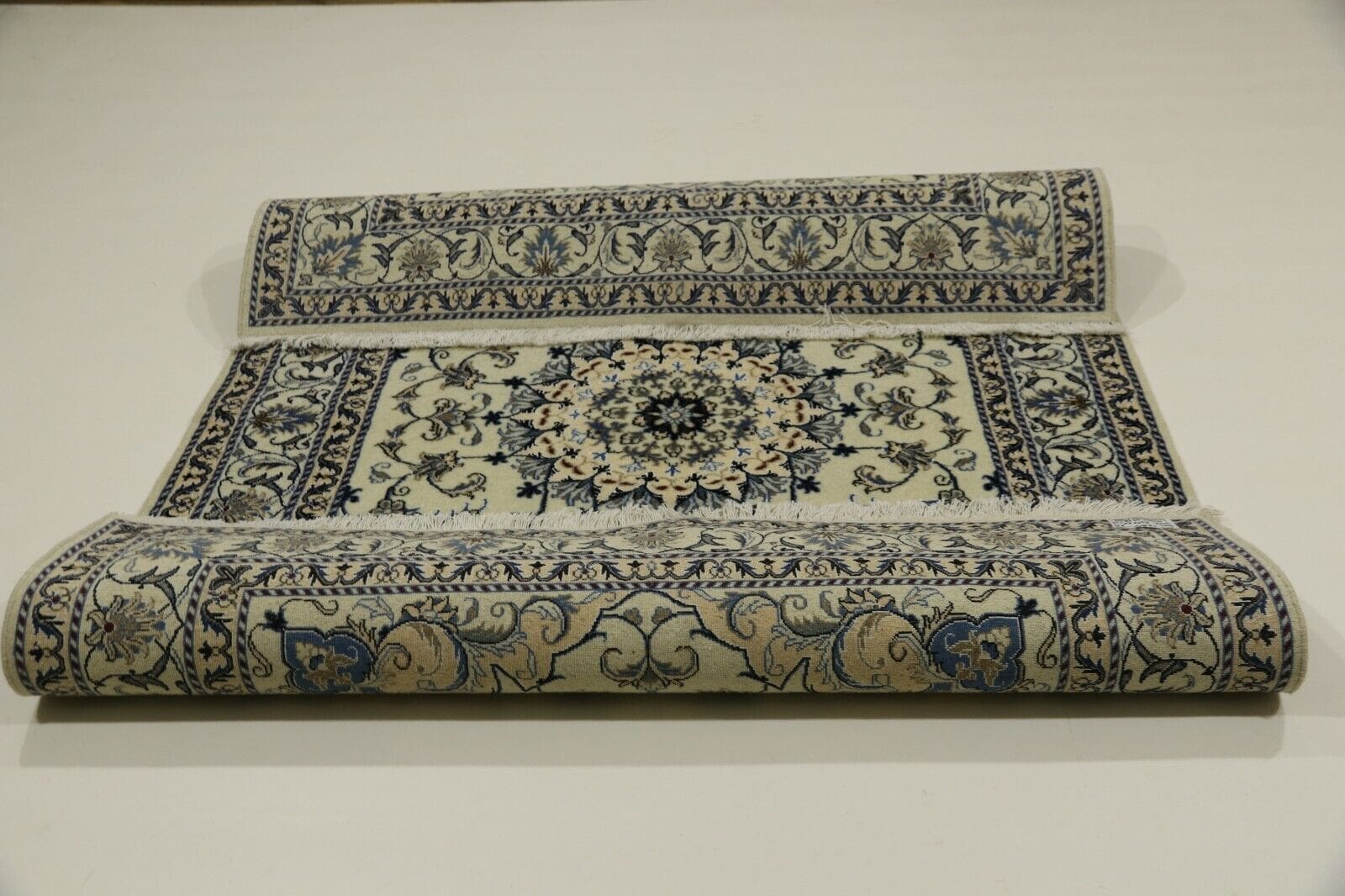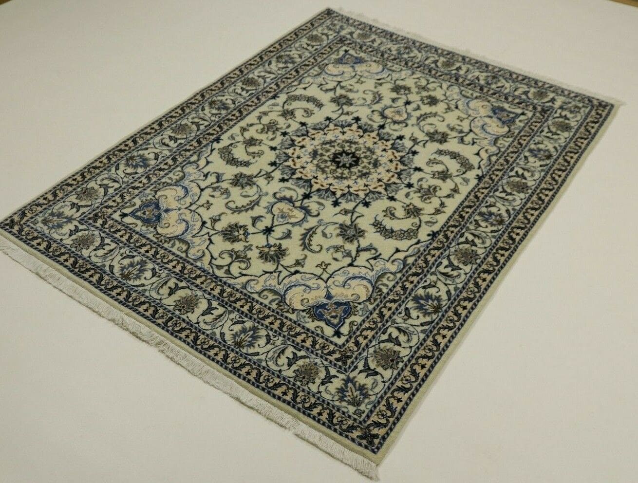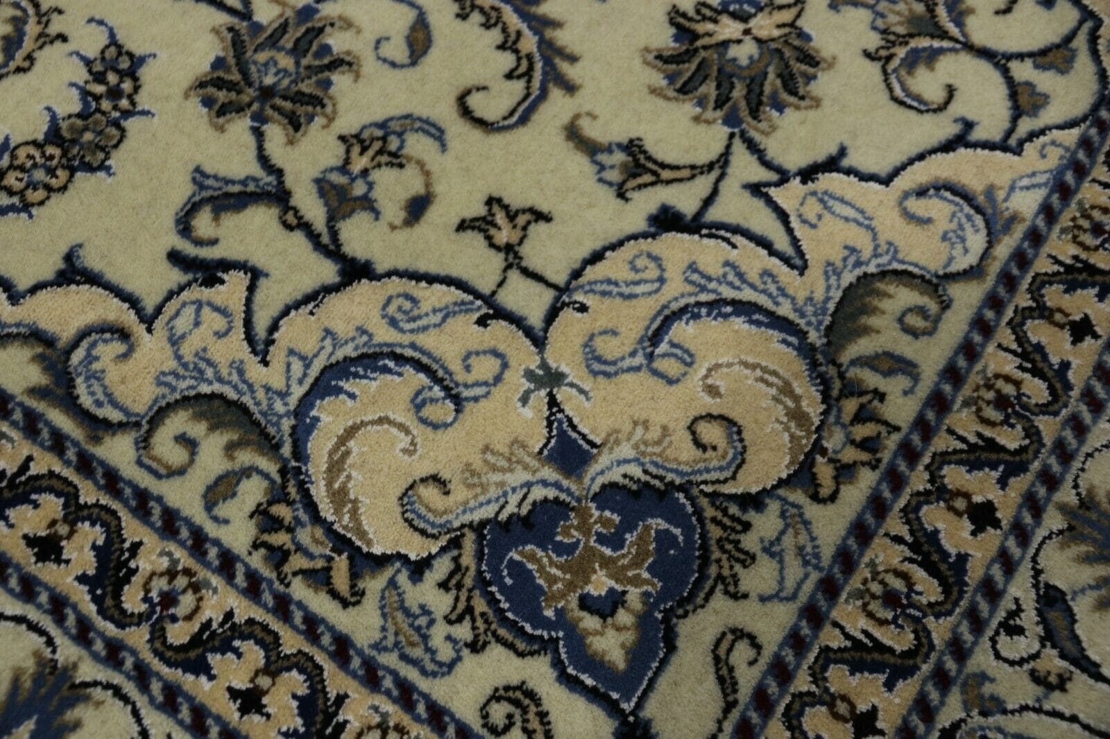 Der Super Nain Teppich stammt aus der renommierten Teppichknüpfregion Nain im Iran. Nain ist bekannt für seine außergewöhnlichen Teppiche, die in der Tradition des persischen Handwerks gefertigt werden. Die Stadt hat sich im Laufe der Jahrhunderte einen Namen gemacht durch die Verwendung von hochwertigen Materialien und das feine, detaillierte Design. Oft werden in Nain Teppichen Himmelblau- und Cremefarben verwendet, die sich durch zarte florale Muster und geometrische Formen auszeichnen.