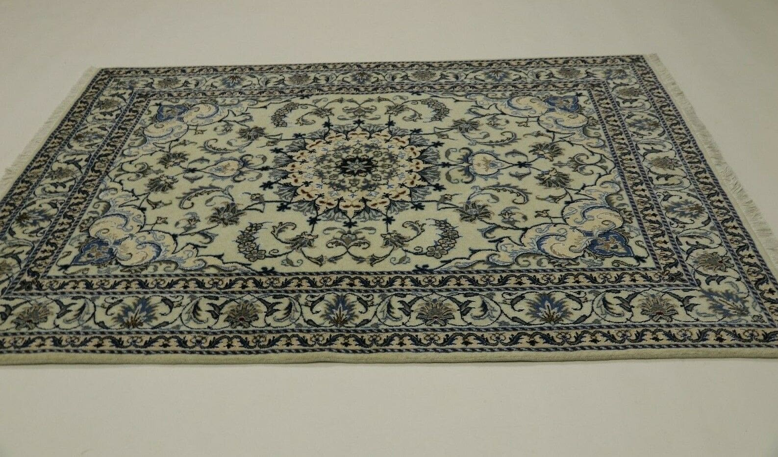 Orientteppich Super Nain | Größe: 204 x 150 cm | Knotendichte: ca. 300.000 Knoten/m² | Material: 90% Schurwolle, 10% Seide | Kette: 100% Baumwolle | Zustand: Neu, perfekt | Herkunft: Persien | Dicke: ca. 8 mm | Stil: Traditionell Orientalisch/Persisch | Ein Unikat/Einzelstück