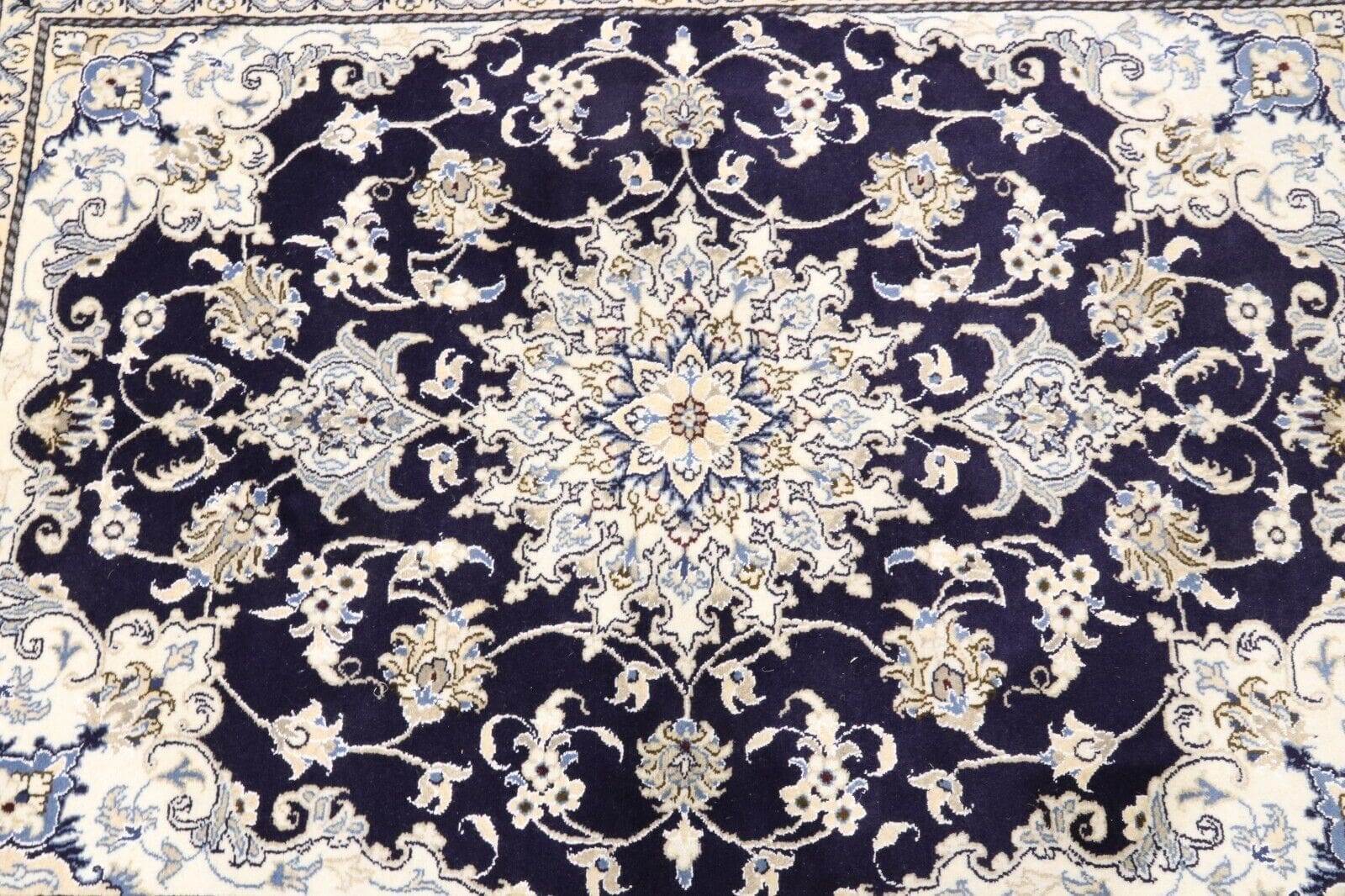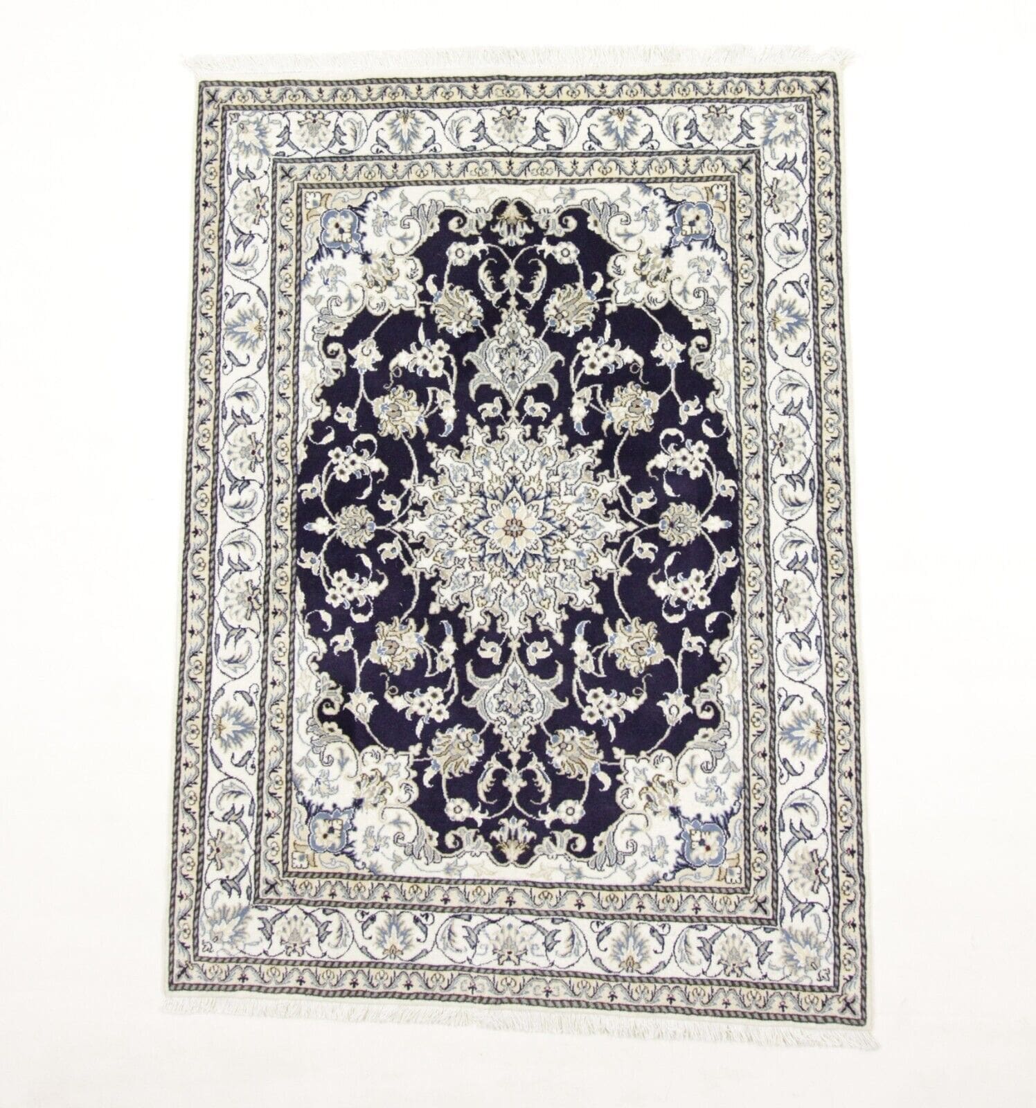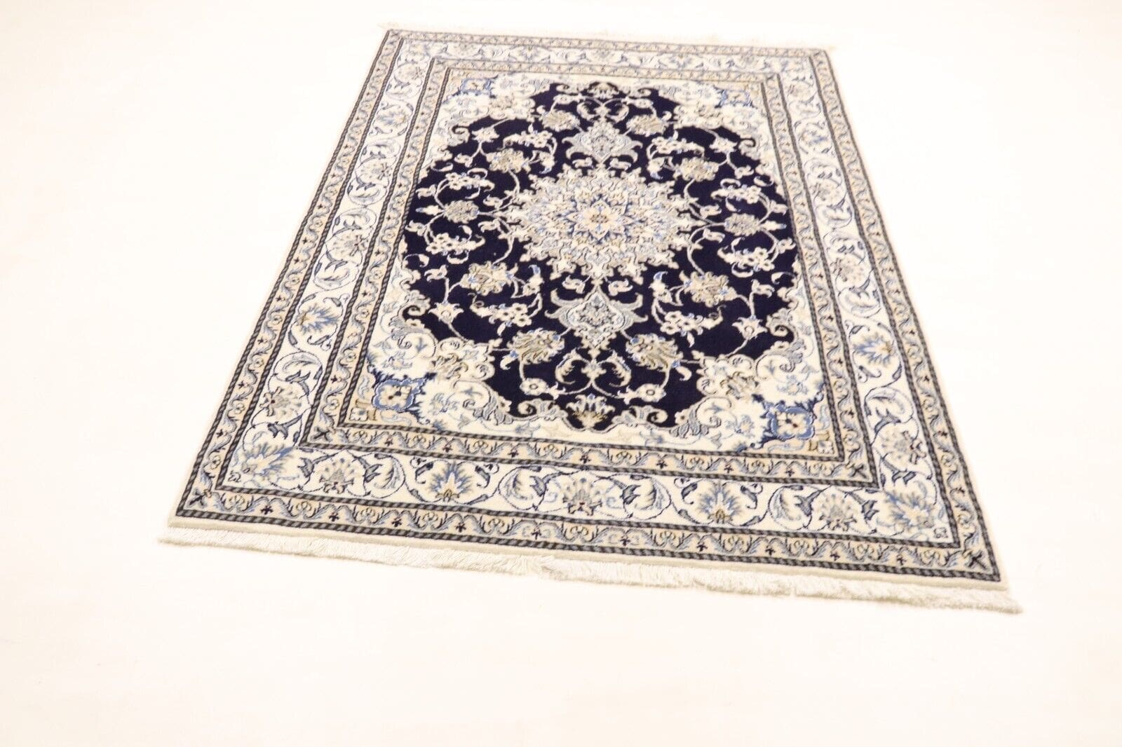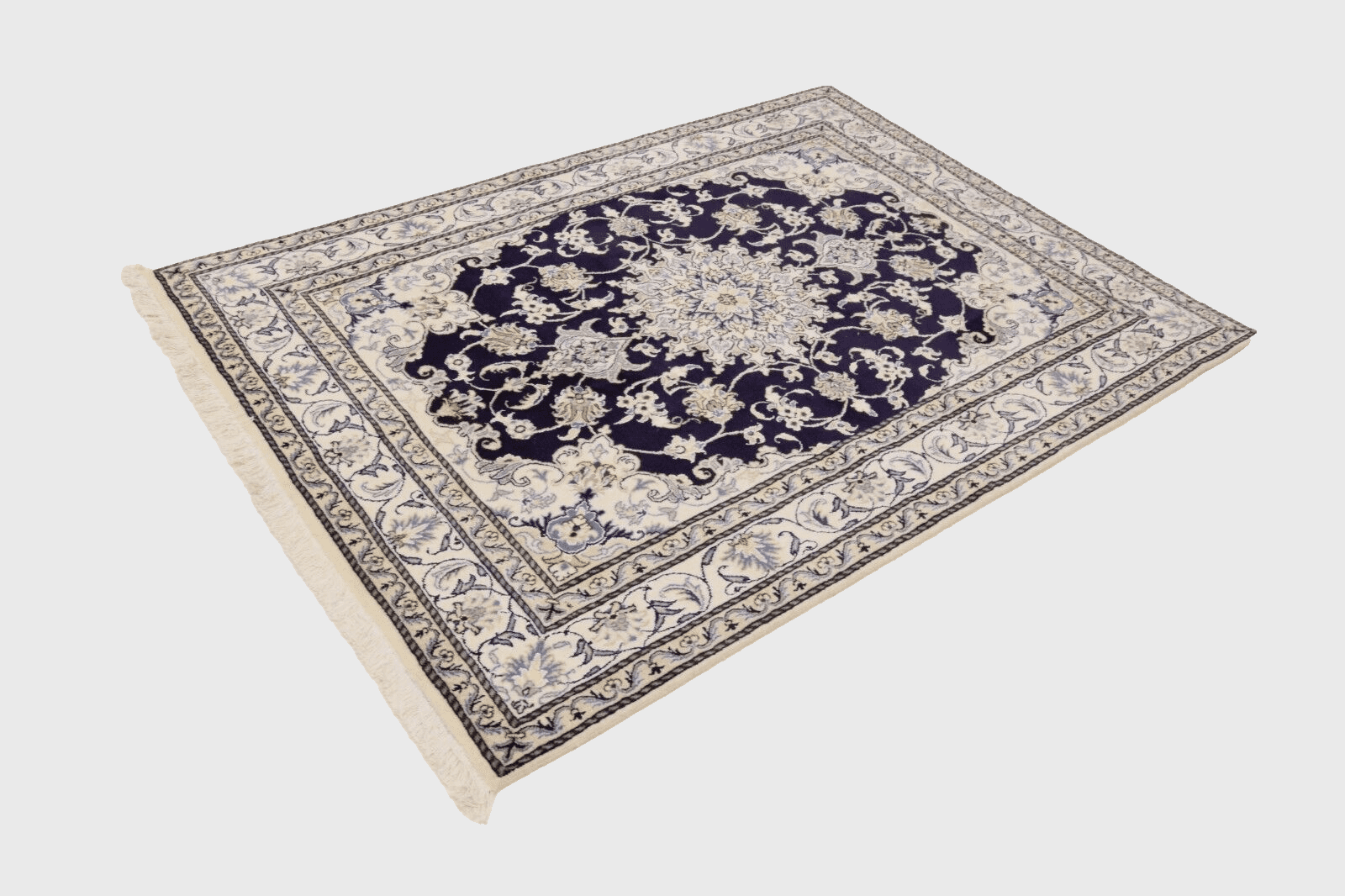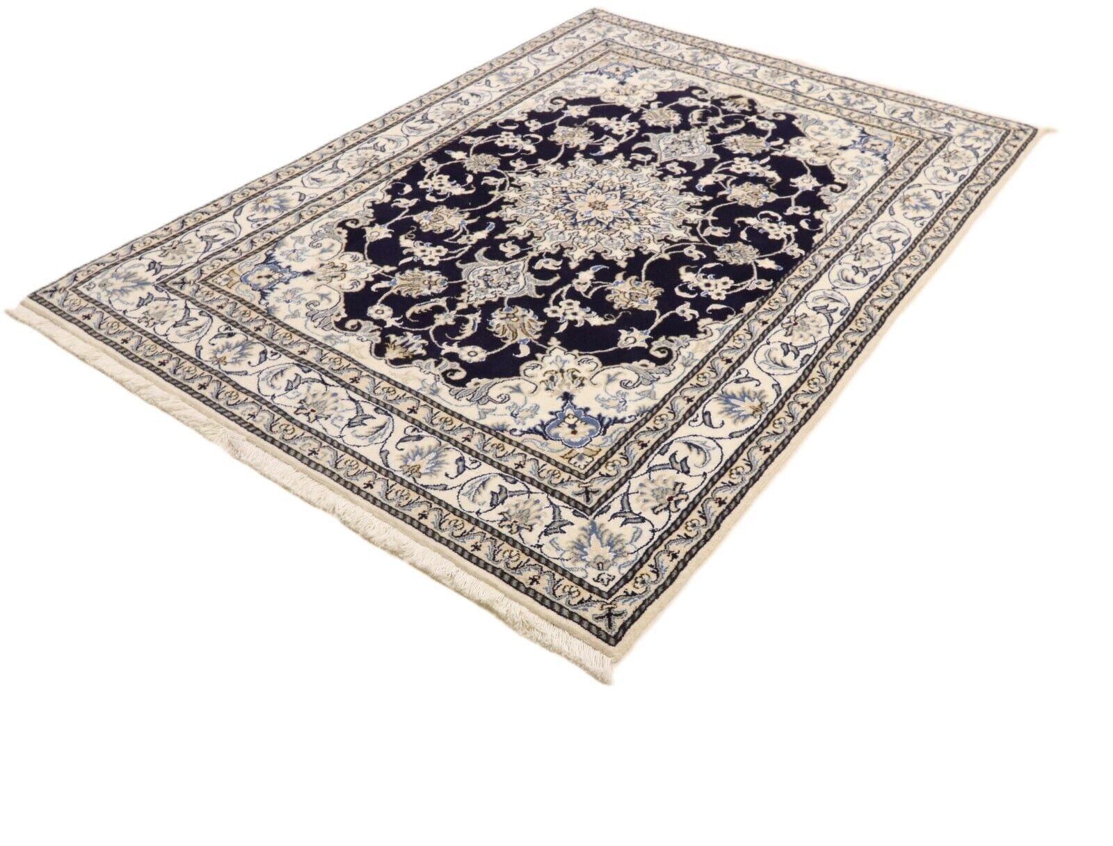 Orientteppich Super Nain | Größe: 207 x 147 cm | Knotendichte: ca. 300.000 Knoten/m² | Material: 90% Schurwolle, 10% Seide, Kette: 100% Baumwolle | Zustand: Neu, sehr gut | Herkunft: Persien | Dicke: ca. 8 mm | Stil: Traditionell Orientalisch/Persisch | Besonderheiten: Für Fußbodenheizung geeignet, haustierfreundlich