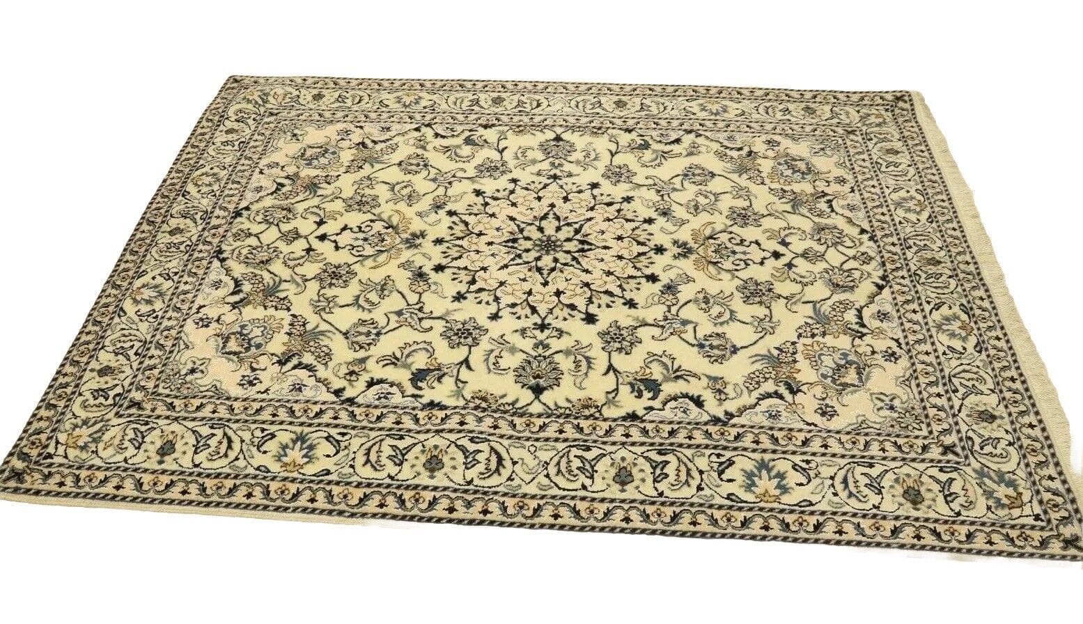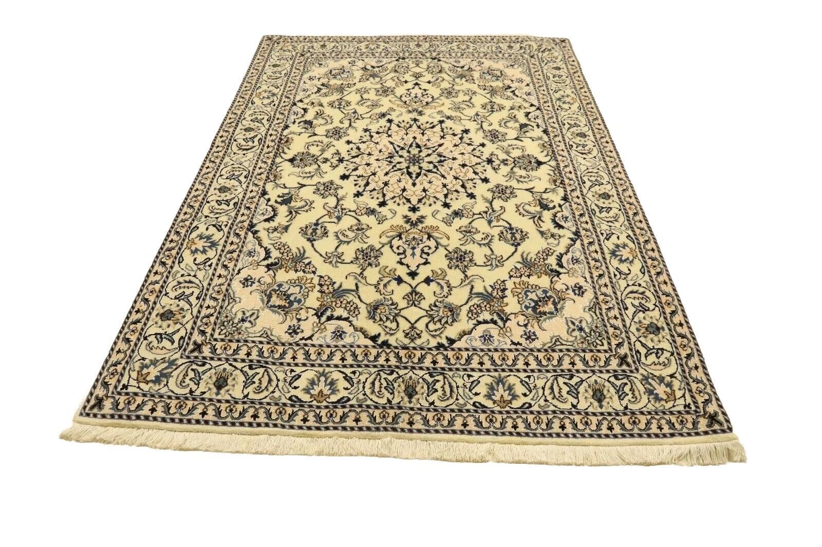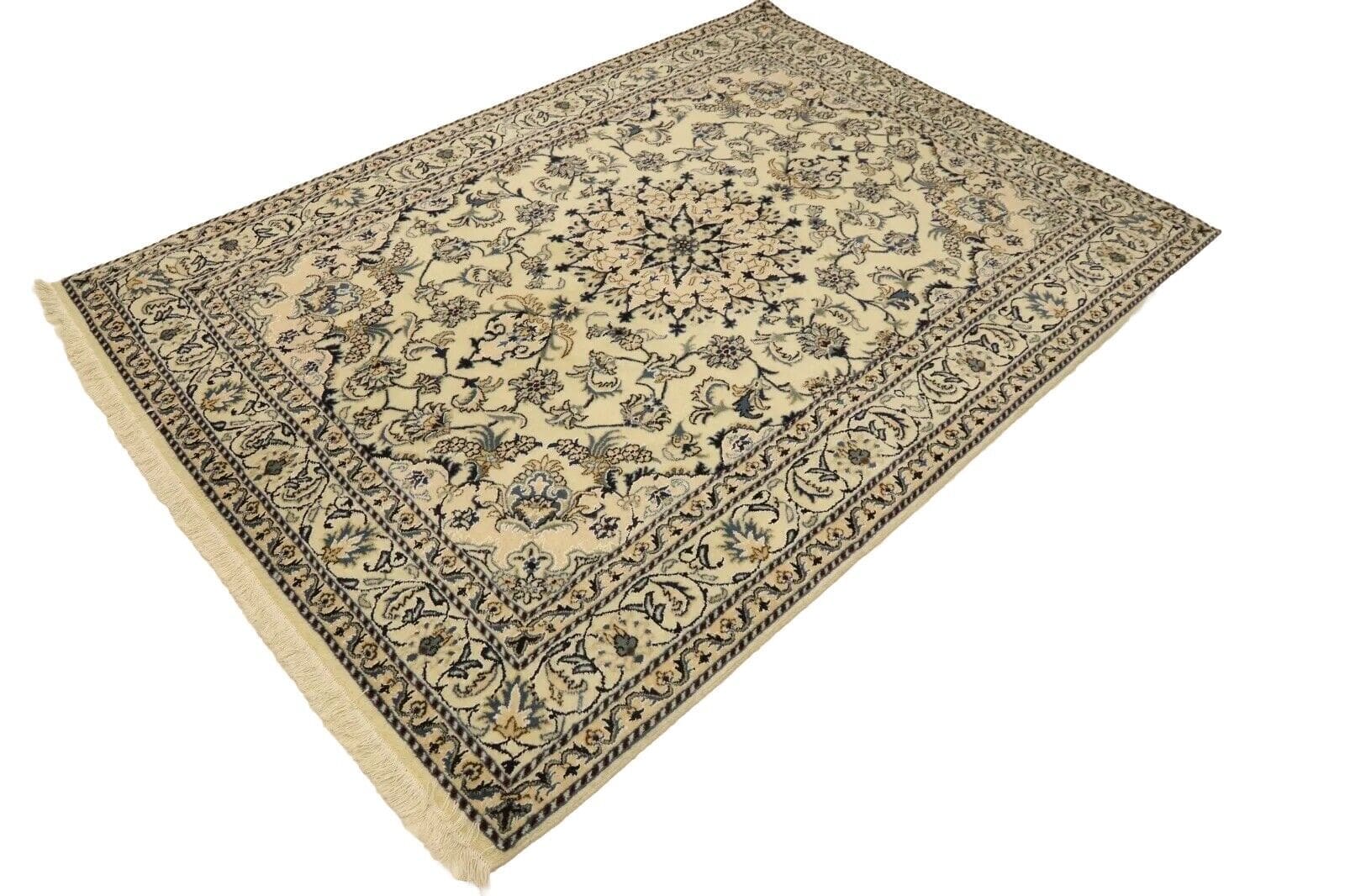 Orientteppich Super Nain | Größe: 253 x 166 cm | Knotendichte: ca. 300.000 Knoten/m² | Material: 90% Schurwolle, 10% Seide | Kette: 100% Baumwolle | Zustand: Neu, perfekt | Herkunft: Persien | Dicke: ca. 8 mm | Stil: Traditionell Orientalisch/Persisch | Besondere Merkmale: Haustierfreundlich, handgeknüpft