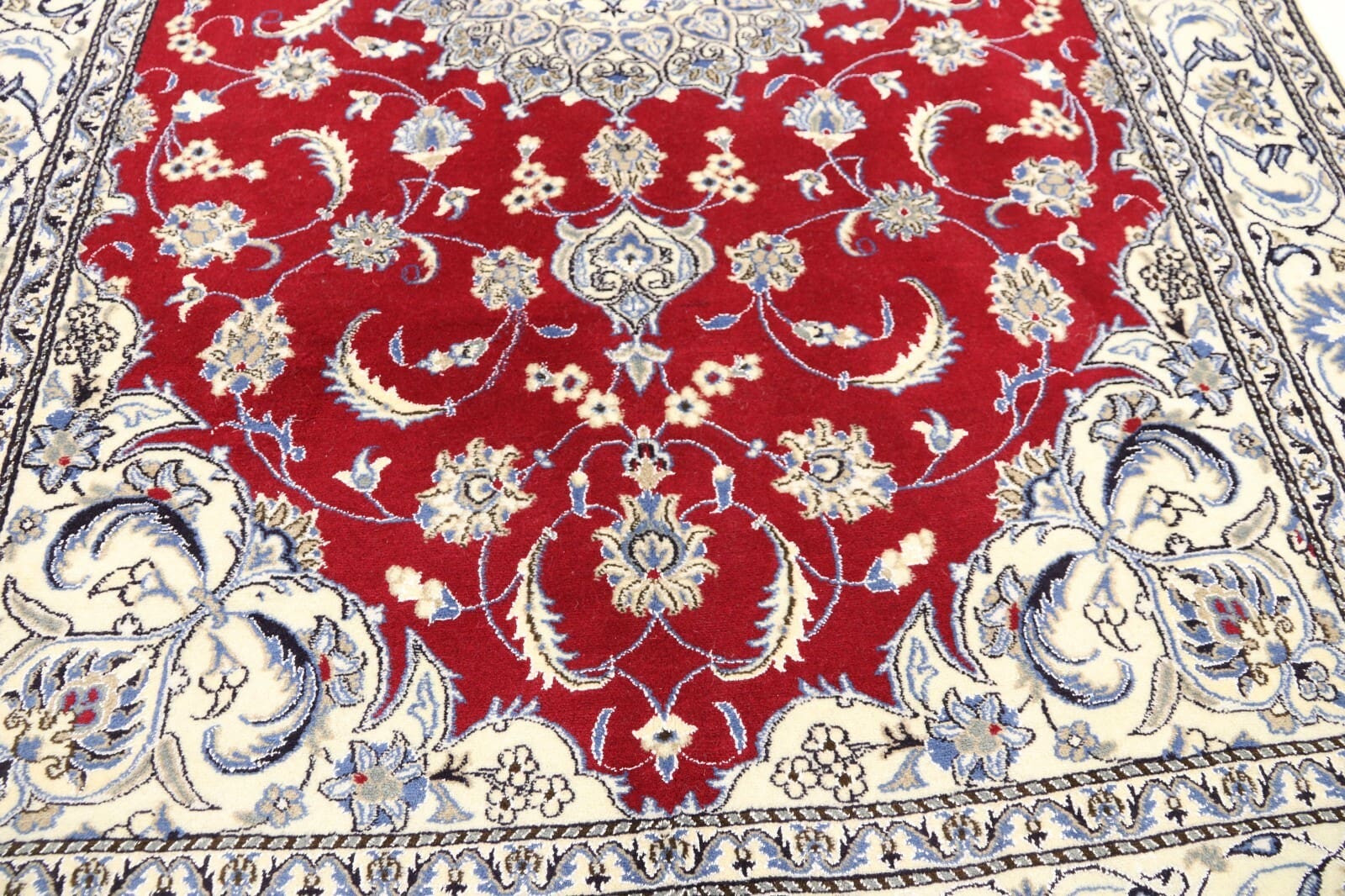 Wunderschöner Orientteppich Super Nain | Knotendichte: 300.000 Knoten/m² | Material: 90% Schurwolle, 10% Seide | Größe: 297 x 195 cm | Zustand: Neu | Herkunft: Persien | Verarbeitung: Handgeknüpft | Für Fußbodenheizung geeignet | Stil: Traditionell Orientalisch/Persisch