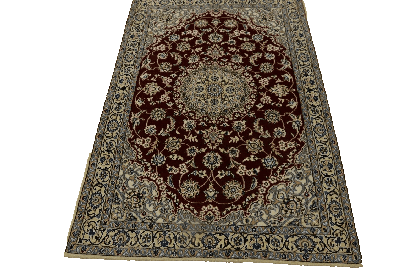 Wunderschöner Orientteppich Super Nain 9 La | Größe: 177 x 118 cm | Knotendichte: ca. 500.000 Knoten/m² | Material: 90% Schurwolle, 10% Seide, Kette: 100% Baumwolle | Zustand: Neu, sehr gut | Herkunft: Persien | Stil: Traditionell Orientalisch/Persisch | Dicke: ca. 9 mm | Webart: Handgeknüpft | Farbmuster: Rot, orientalisch