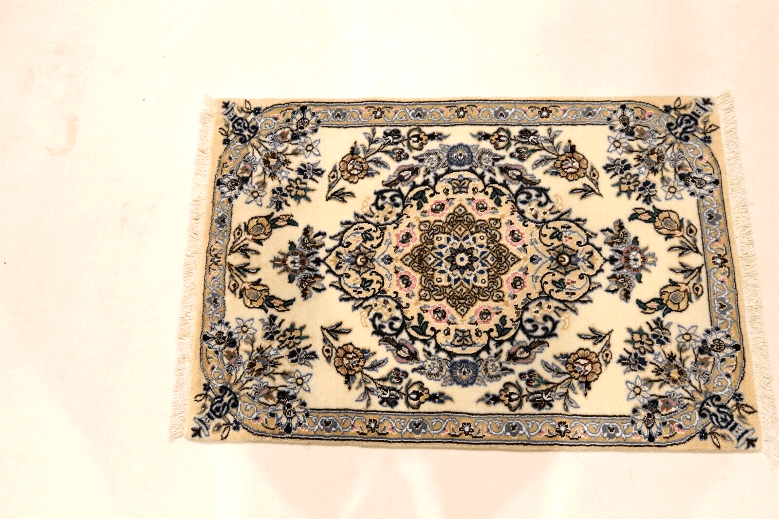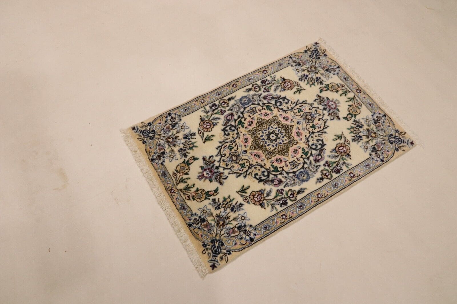 Handgeknüpfter Orientteppich Super Nain 9 La | Größe: 90×60 cm | Material: 90% Schurwolle, 10% Seide | Knotendichte: ca. 500.000 Knoten/m² | Zustand: Neu, perfekt | Herkunft: Persien | Stil: Traditionell Orientalisch/Persisch | Florhöhe: Normal | Farbe: Mehrfarbig | Verwendung: Geeignet für alle Zimmer