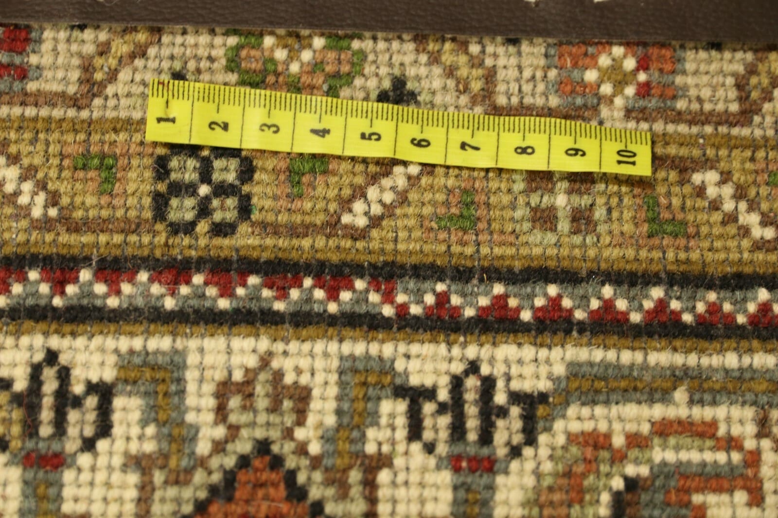 Der Wunderschöne Orientteppich Tabriz ist ein Meisterwerk der Handwerkskunst und wird Sie mit seiner exquisiten Schönheit und den feinen Details in seinen Bann ziehen. Dieses handgeknüpfte Kunstwerk ist ein Paradebeispiel für die jahrhundertealte Teppichtradition aus der Region Tabriz im Iran. Bei einer Knotendichte von beeindruckenden 300.000 Knoten zeigt dieser Teppich einmal mehr, warum Tabriz zu den renommiertesten Teppichproduktionsgebieten der Welt zählt.