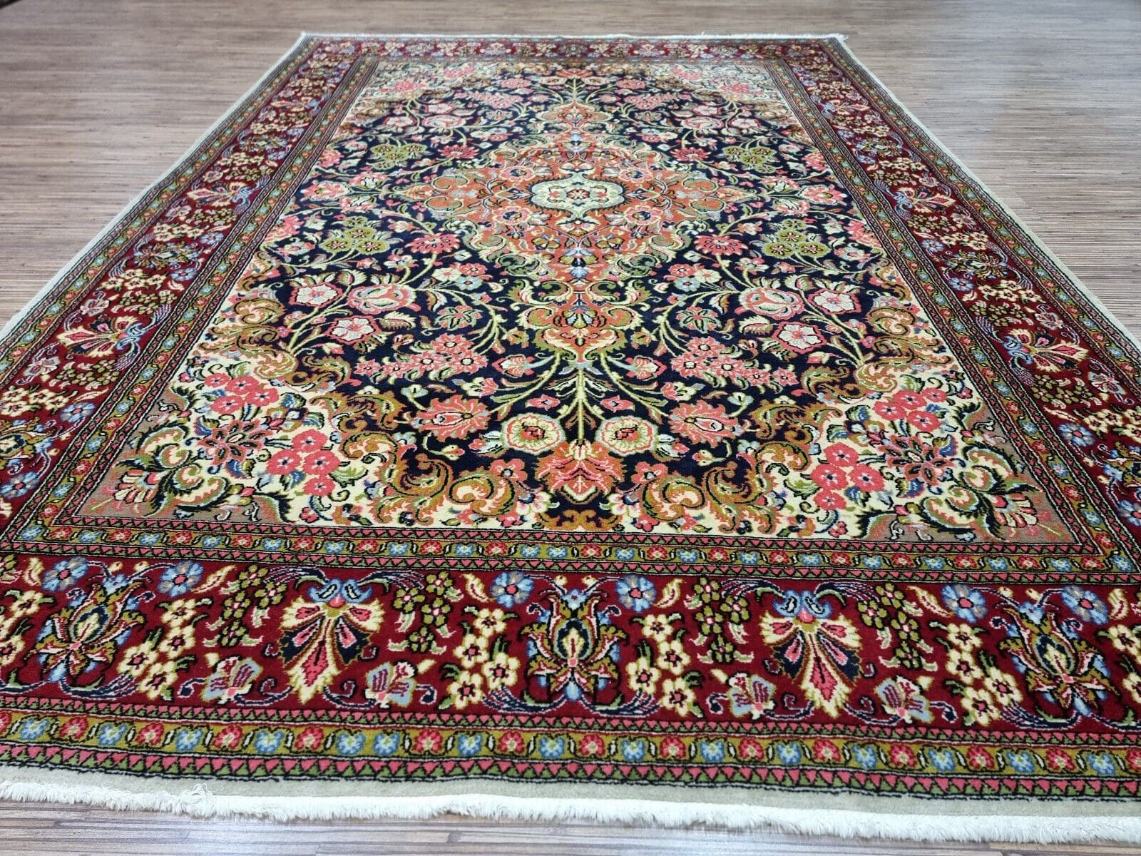Original Persischer Ghom Teppich | Handgeknüpft und einzigartig | Größe: 212×147 cm | Material: Schurwolle auf Baumwolle | Zustand: Sehr gut, siehe Bilder | Muster: Orientalisch | Knotendichte: Hoch | Herstellungszeitraum: 1950-1959 | Geeignet für alle Zimmer | Pflegeanleitung: Professionelle Reinigung empfohlen