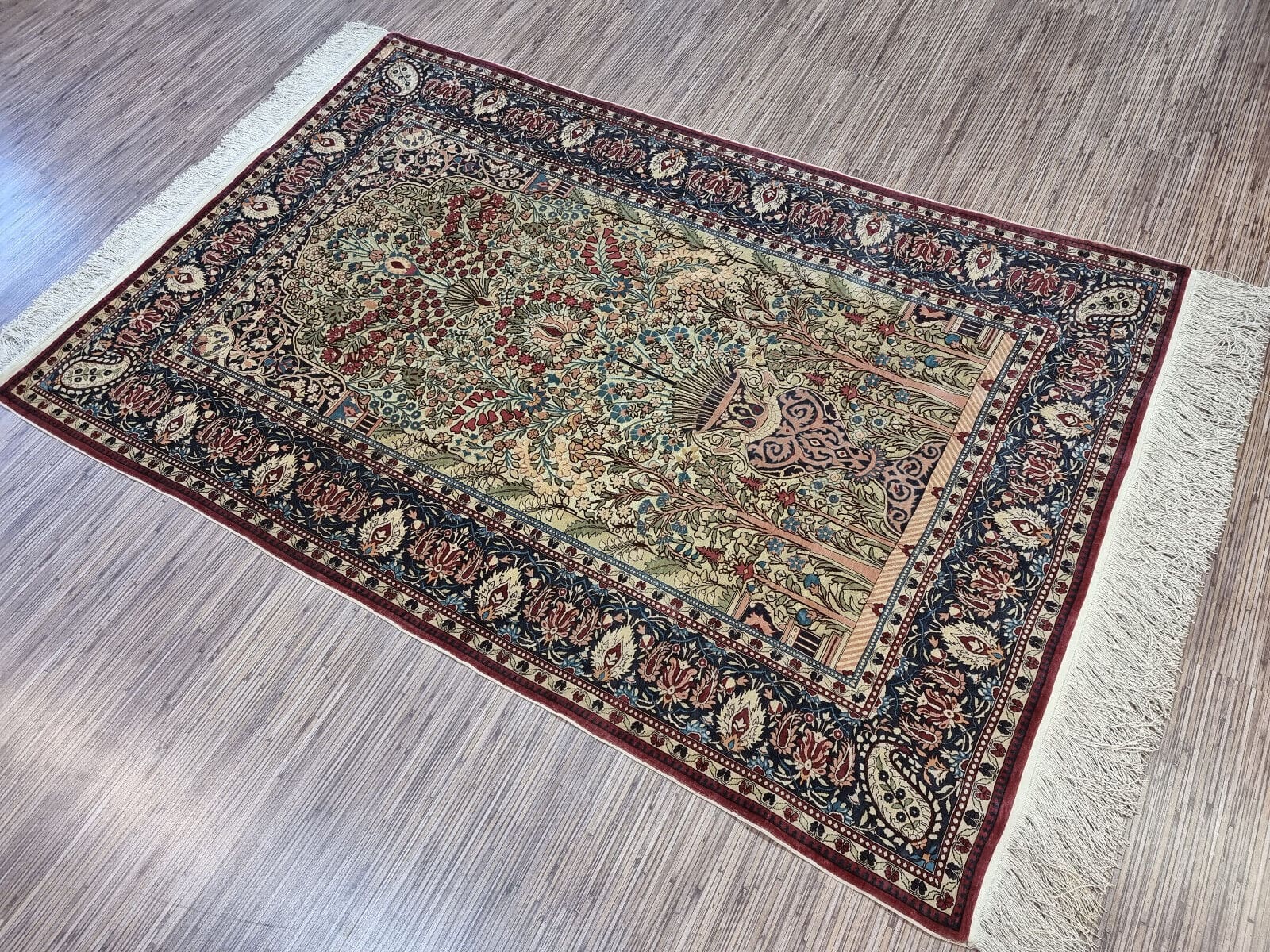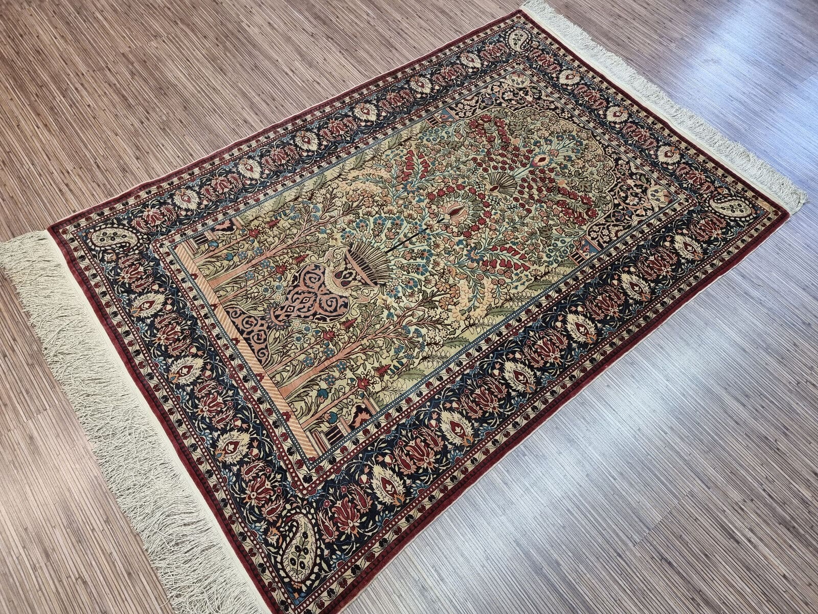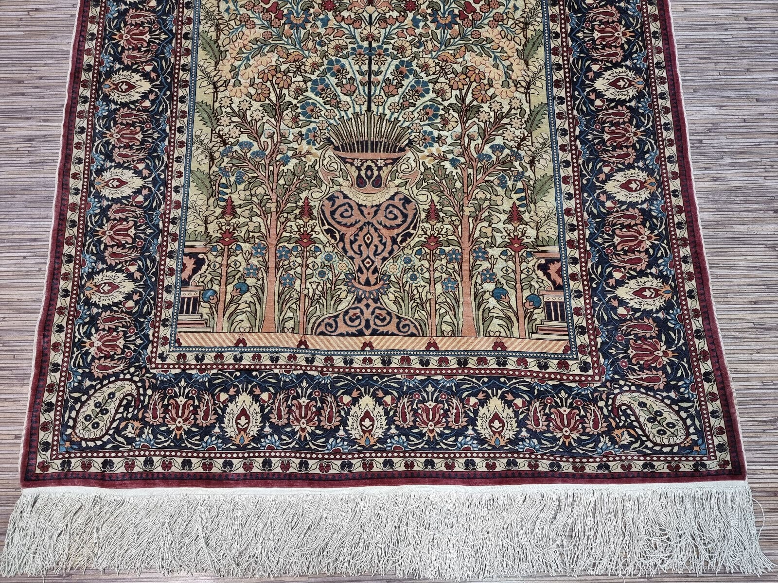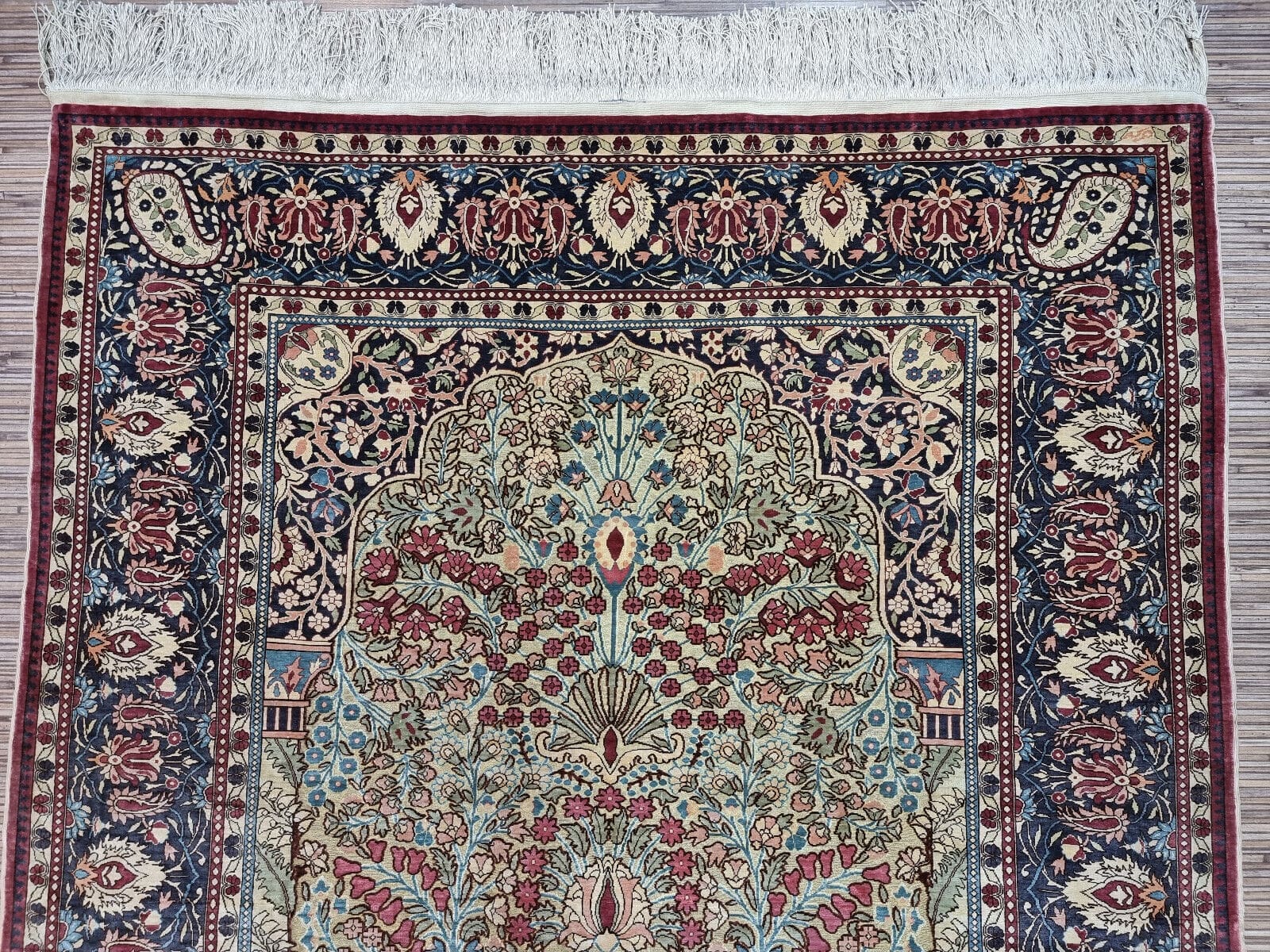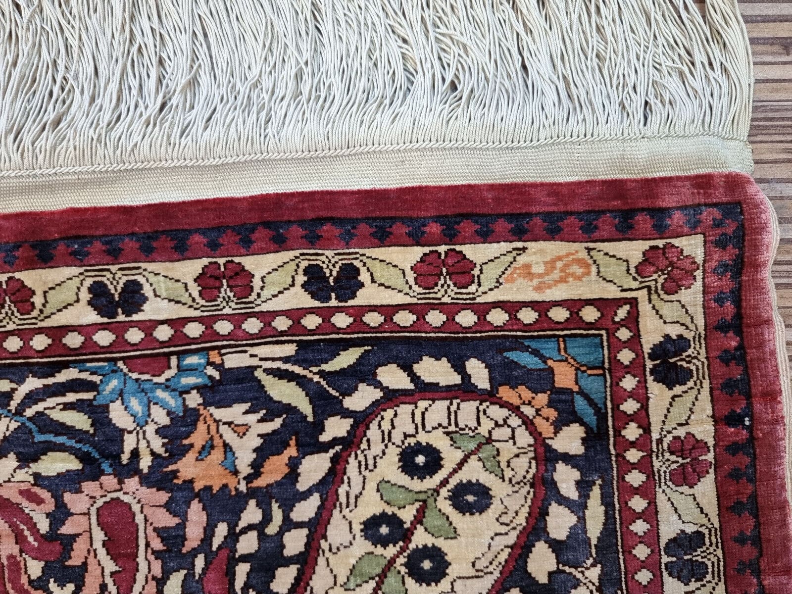 Wunderschöner Original Türkischer Hereke | Material: 100% reine Seide | Knotendichte: 1.000.000 Knoten/m² | Größe: 173×117 cm | Zustand: Sehr gut, nur als Wandteppich genutzt | Herkunft: Türkei | Herstellungszeitraum: 1960-1969 | Handgeknüpft und signiert