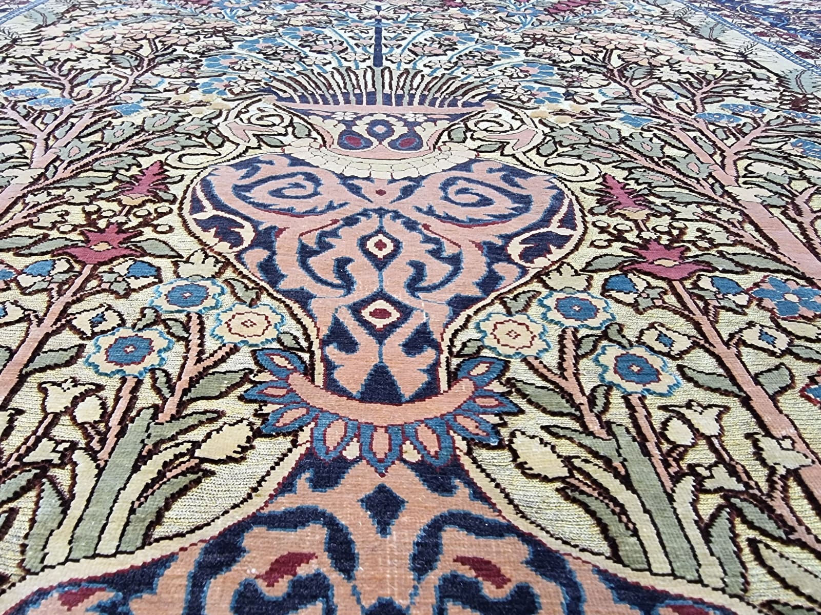 Insgesamt ist der Wunderschöne Original Türkische Hereke eine exquisite Wahl für alle, die die Schönheit und die reiche Geschichte orientalischer Teppiche schätzen. Seine kunstvolle Verarbeitung und die Verwendung hochwertiger Materialien machen ihn zu einem wertvollen Stück, das Generationen überdauern kann.