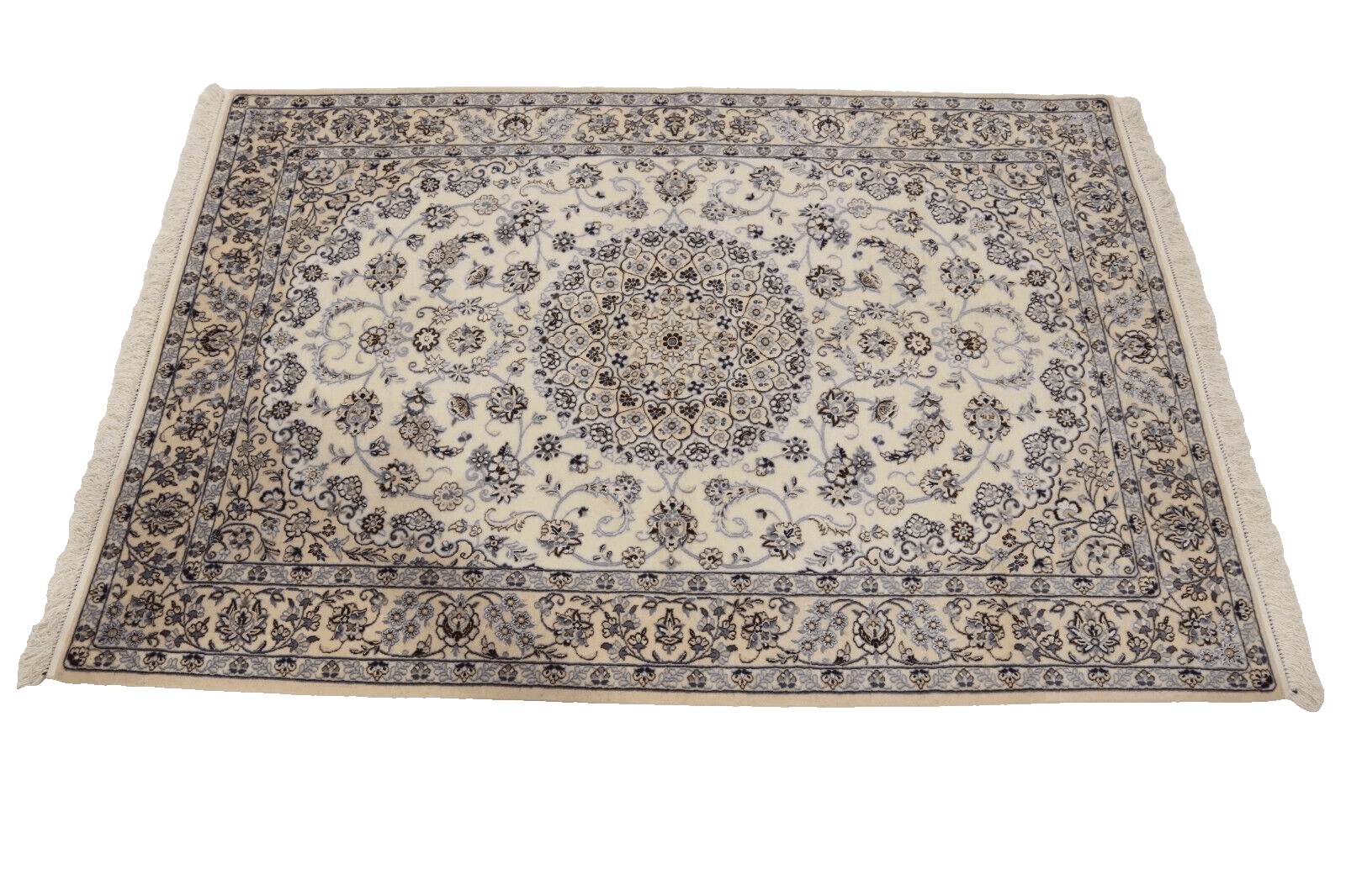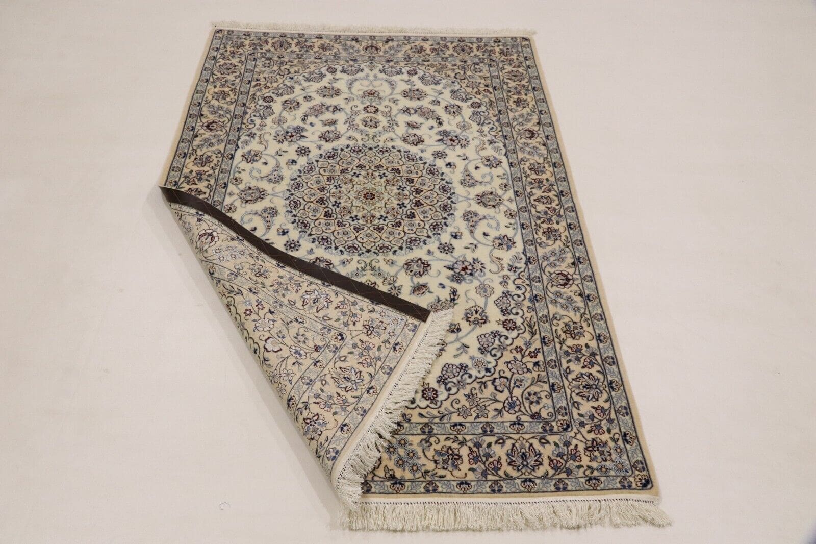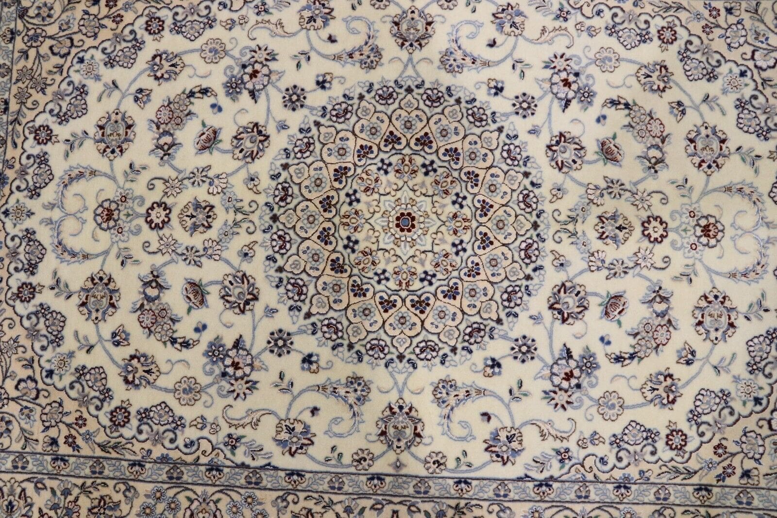 Handgeknüpfter Orientteppich Nain 6 La | Größe: 172 x 117 cm | Material: 80 % Korkwolle, 20 % Naturseide | Knotendichte: ca. 1.000.000 Knoten/m² | Zustand: Neu, perfekt | Herkunft: Persien | Stil: Traditionell Orientalisch/Persisch | Dicke: ca. 6 mm | Gewicht: 5 kg | Farbe: Weiß | Ideal für alle Zimmer