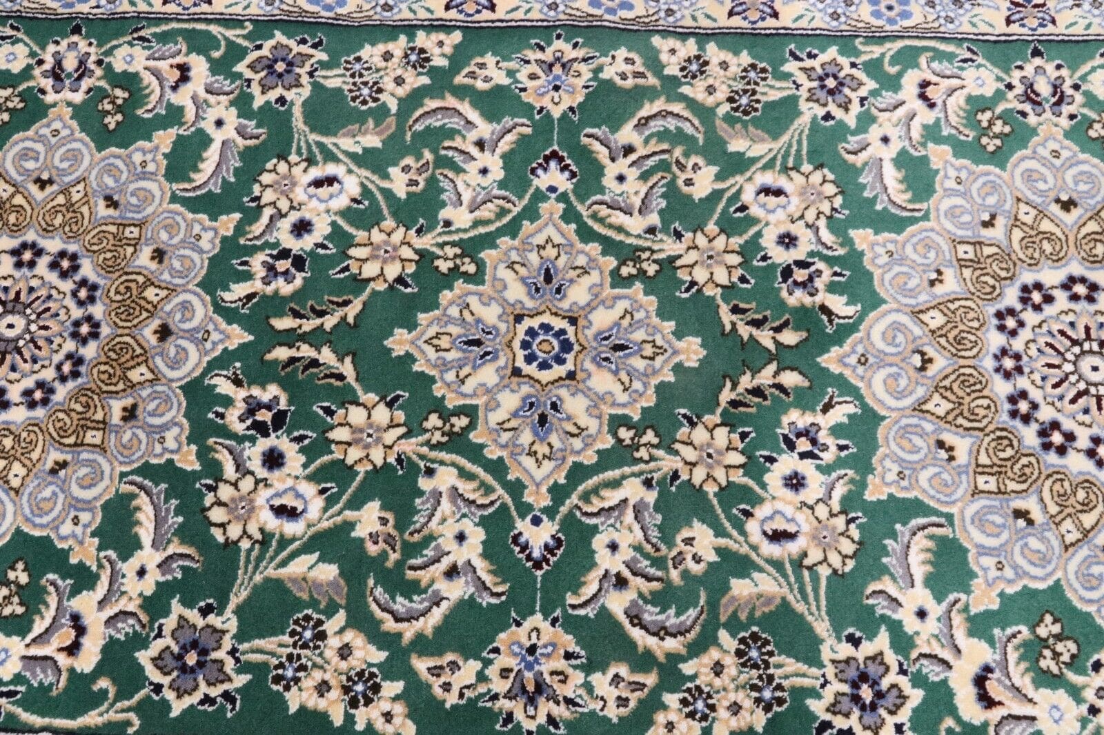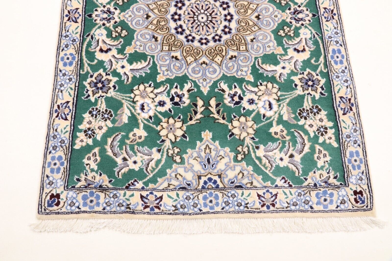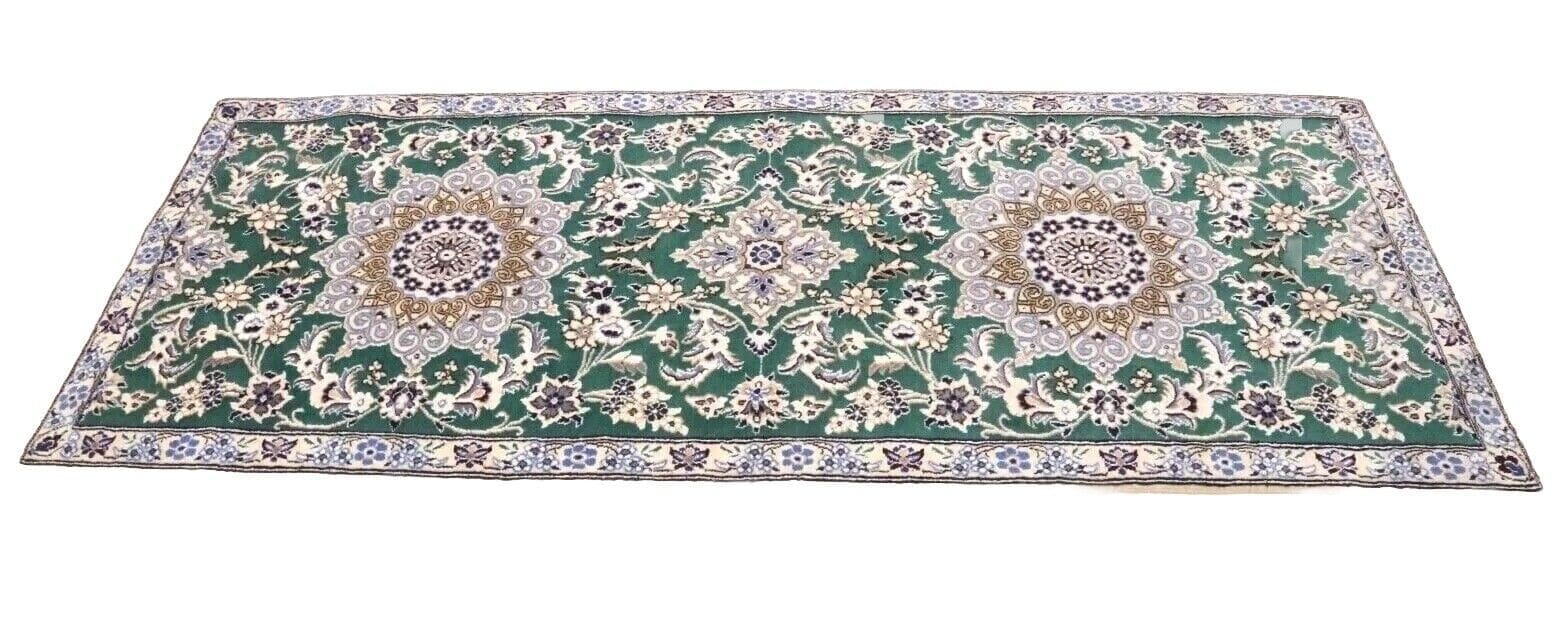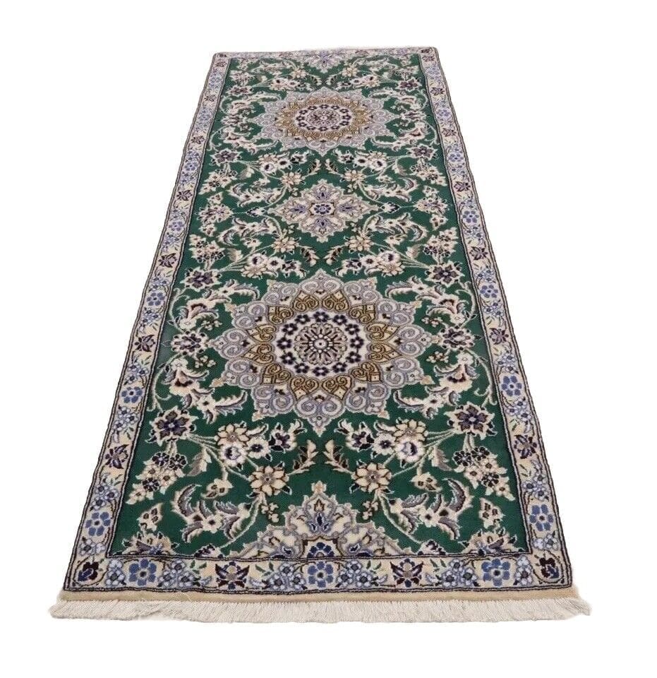 Handgeknüpfter Super Nain 9la Orientteppich | Größe: 200 x 80 cm | Knotendichte: ca. 500.000 Knoten/m² | Material: 90 % Schurwolle, 10 % Seide | Kette: 100 % Baumwolle | Zustand: Neu, sehr gut | Herkunft: Persien / Iran | Dicke: ca. 8 mm | Für Fußbodenheizung geeignet | Haustierfreundlich | Stil: Traditionell Orientalisch/Persisch