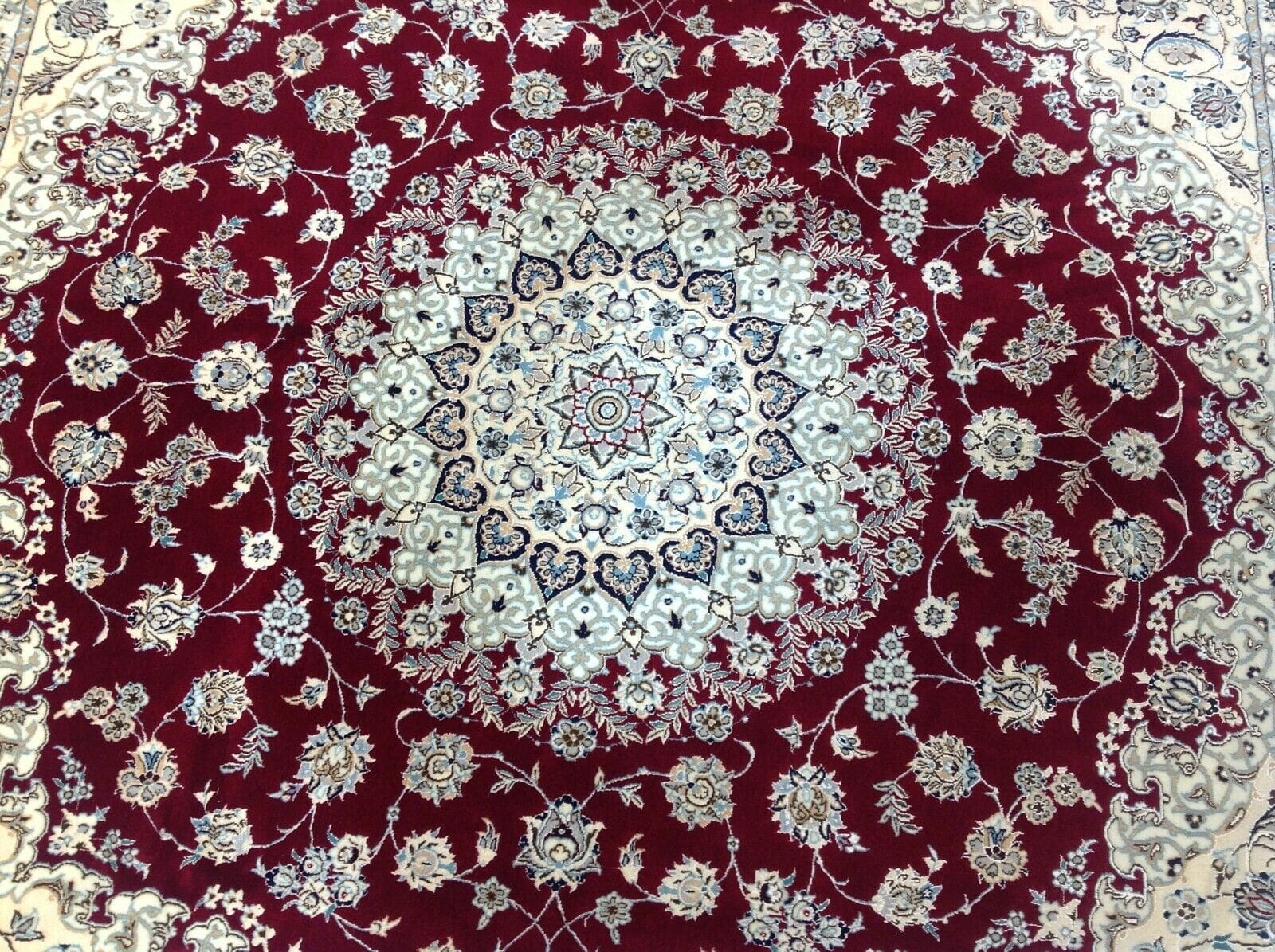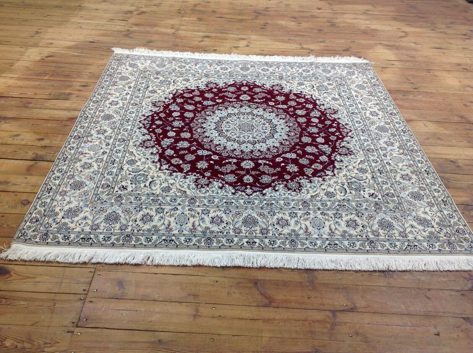 Wunderschöner Orientteppich | Handgeknüpft | Größe: 207 x 206 cm | Knotendichte: ca. 1.000.000 Knoten/m² | Material: 80% Korkwolle, 20% Naturseide | Kette: 100% Baumwolle | Zustand: Neu, sehr gut | Herkunft: Persien | Besonderheit: Für Fußbodenheizung geeignet | Stil: Traditionell Orientalisch/Persisch | Farbe: Weiß / Rot | Unikat, nur 1 Stück auf Lager