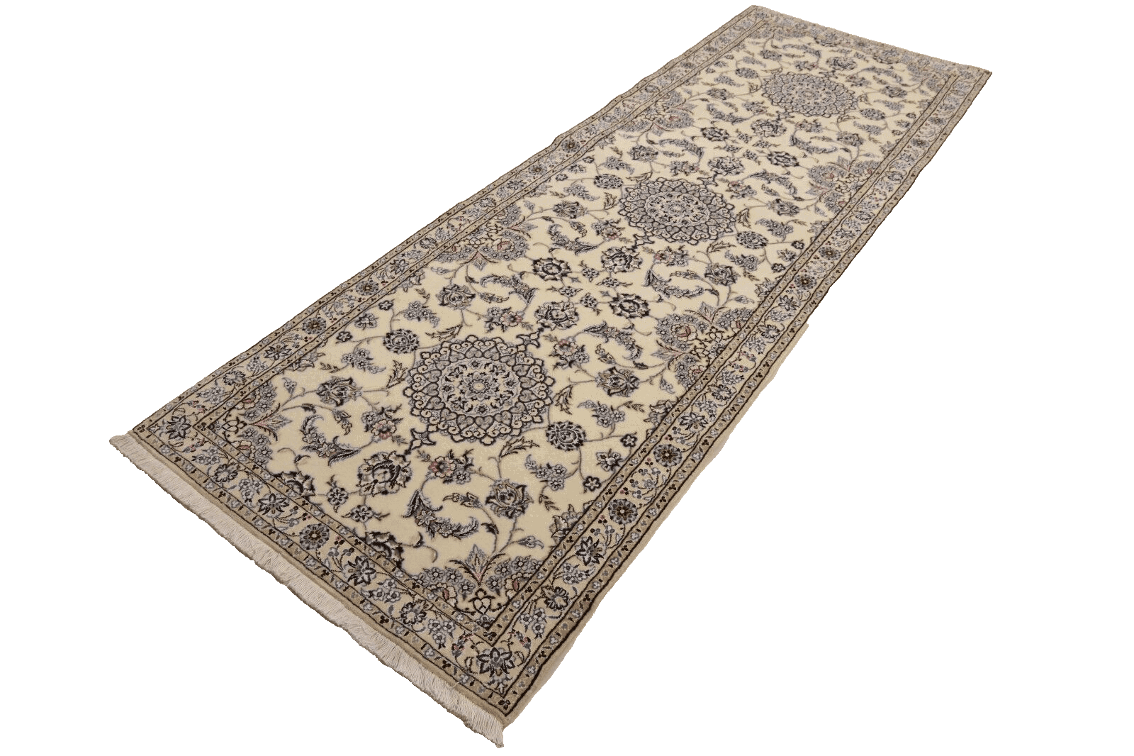 Wunderschöner persischer Teppich | Knotendichte: ca. 500.000 Knoten/m² | Material: 90% Schurwolle, 10% Seide | Größe: 284 x 96 cm | Zustand: Neu | Herkunft: Persien/Iran | Stil: Traditionell Orientalisch/Persisch | Besondere Eigenschaften: Für Fußbodenheizung geeignet, haustierfreundlich | Florhöhe: 8 mm