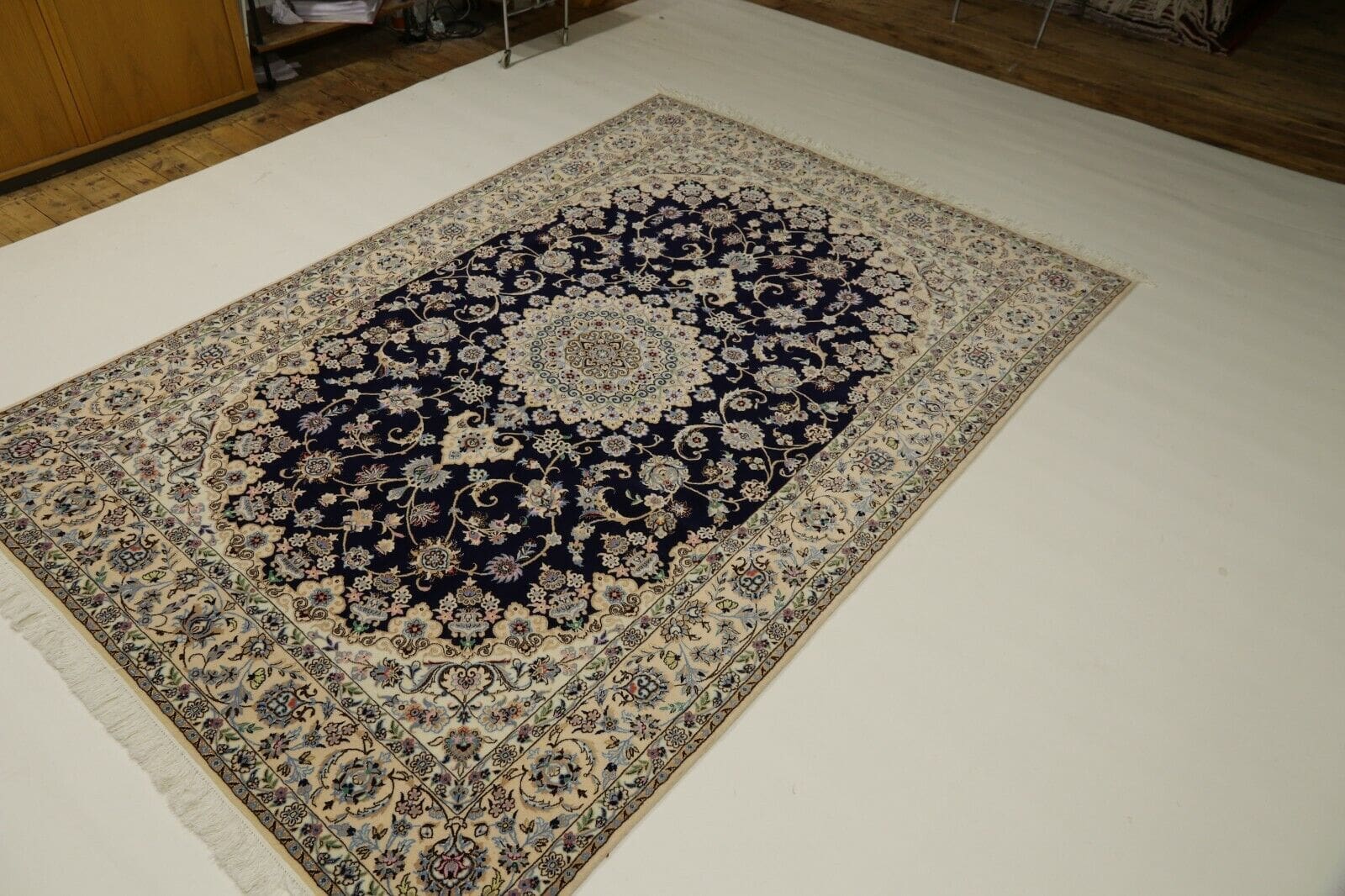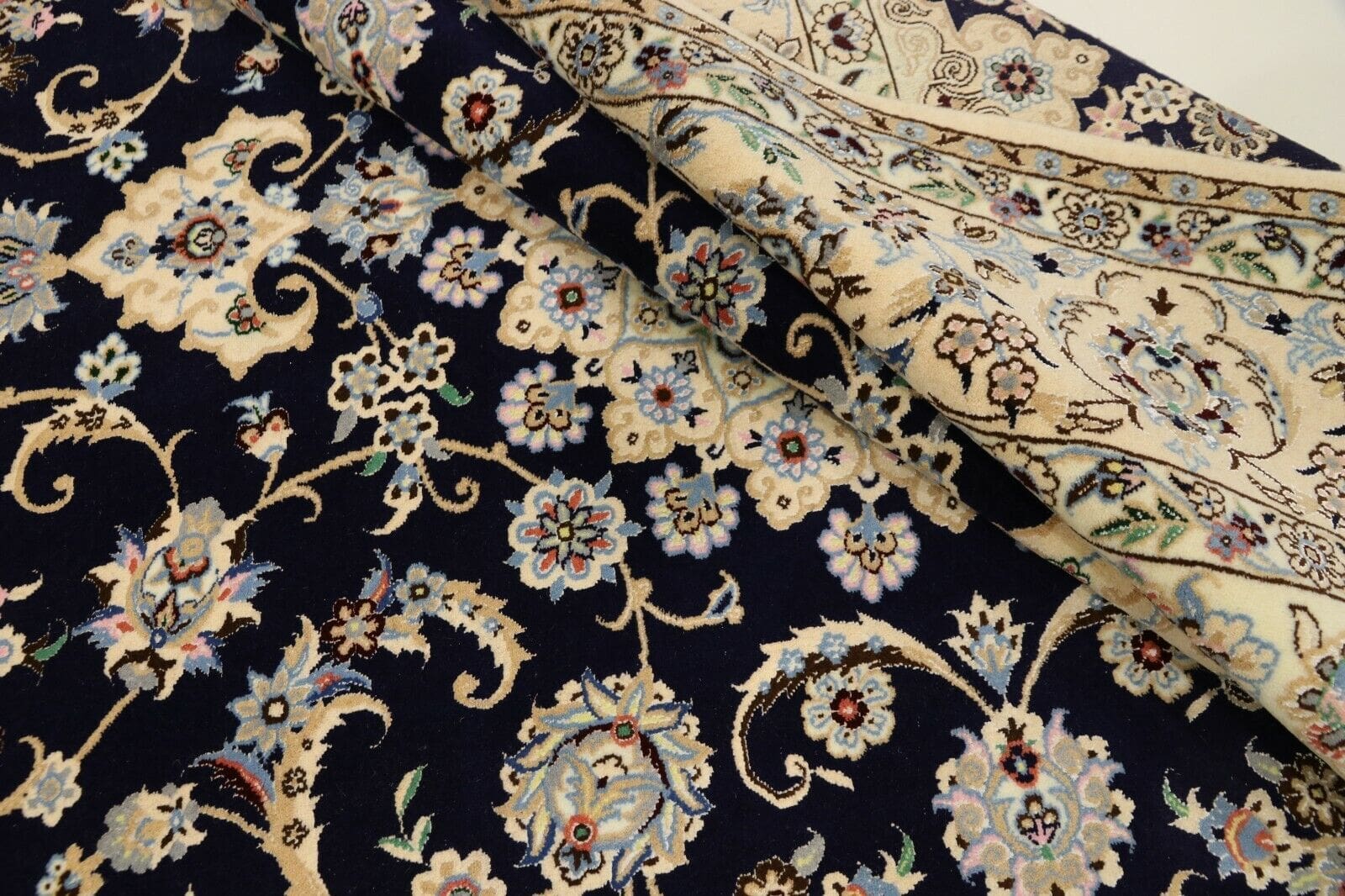 Handgeknüpfter Super Nain 9la Teppich | Größe: 296 x 203 cm | Herkunft: Persien/Iran | Knotendichte: ca. 500.000 Knoten/m² | Material: 90 % Schurwolle, 10 % Seide, Kette: 100 % Baumwolle | Zustand: Neu, sehr gut | Florhöhe: 8 mm | Muster: Orientalisch | Für Fußbodenheizung geeignet | Unikat mit Echtheitszertifikat