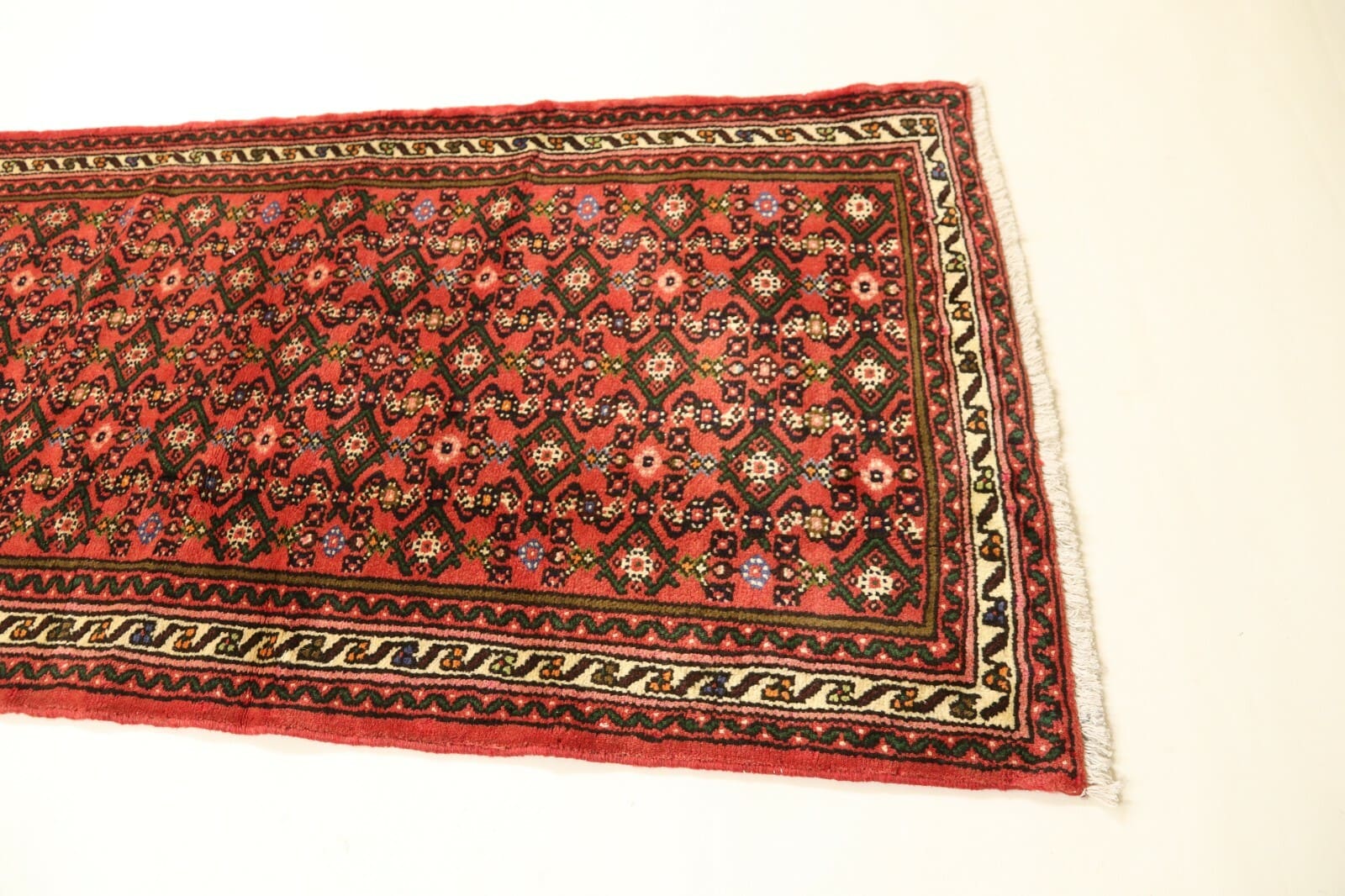 Wunderschöner Orientteppich Hamadan Läufer | Knotendichte: 180.000 Knoten/m² | Material: 100% Schurwolle (Flor), 100% Baumwolle (Kette/Schuß) | Größe: 982 x 81 cm | Zustand: Neu, sehr gut | Herkunft: Persien | Verarbeitung: Handgeknüpft | Besonderheiten: Für Fußbodenheizung geeignet, haustierfreundlich | Muster: Orientalisch | Farbe: Rot